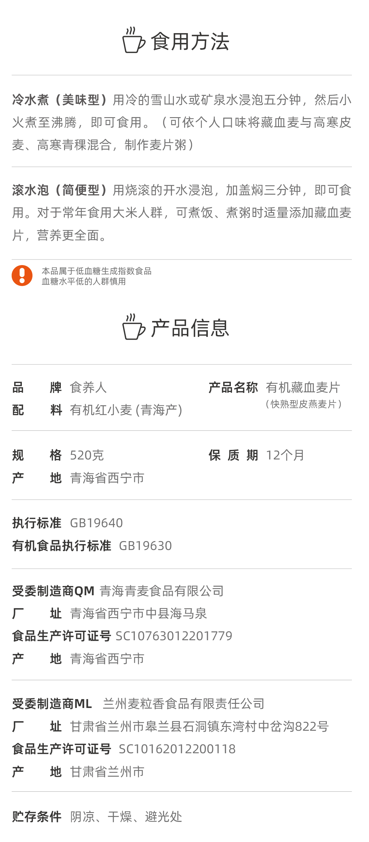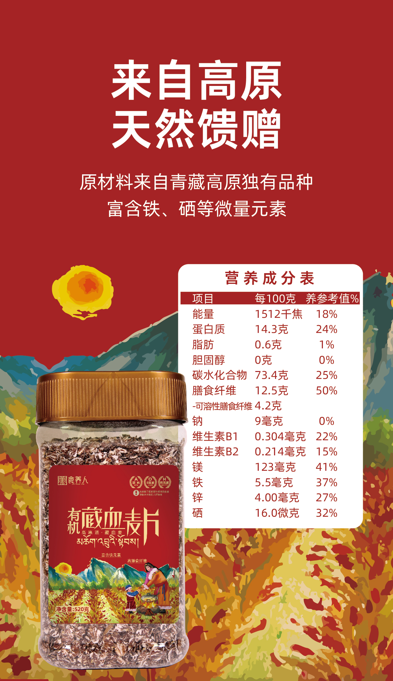 自营-有机藏血麦片520g