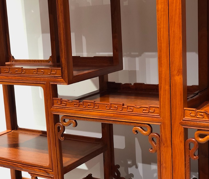 博古架又称多宝格,是用来摆放古玩、玉器等小品的古雅设置。