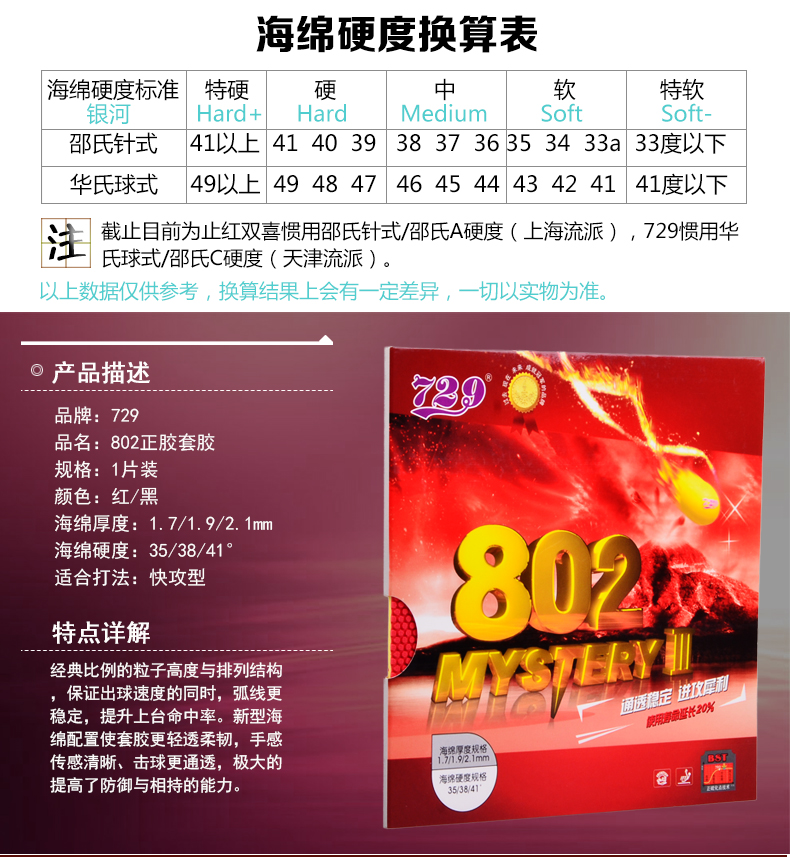 友谊729 802正胶套胶 鬼斧系列 颗粒正胶 乒乓球胶皮 正品