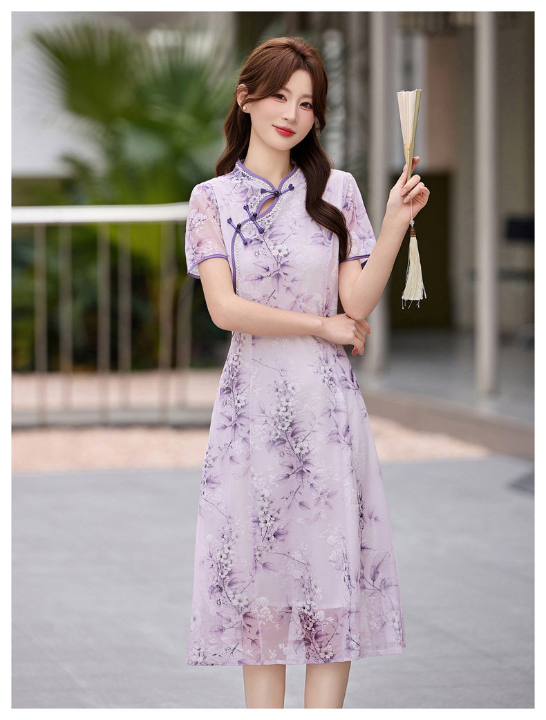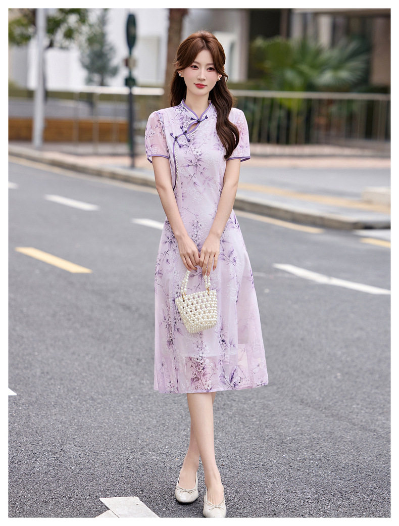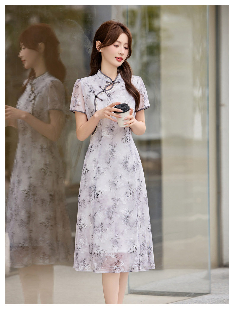 「自」全新升级【铂金会员247/天猫329/差价82】(01926)洛诗琳新中式旗袍连衣裙女2026新款显瘦气质中长款碎花裙