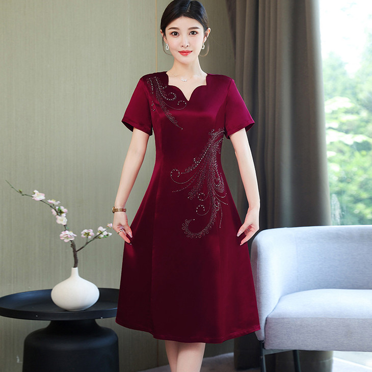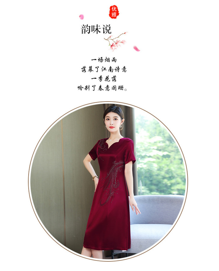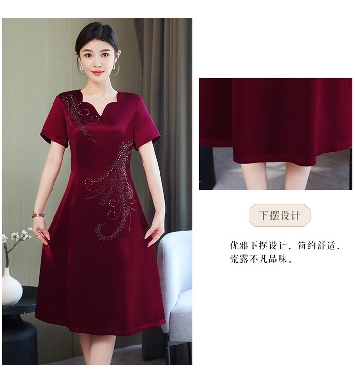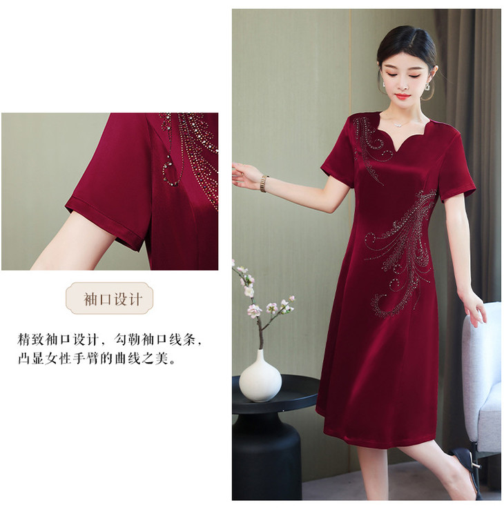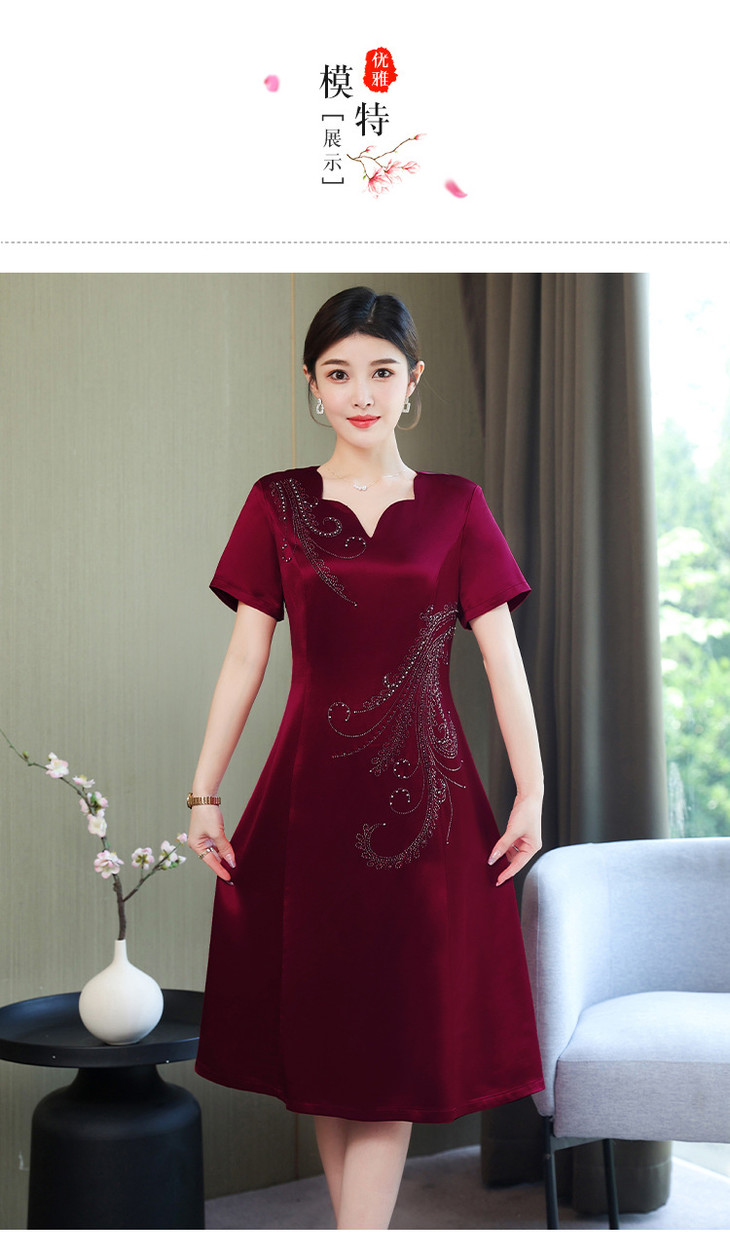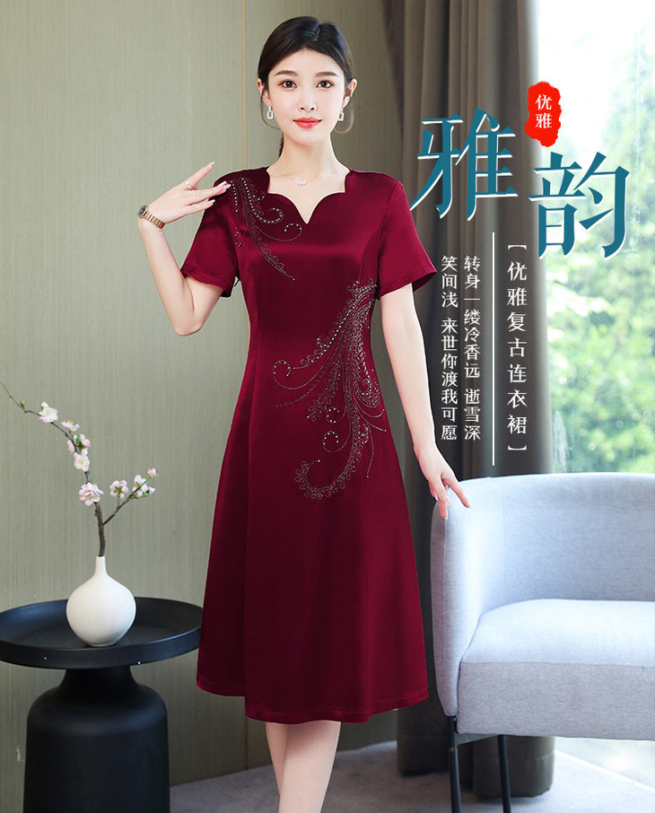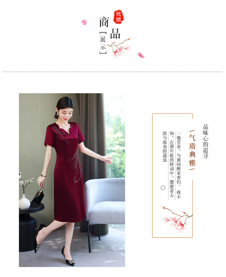 AHM-yqwl5256新款时尚优雅气质修身V领短袖中长款连衣裙