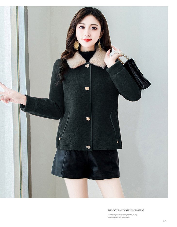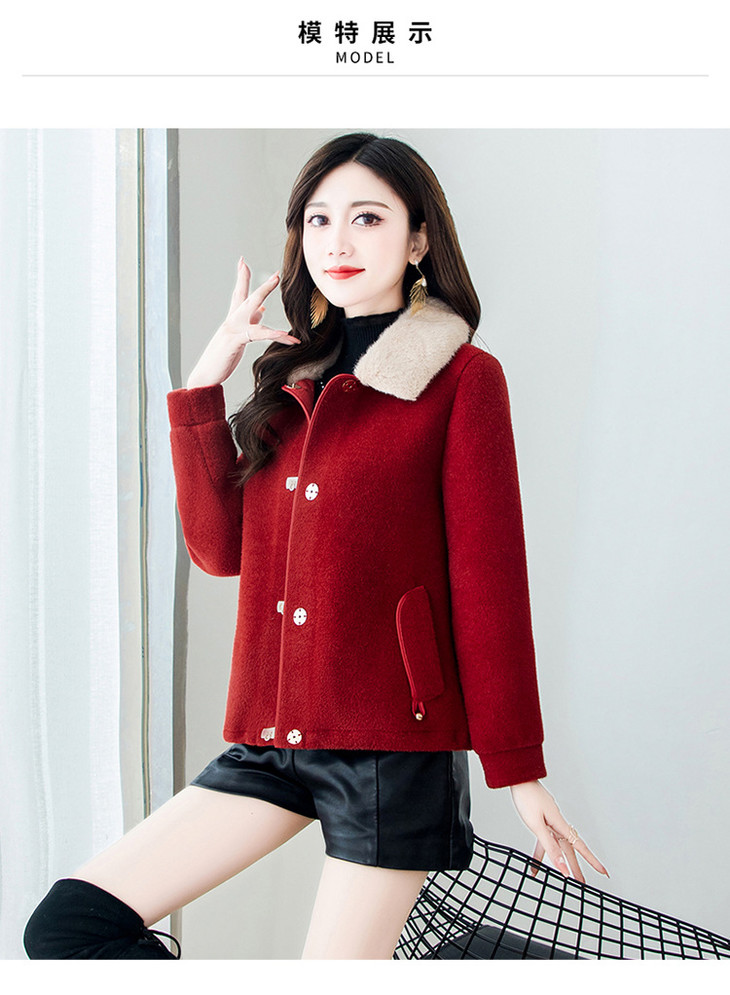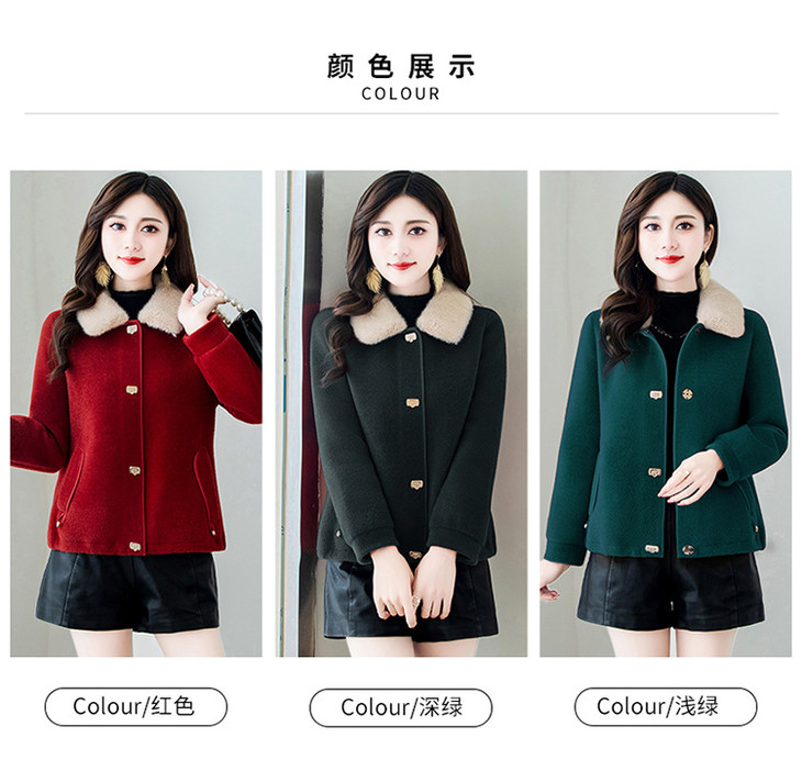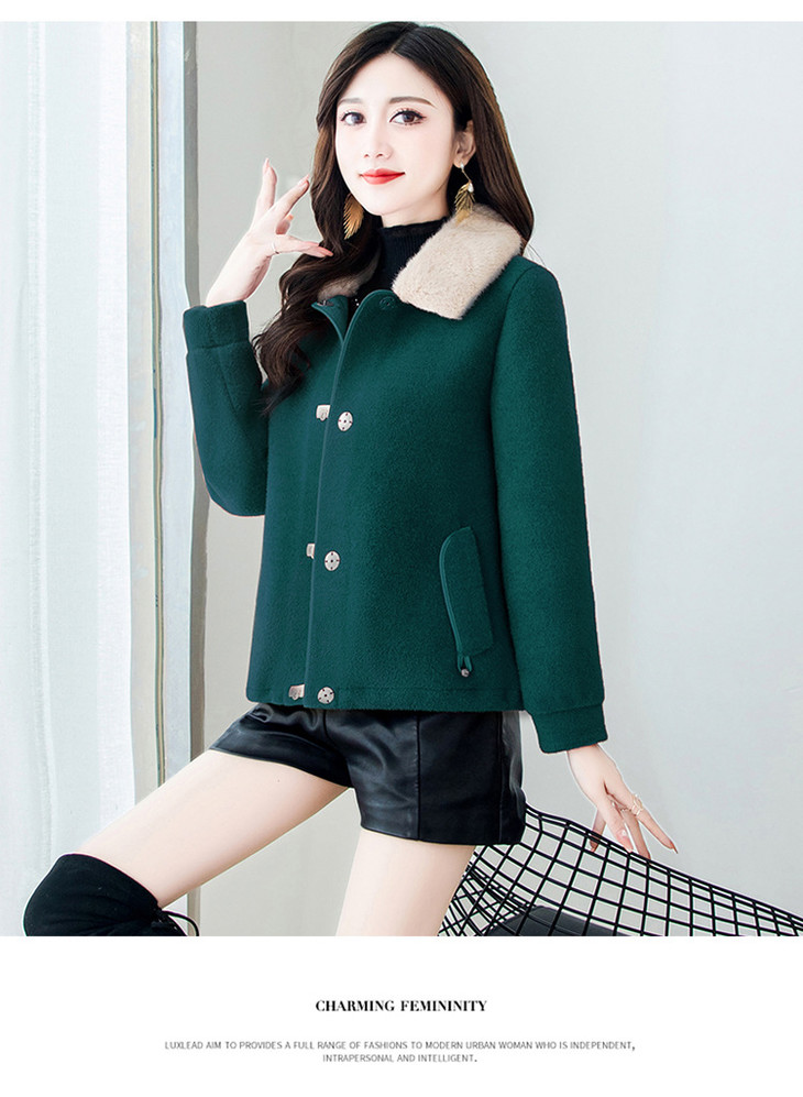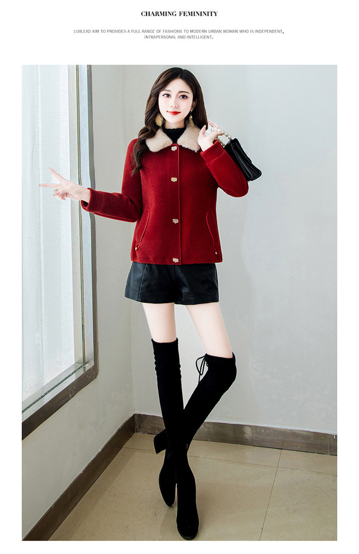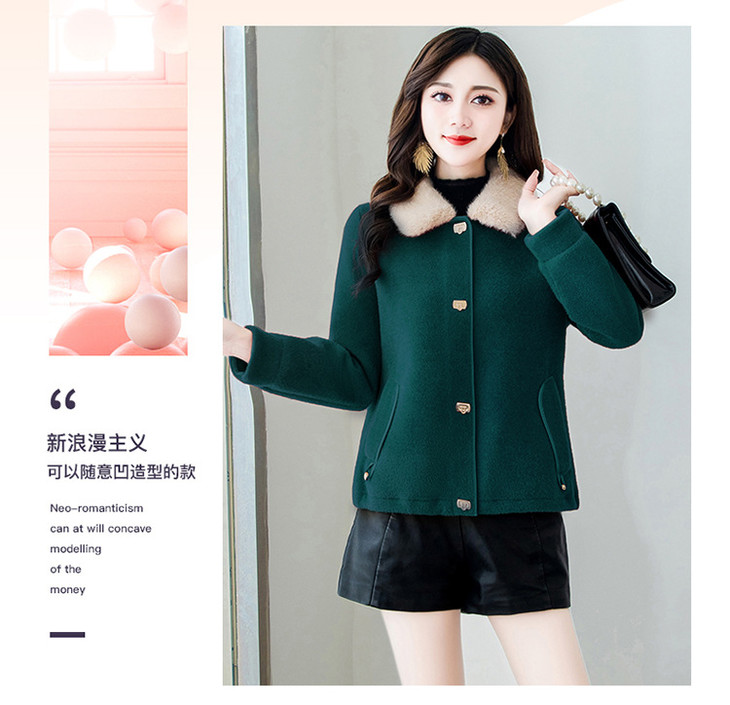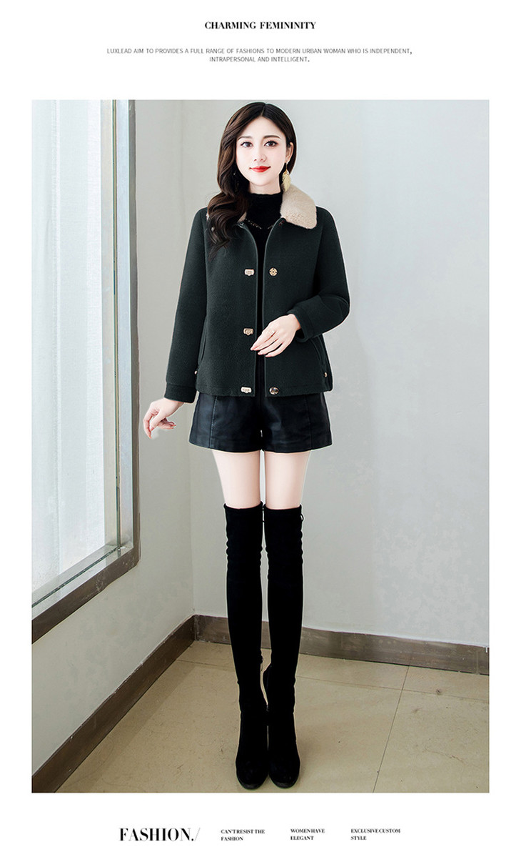 YWE-Q2160新款时尚优雅气质翻领长袖短款加厚保暖毛呢外套