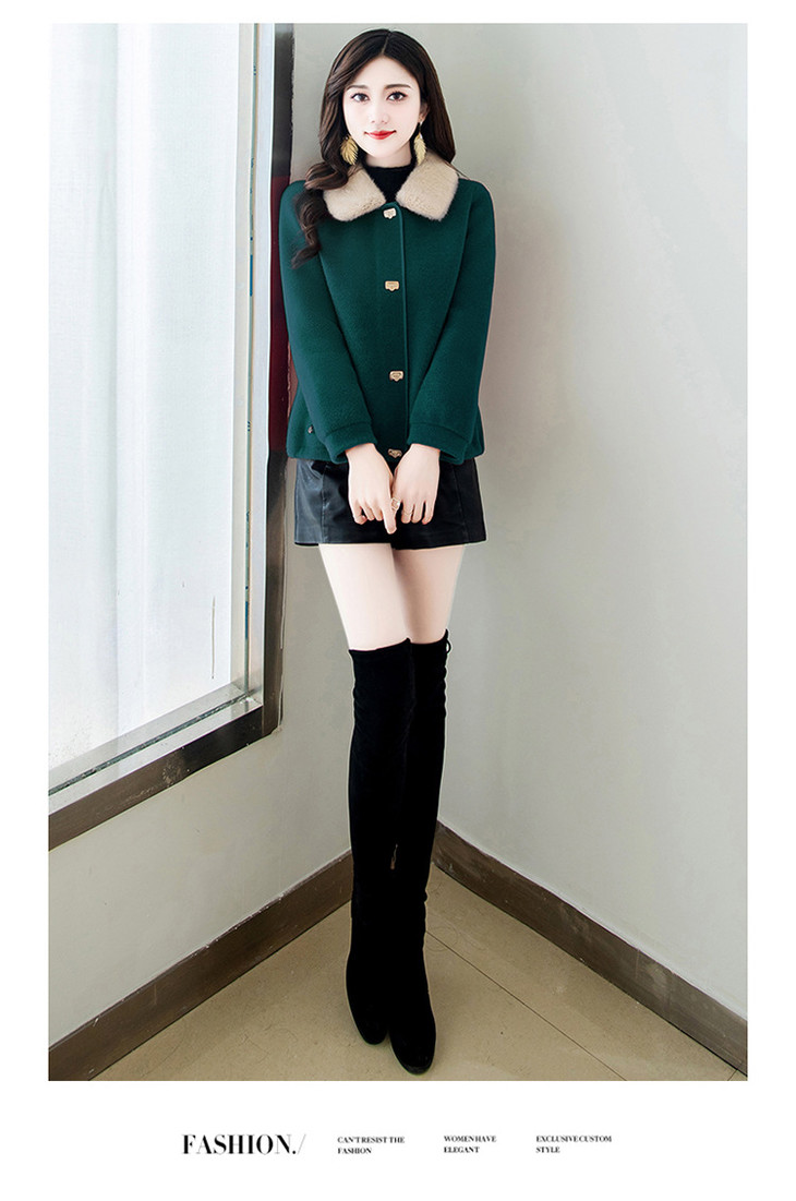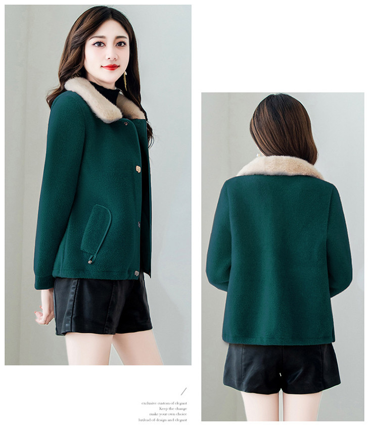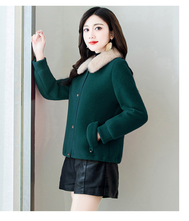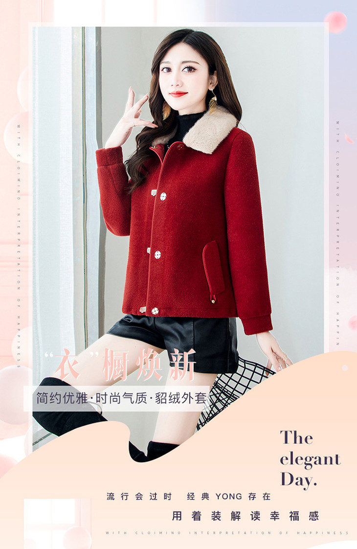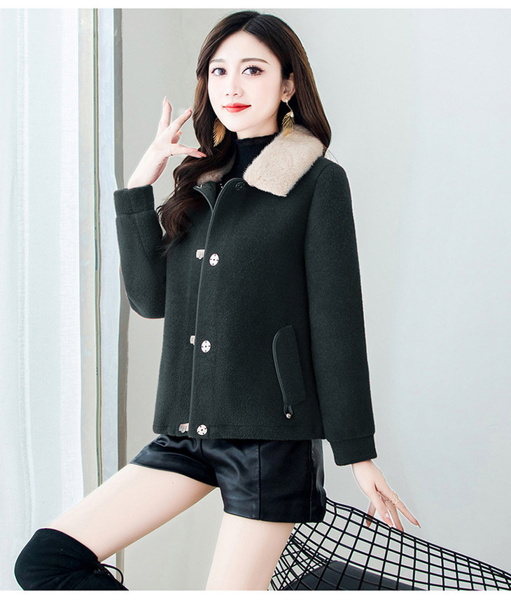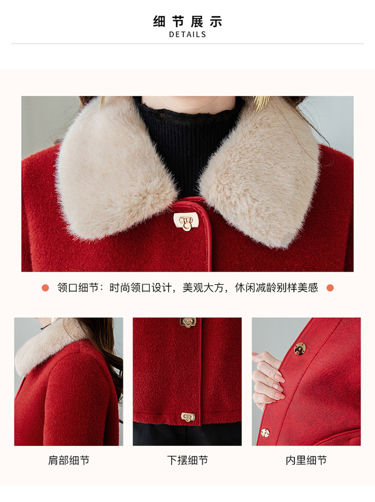 YWE-Q2160新款时尚优雅气质翻领长袖短款加厚保暖毛呢外套