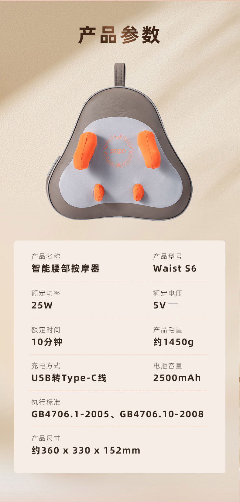 攀高腰部按摩器Waist S6 按摩腰靠腰背按摩器按摩仪送礼圣诞节礼物 冬季新款【腰靠按摩器】