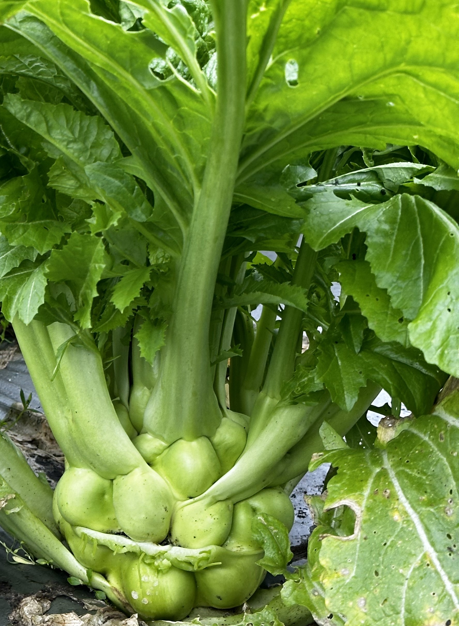 说到榨菜,我们第一个想到的是红底白字包装榨菜,没错,我们今年再韶关试种植了一批青菜头,就是做榨菜的青菜头。榨菜的原料青菜头,其实是一种茎变种的芥菜,短短的茎膨胀出很多瘤,所以也称茎瘤芥。