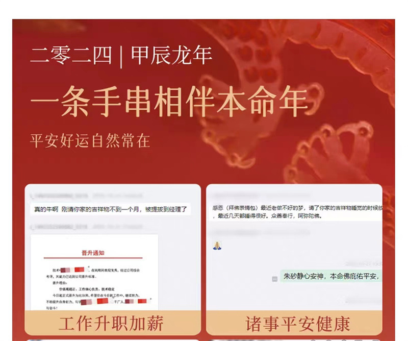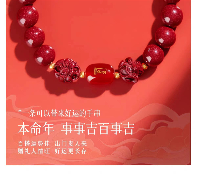 丁摩 2026属马朱砂手串正品马年本命年朱砂手链三合六合大势至菩萨