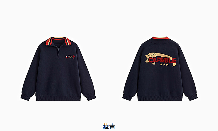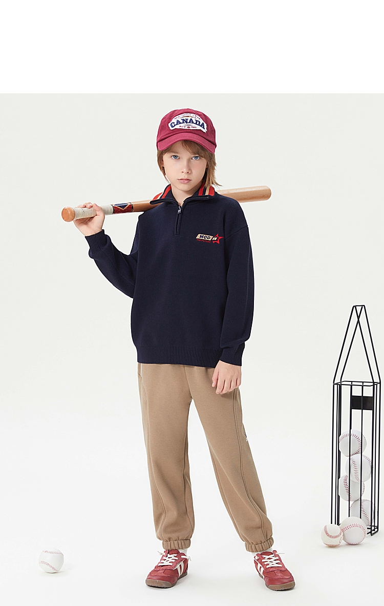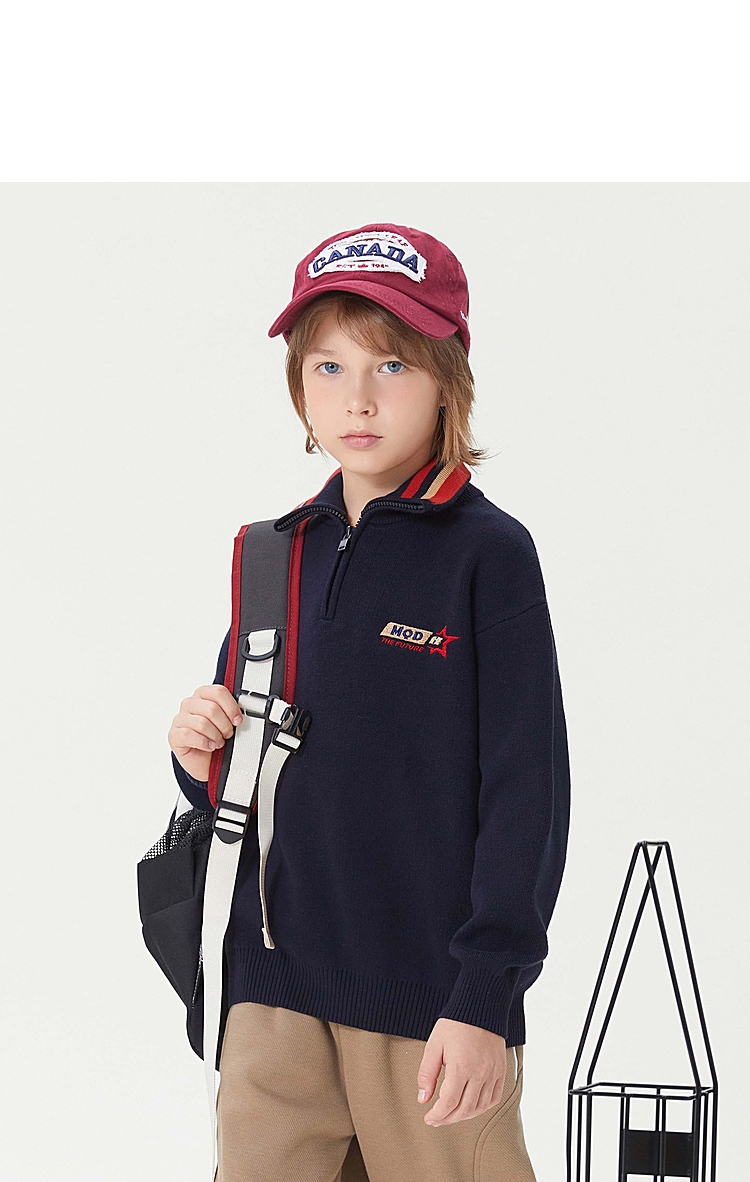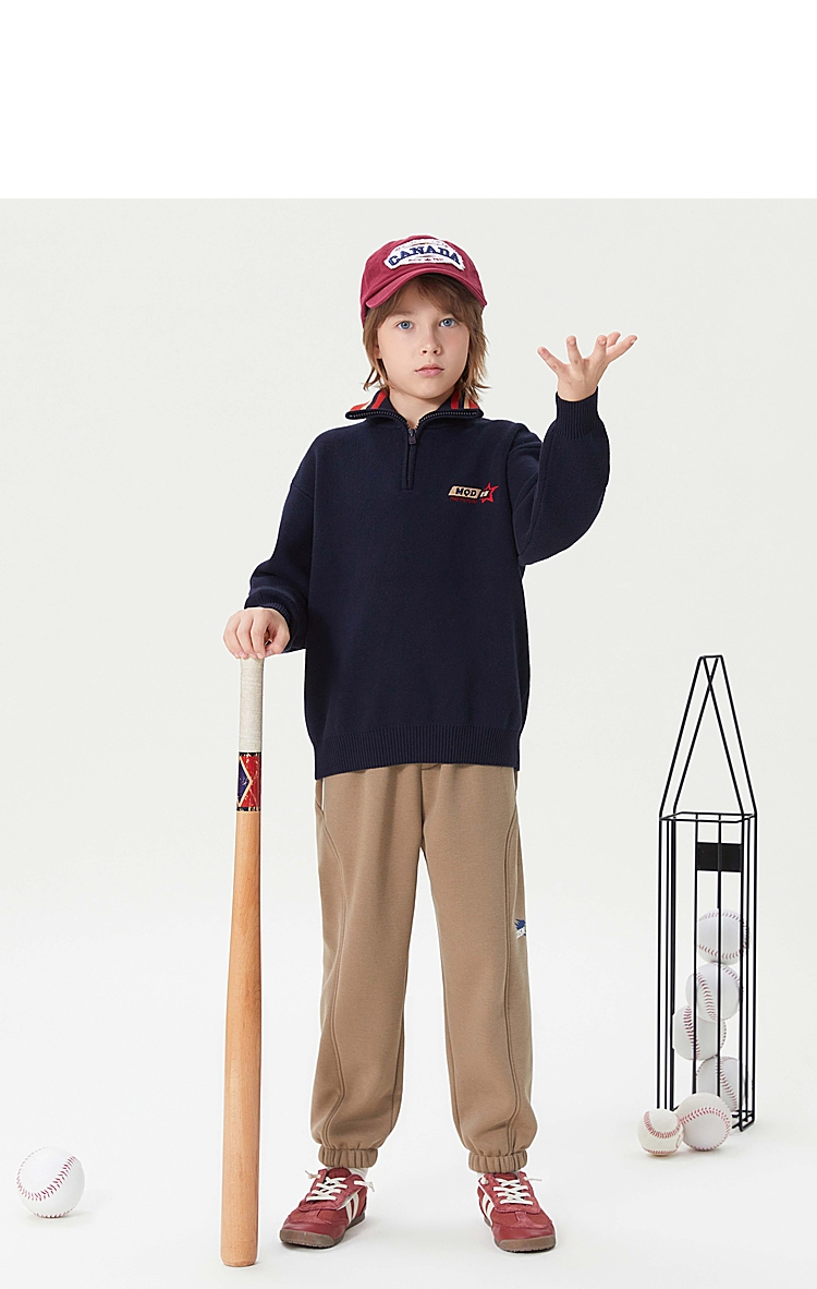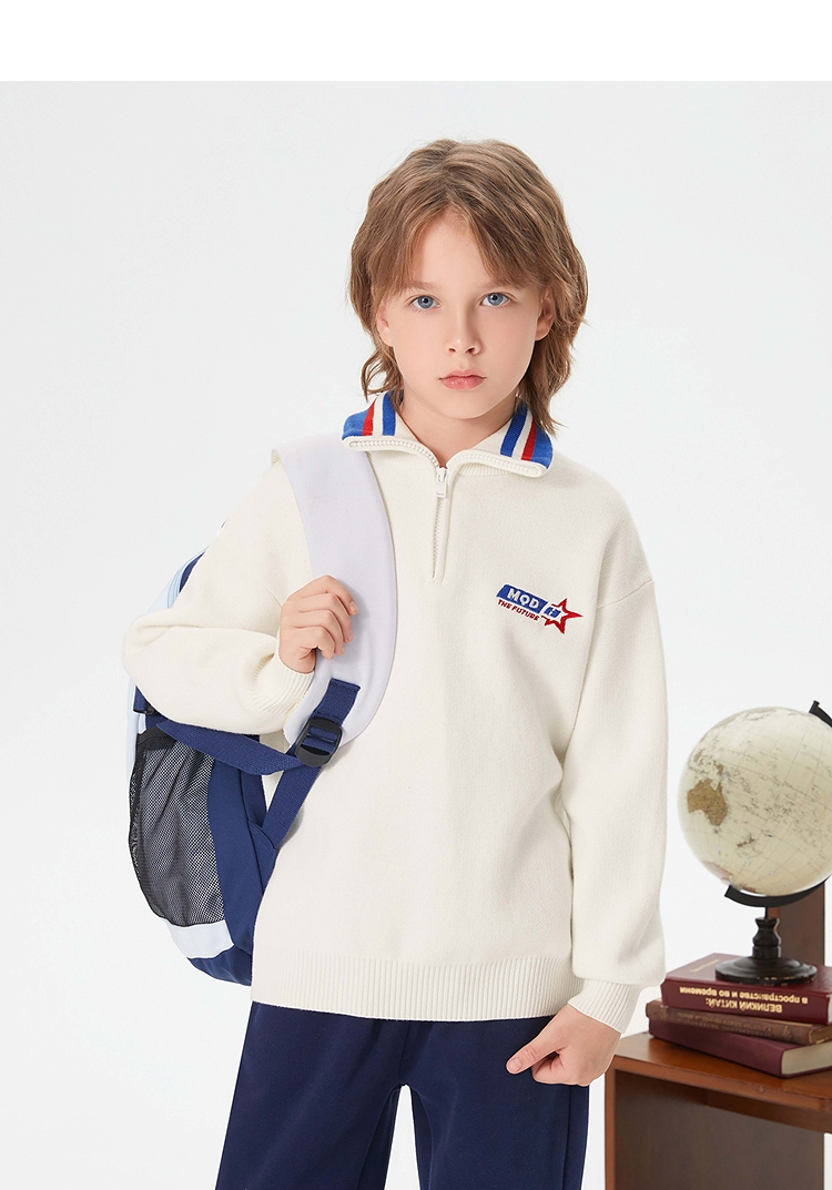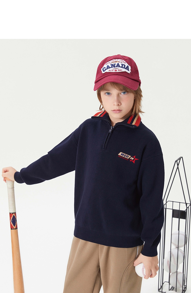 【MQD】童装男大童冬学院风休闲翻领毛衣儿童潮酷针织衫上衣
