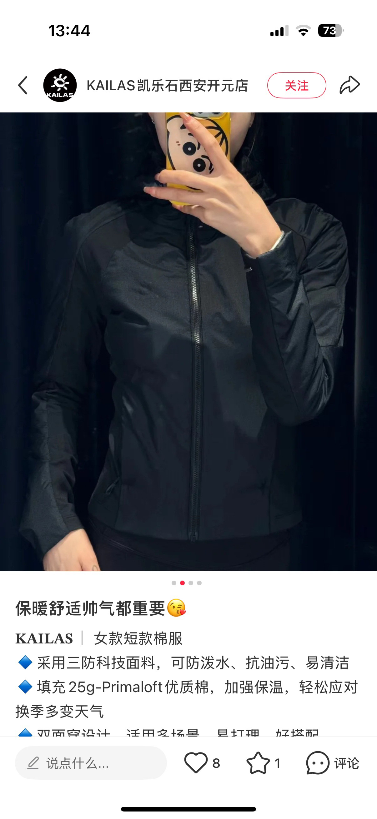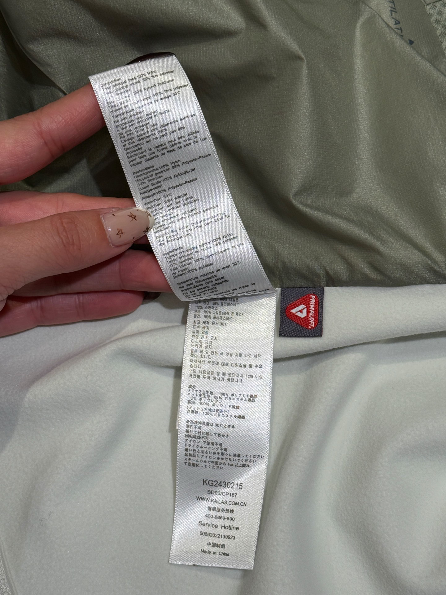 确实是高端的好东西 防风防泼 即使湿水后也能保持温暖,其保暖系数可媲美550蓬羽绒