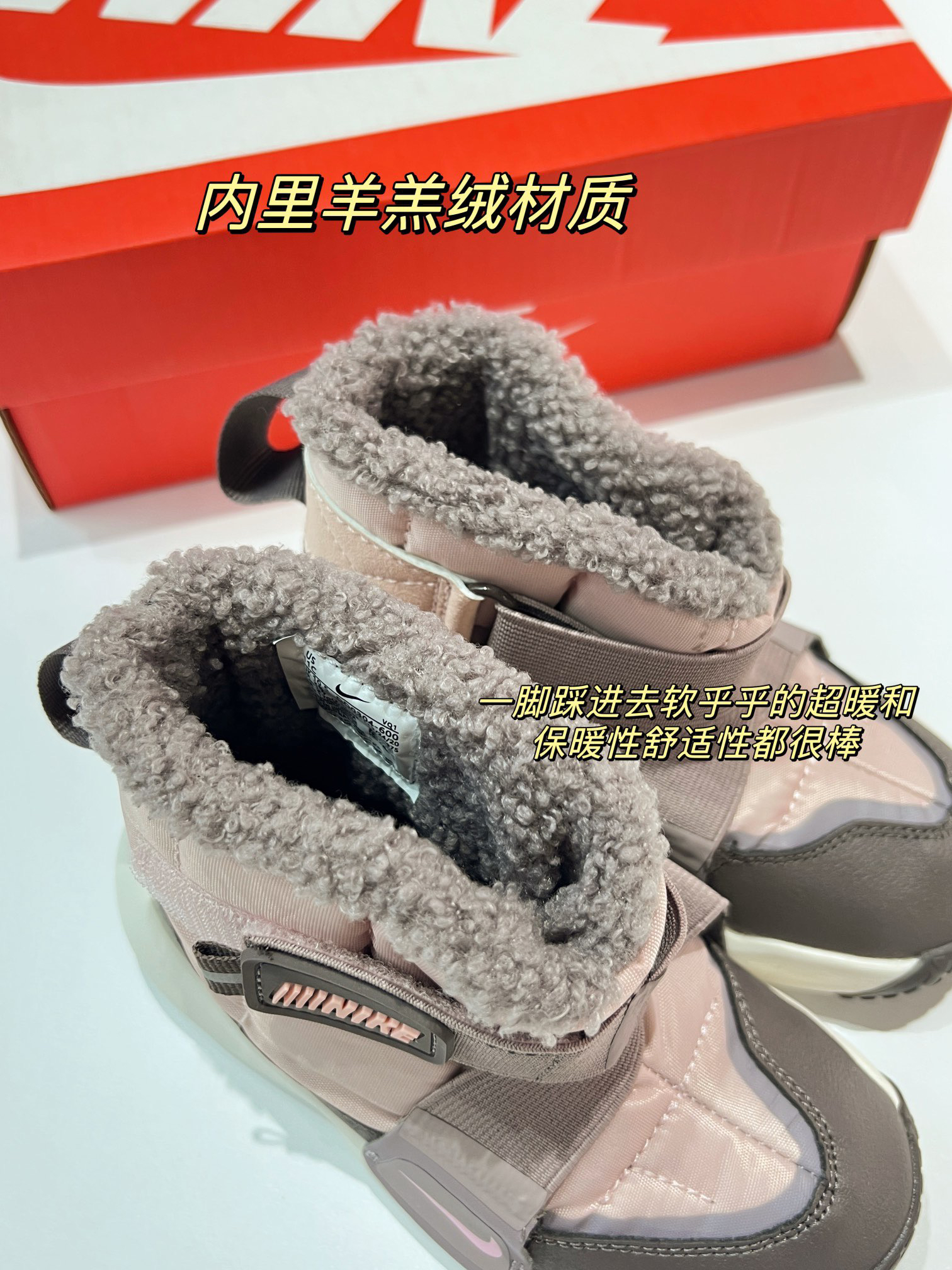 内里除了鞋垫以外 都是厚实的羊羔绒材质 包括整个加高的靴口 一脚踩进去就像小暖炉一样软乎乎的超暖和 保暖性舒适性都很棒哦!