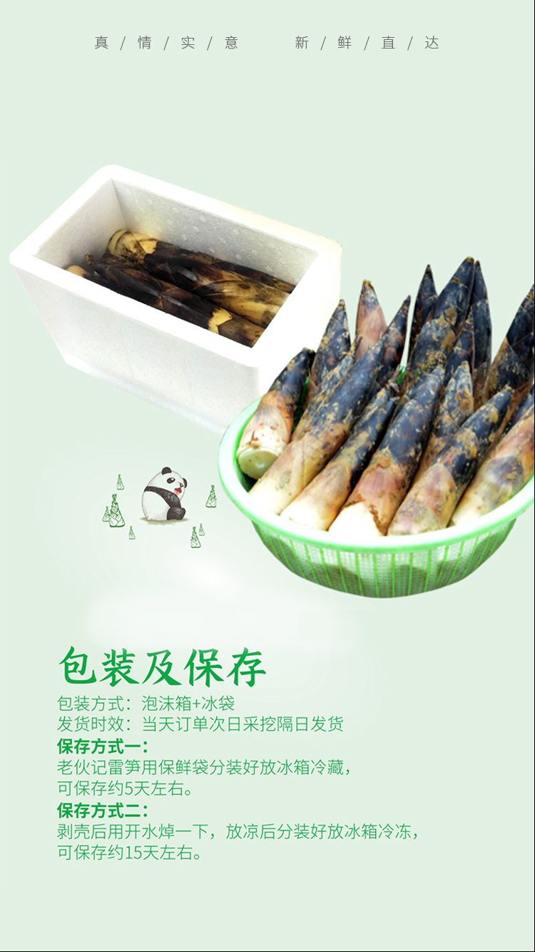 1.收到雷笋后用保鲜袋将雷笋分装好,放在冰箱冷藏,可保存5-7天左右;