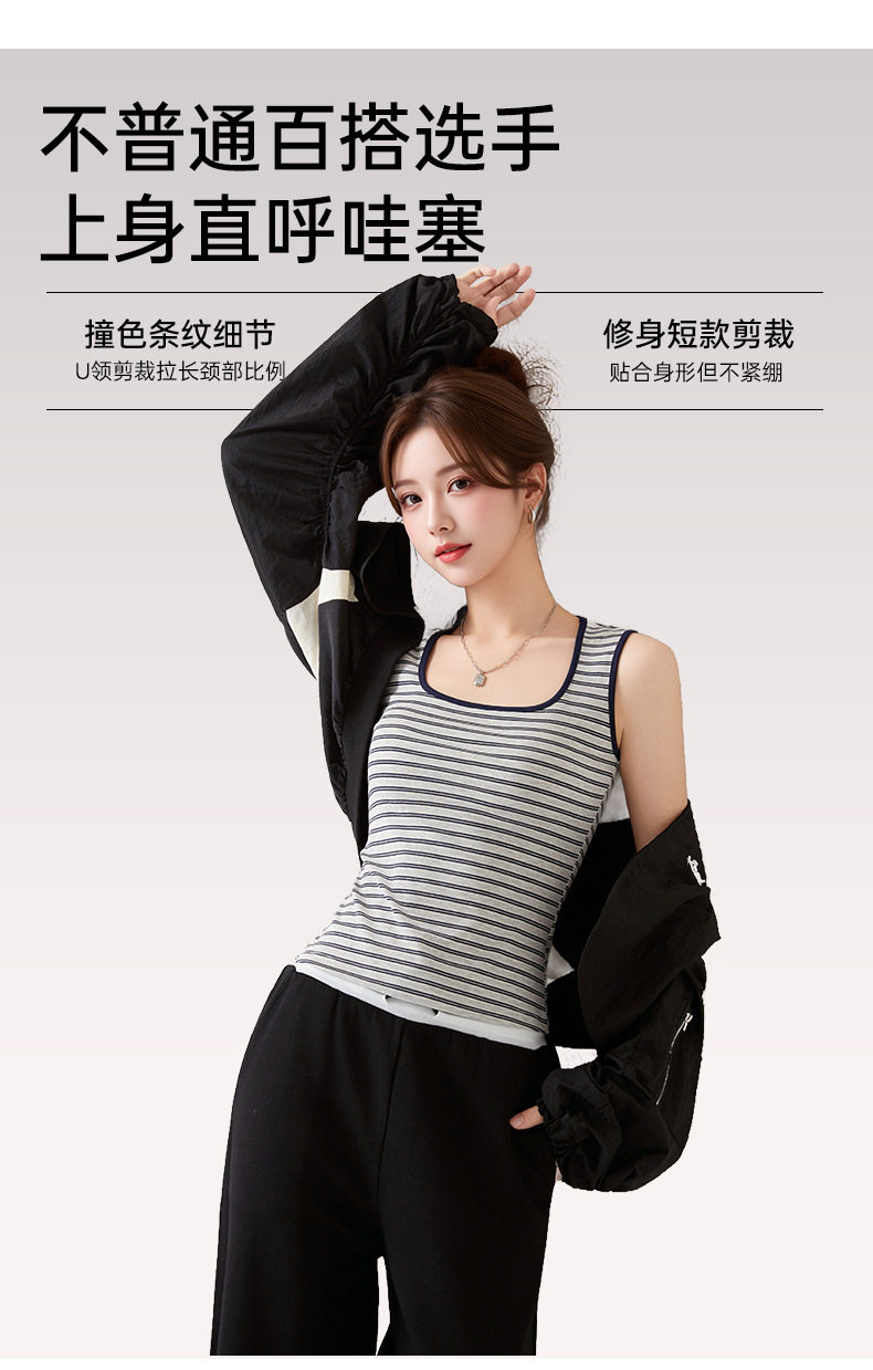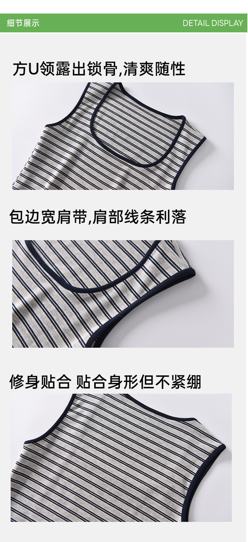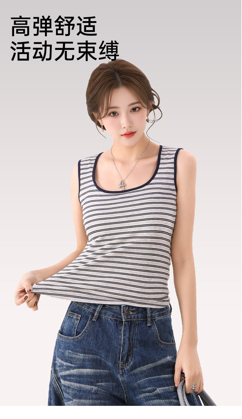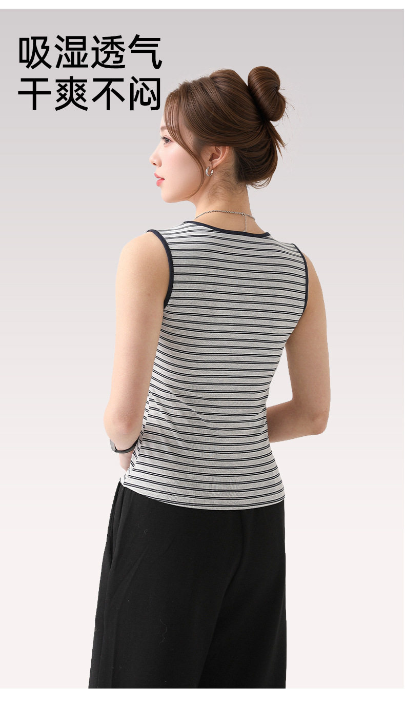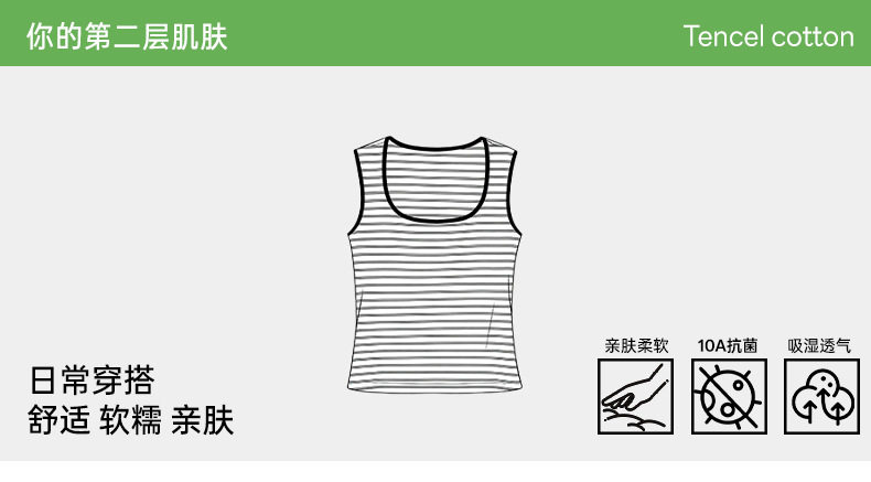 「自」全新升级【铂金会员91/天猫119/差价28】(03313)洛诗琳气质天丝棉条纹背心女2026新款抗菌显瘦U领打底上衣