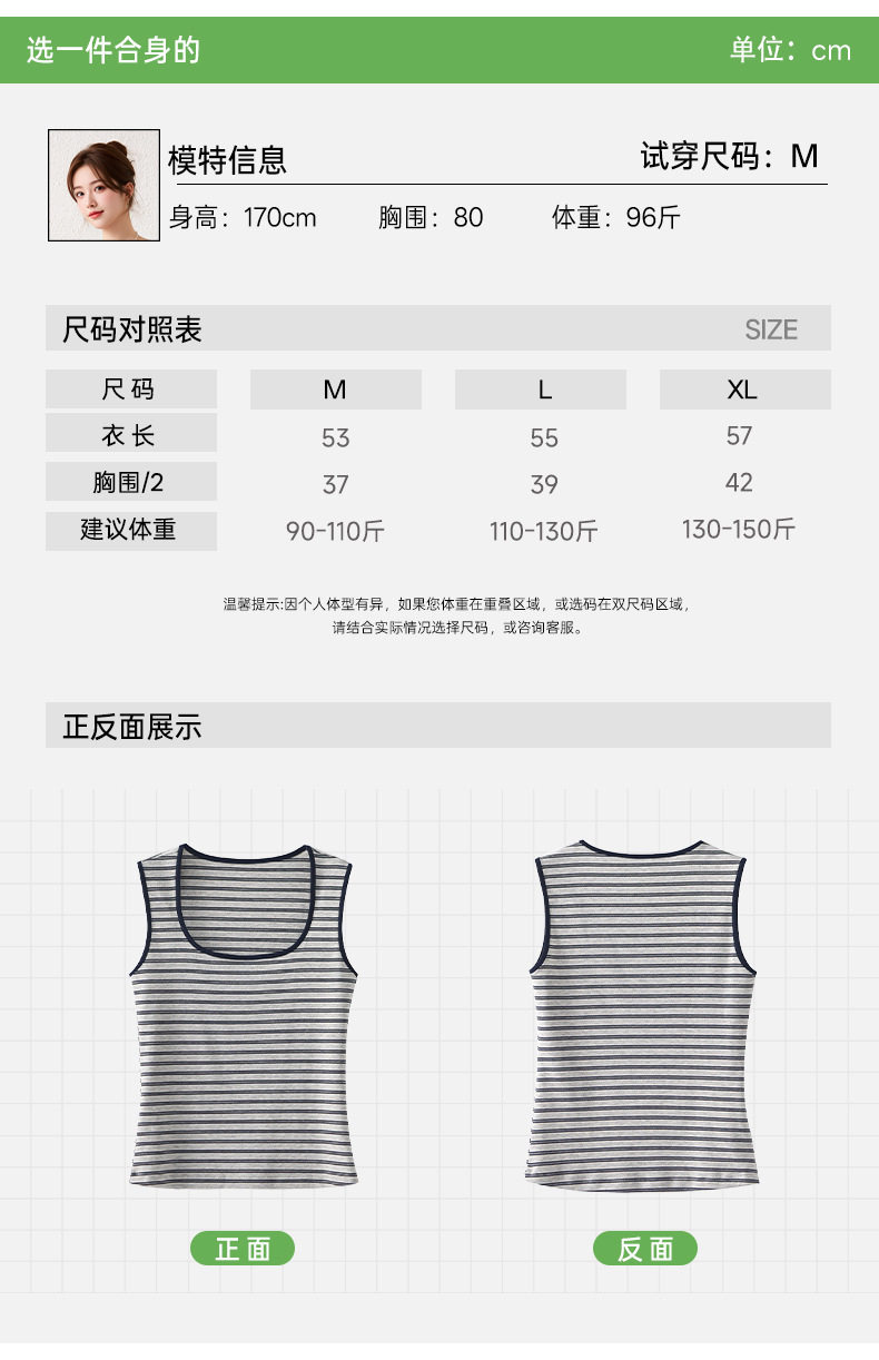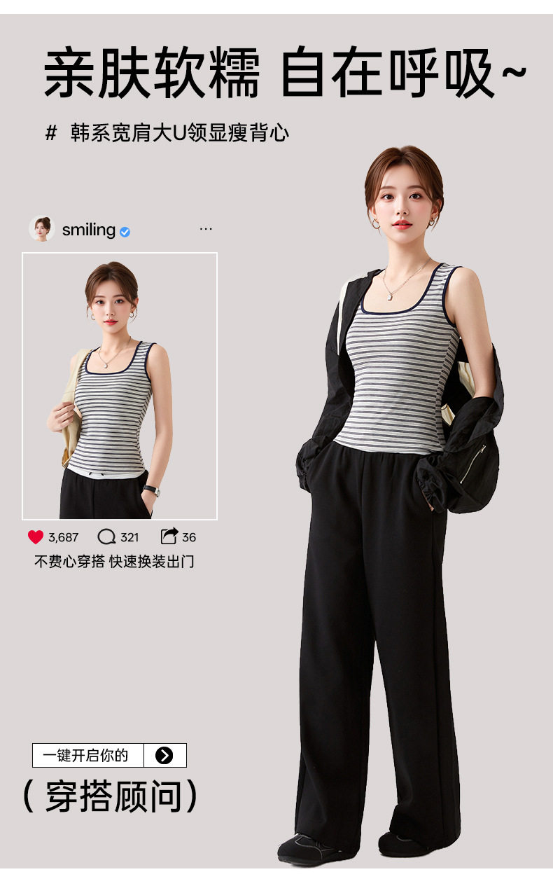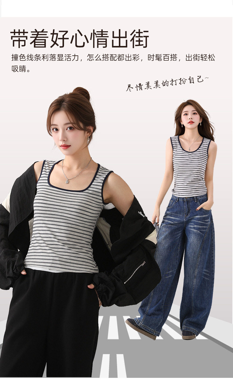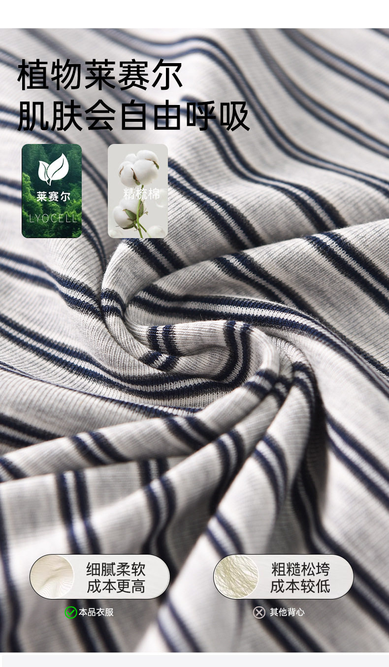 「自」全新升级【铂金会员91/天猫119/差价28】(03313)洛诗琳气质天丝棉条纹背心女2026新款抗菌显瘦U领打底上衣