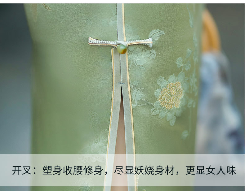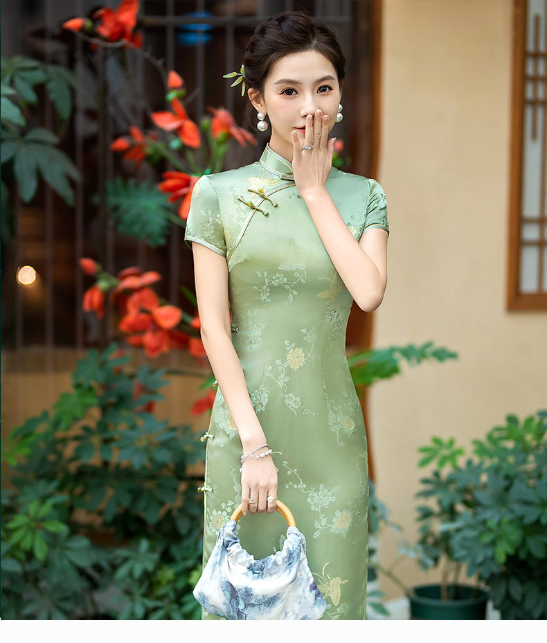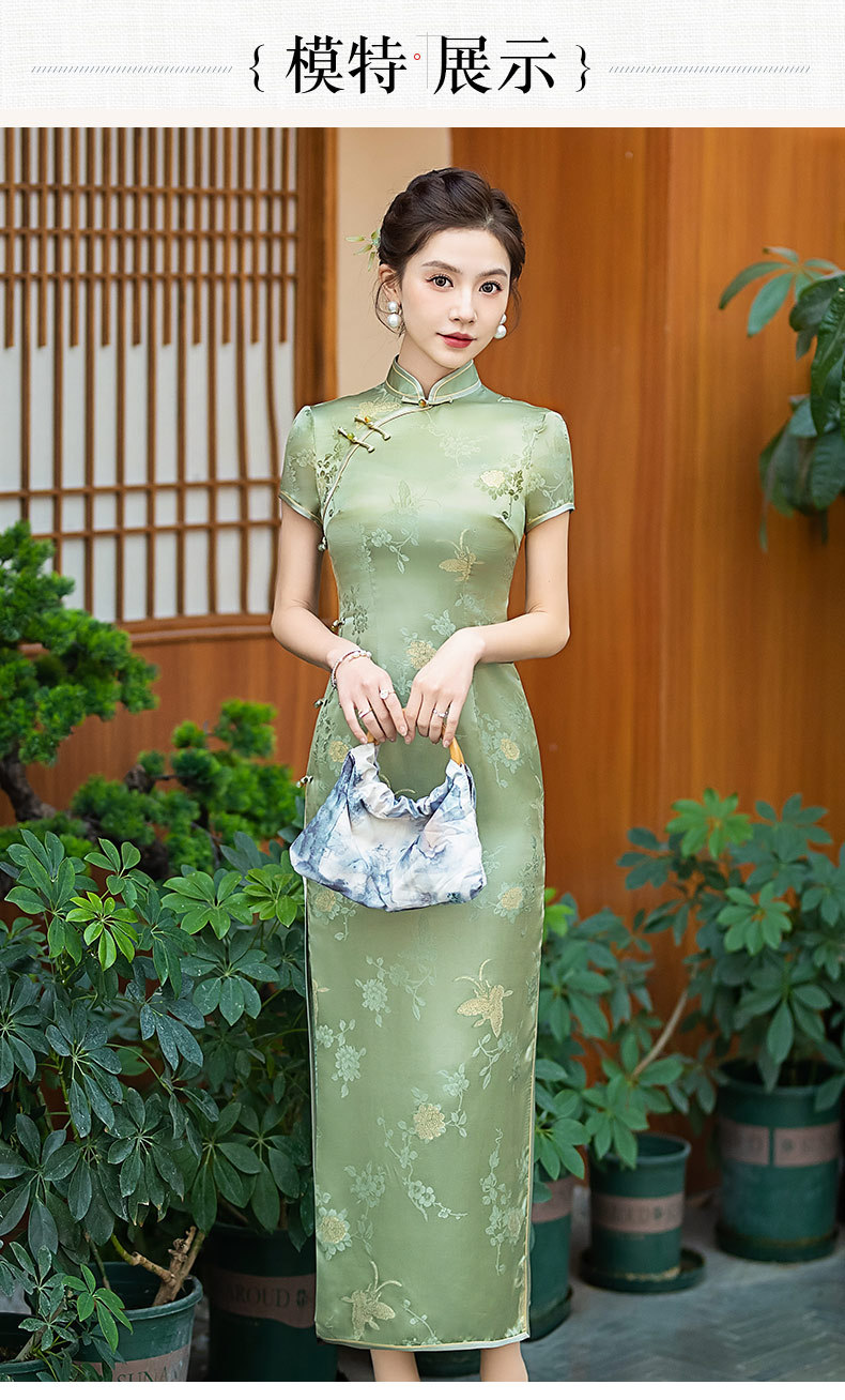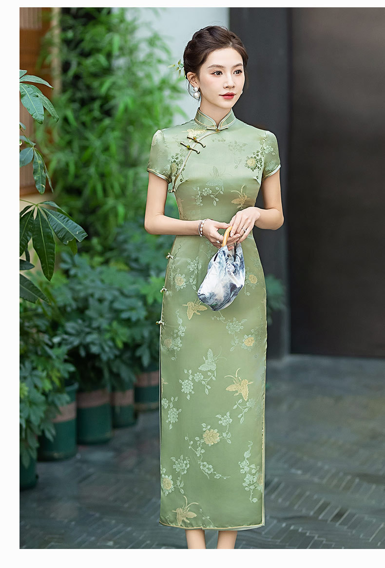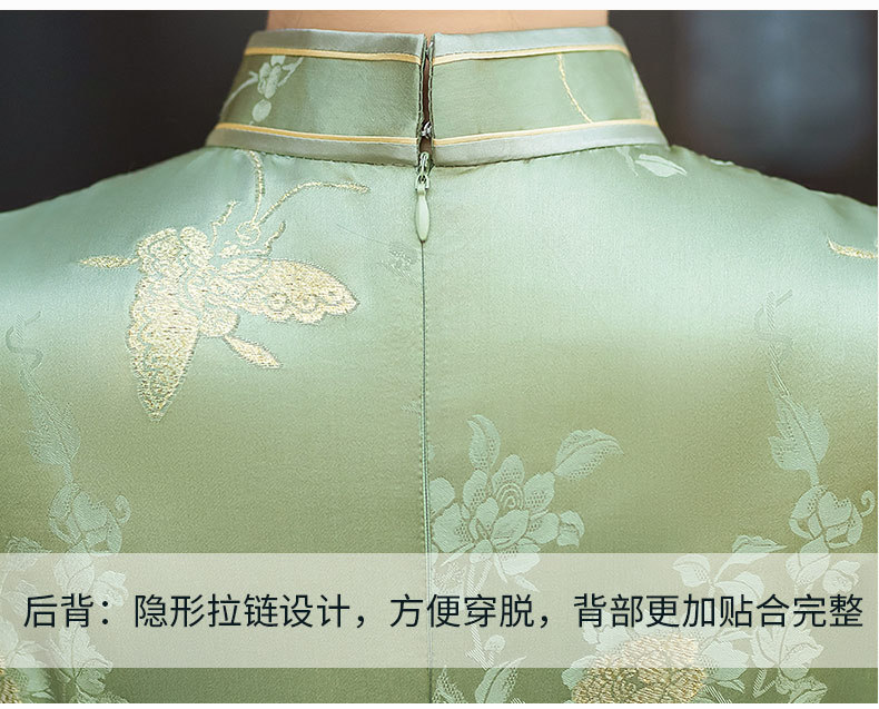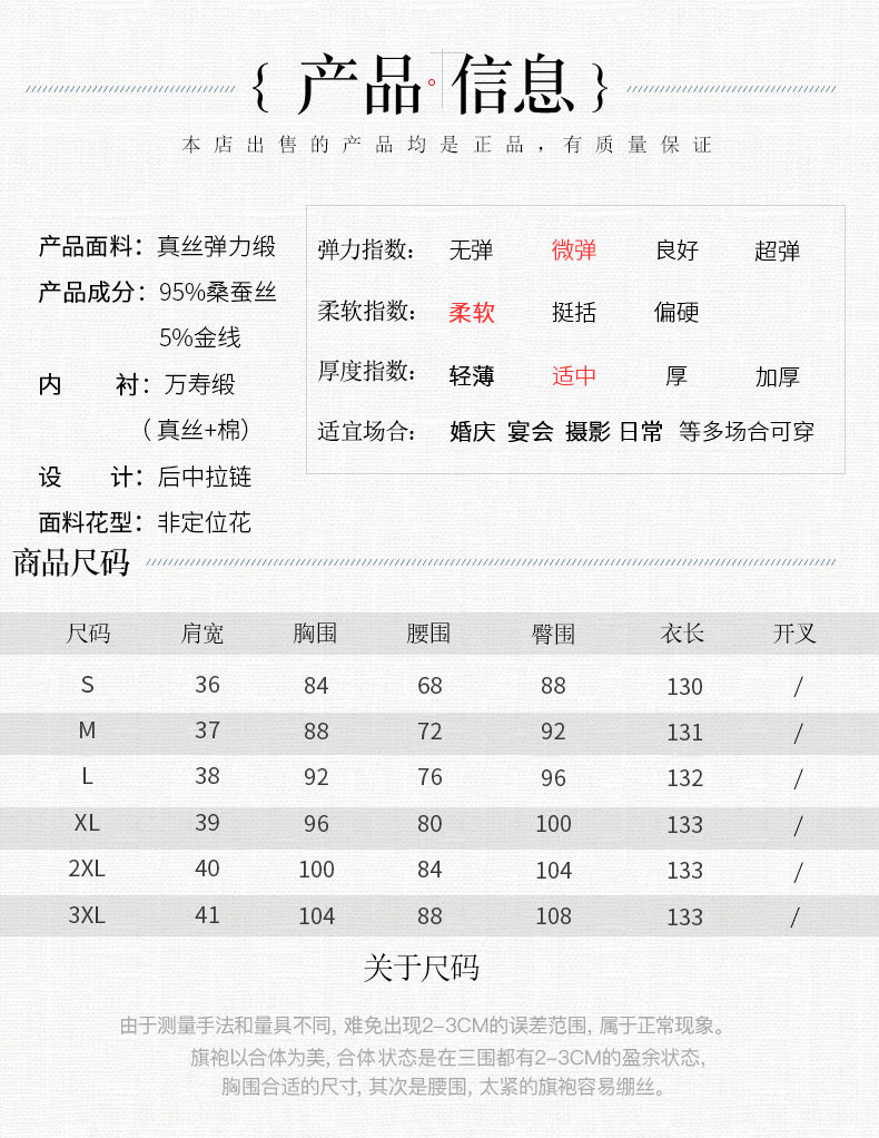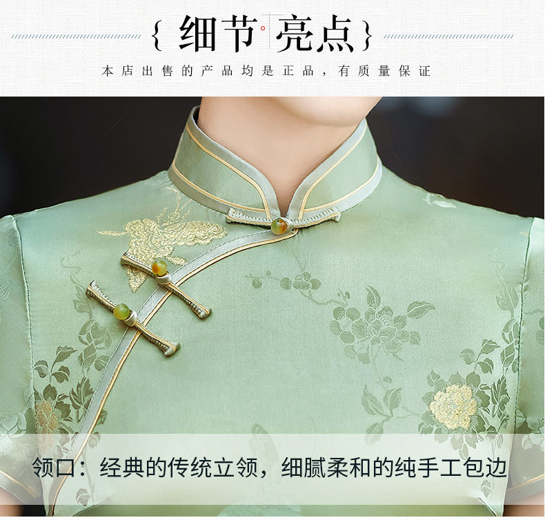 WX-春季新款提花真丝旗袍中式桑蚕丝金丝高端手工缝制宴席