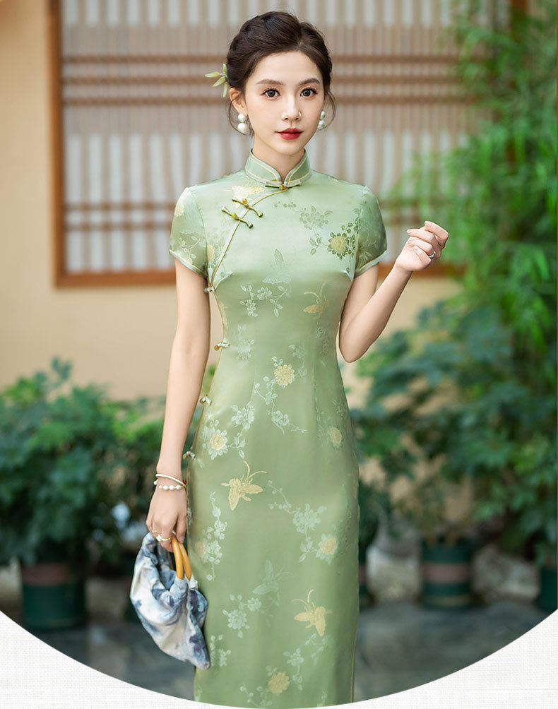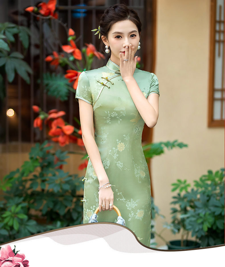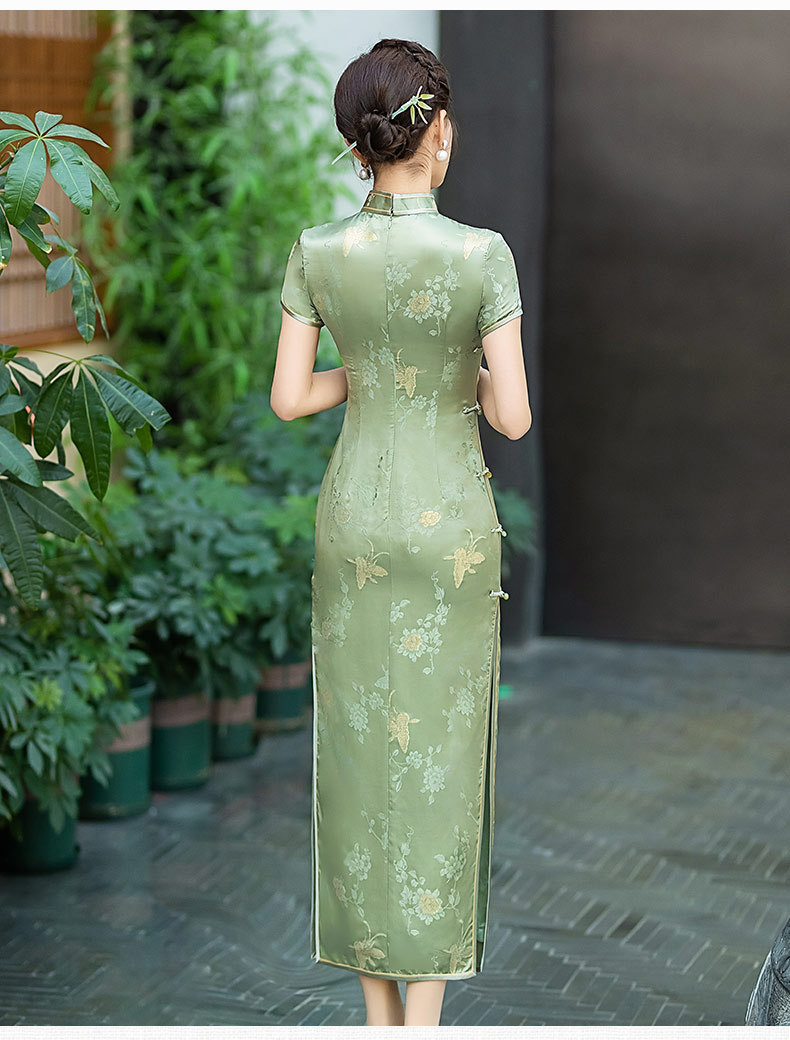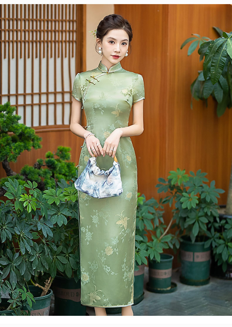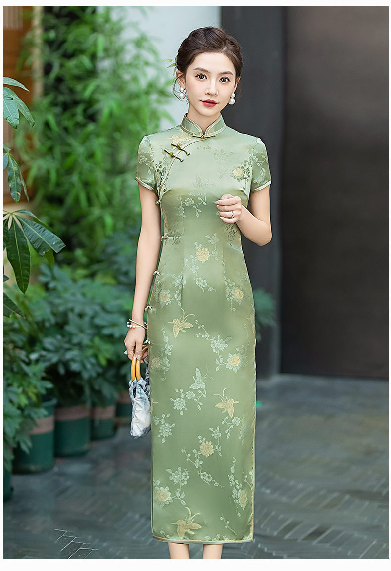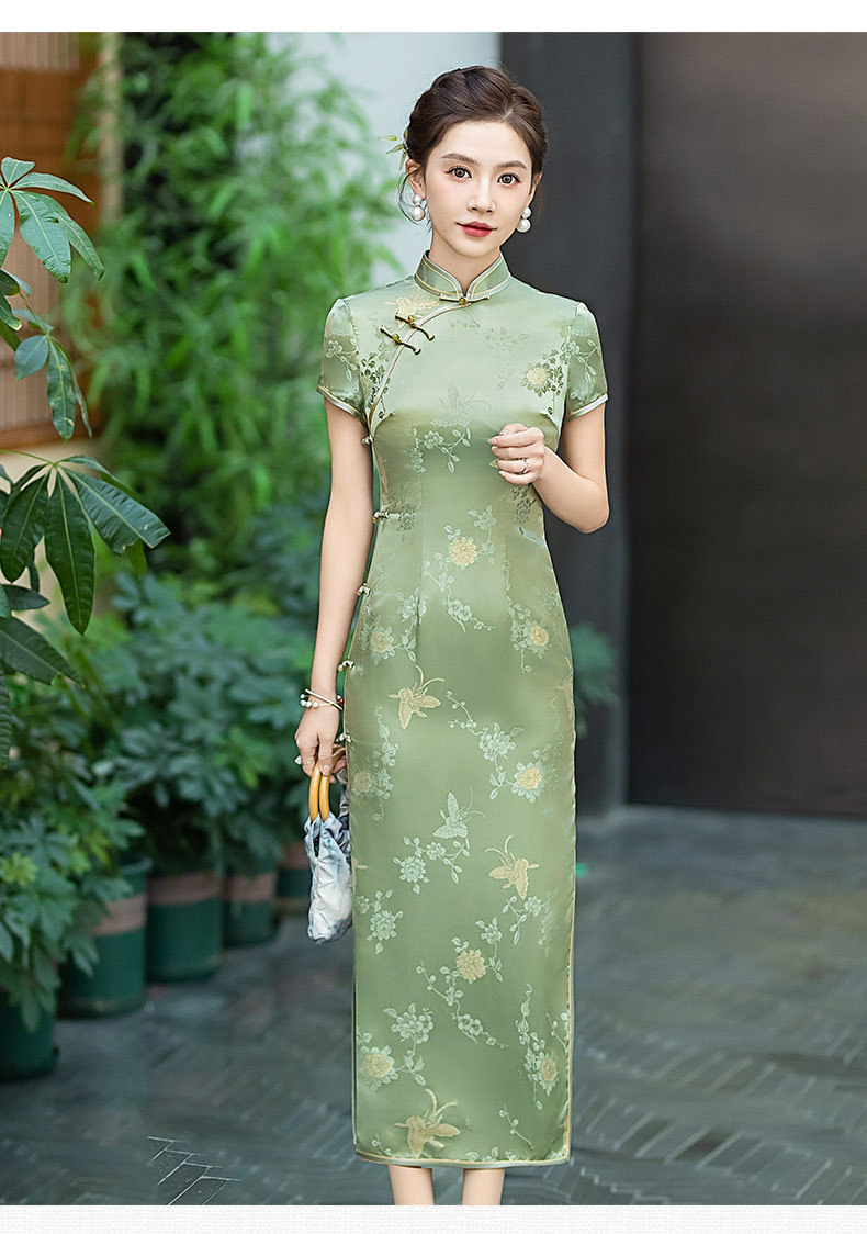 WX-春季新款提花真丝旗袍中式桑蚕丝金丝高端手工缝制宴席