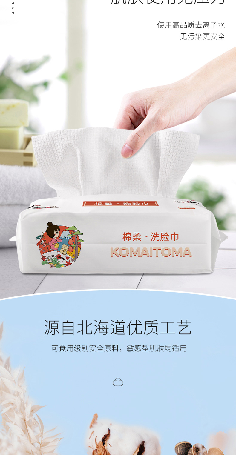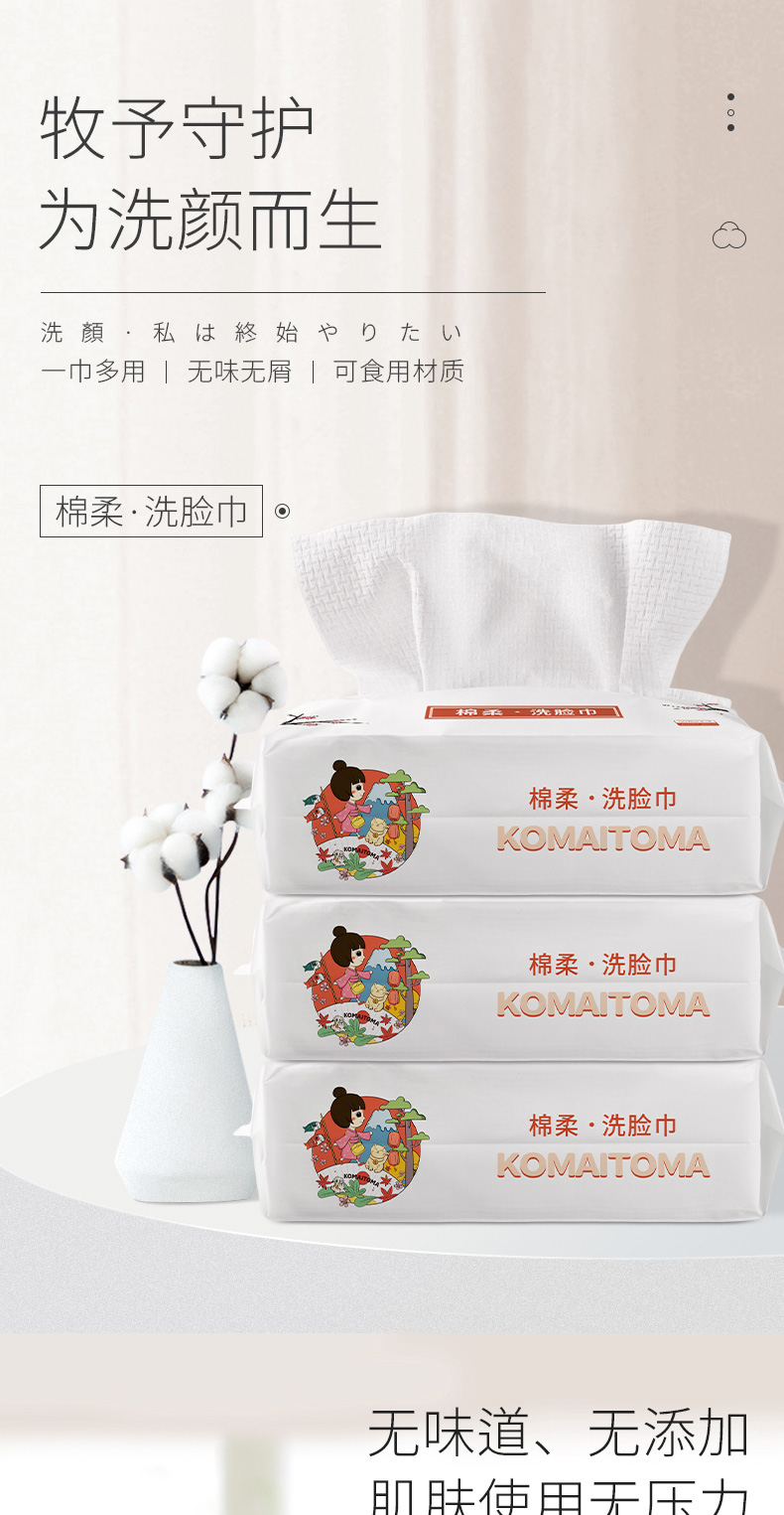 牧小苫EF纹洗脸巾抽取式洁面巾加大加厚棉柔巾50抽一次性10包