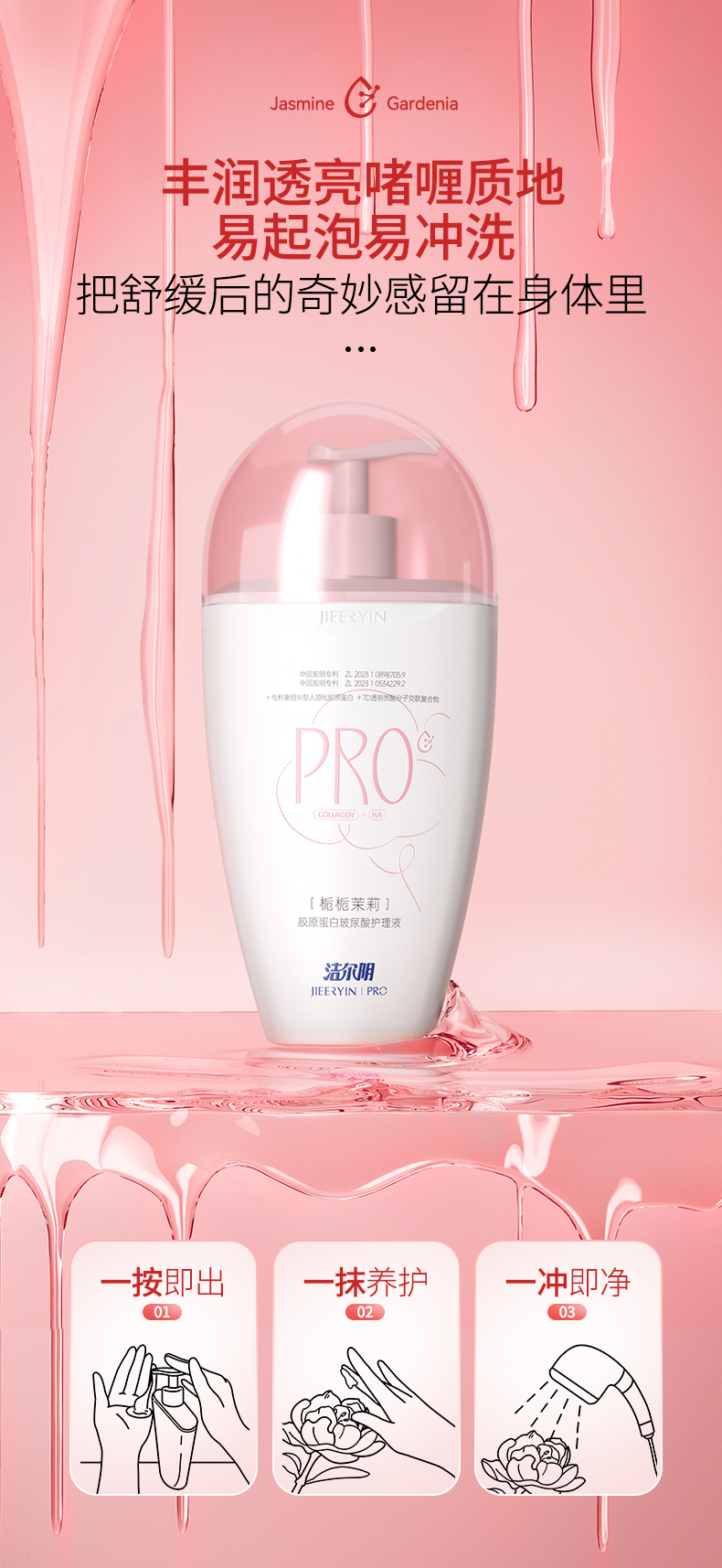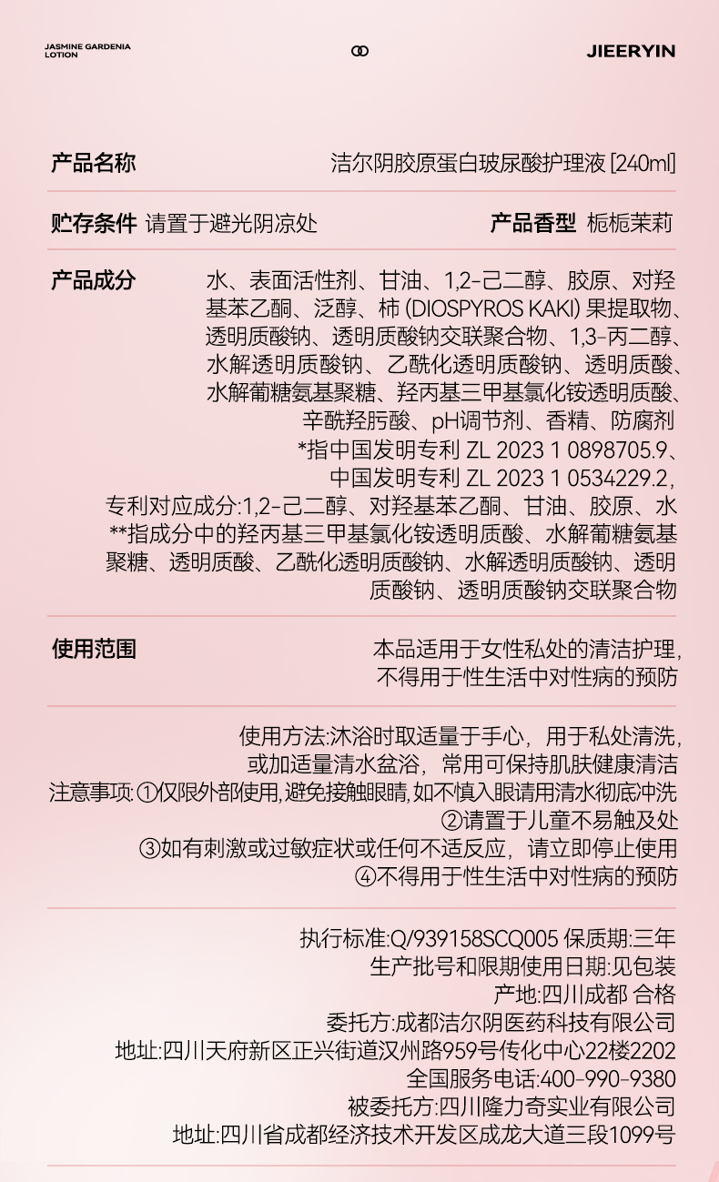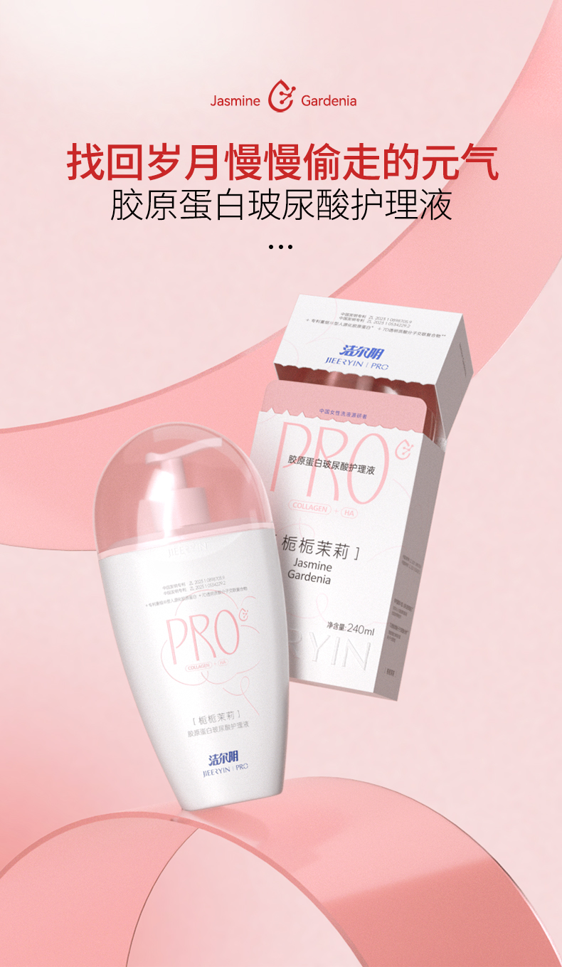 【香氛洗液】洁尔阴胶原蛋白玻尿酸栀栀茉莉护理液240ml