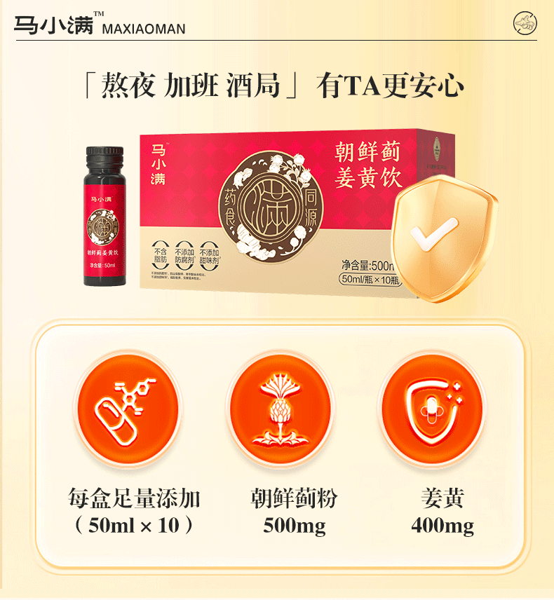 【马应龙-健康】马小满朝鲜蓟姜黄饮500ml