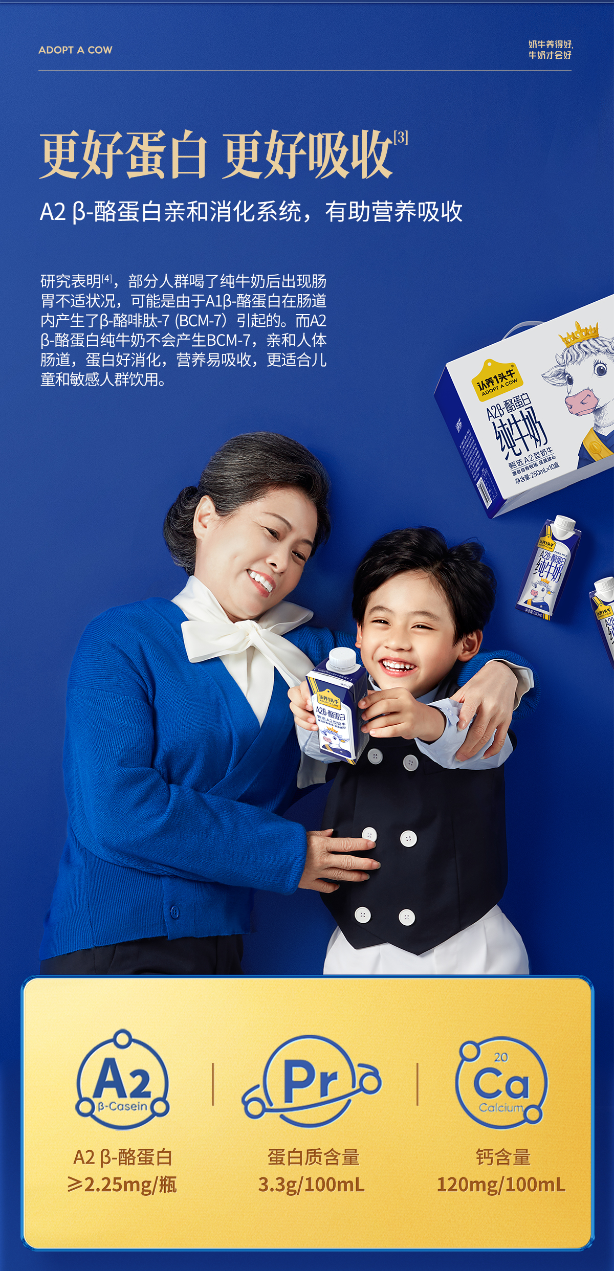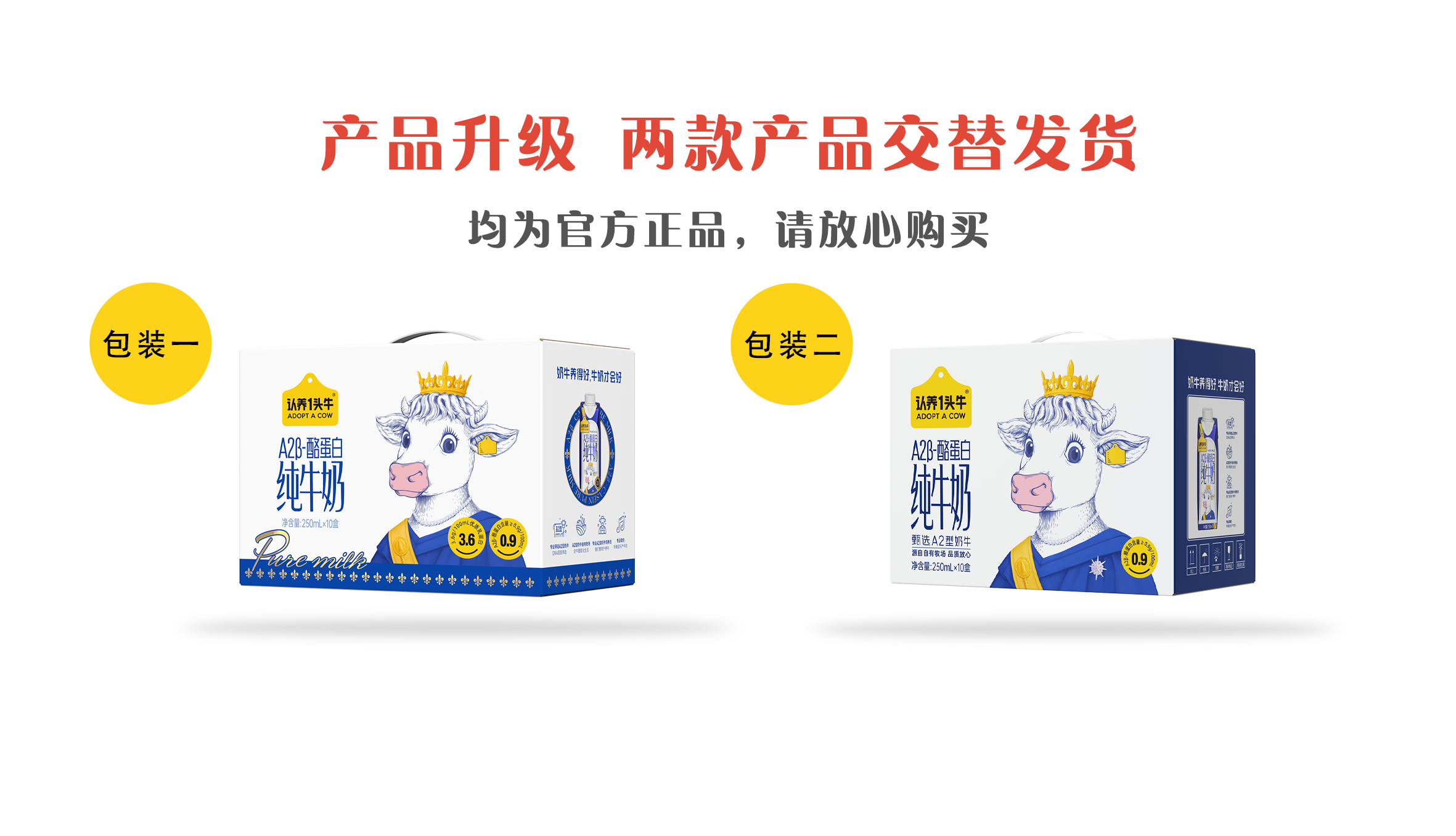 【营养师推荐】认养一头牛A2β酪蛋白纯牛奶250ml*10盒*4提亲和肠胃