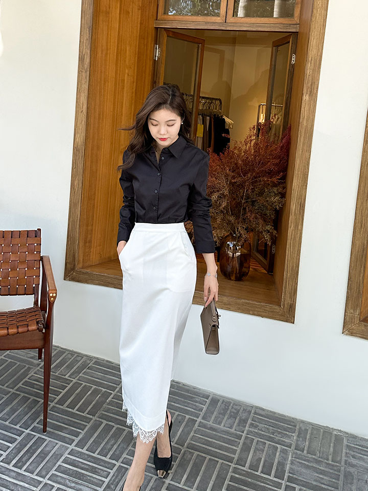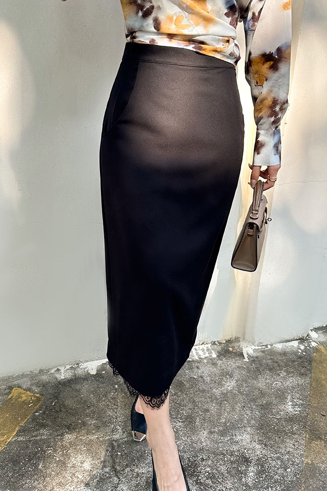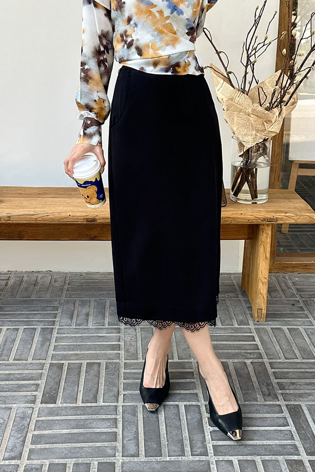 洛诗琳05708气质直筒半身裙2025夏季新款蕾丝拼接通勤裙子53266
