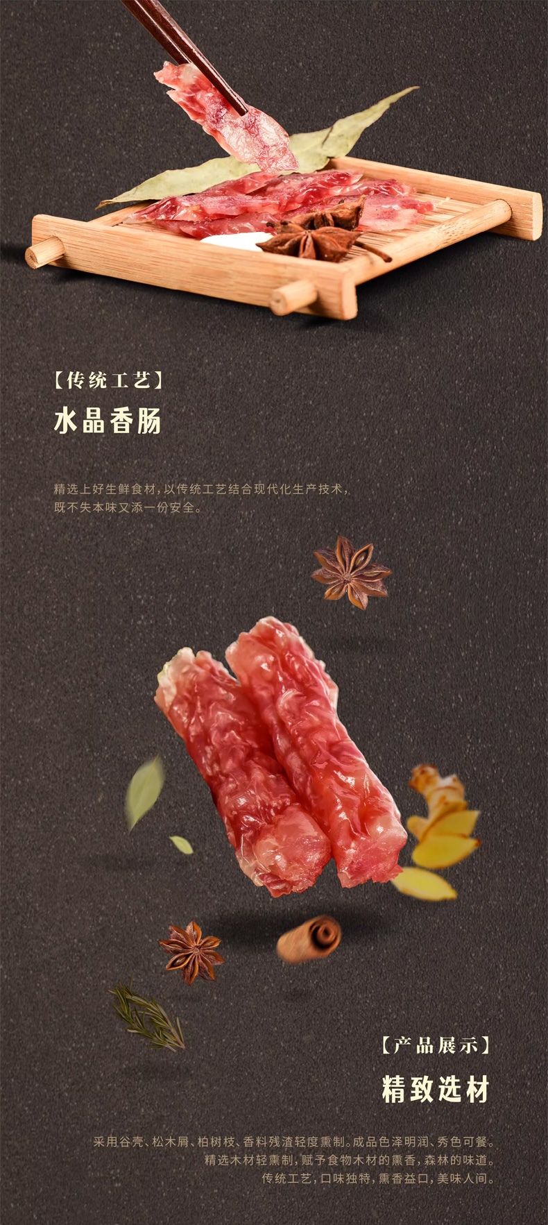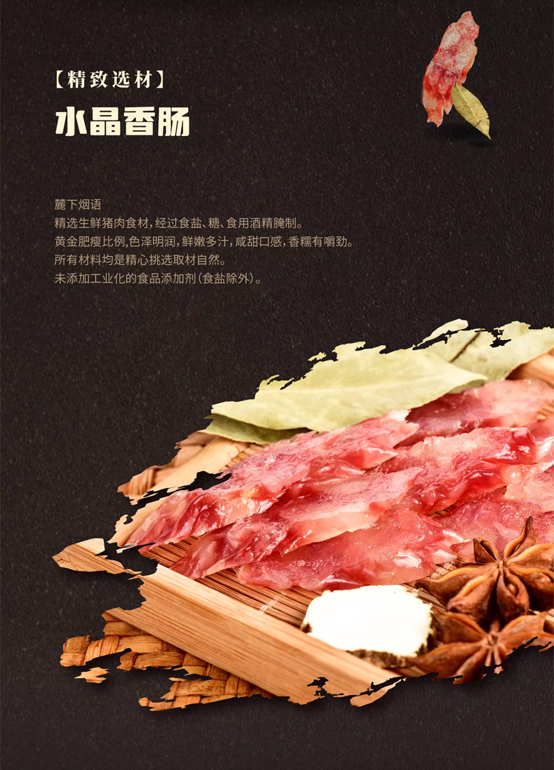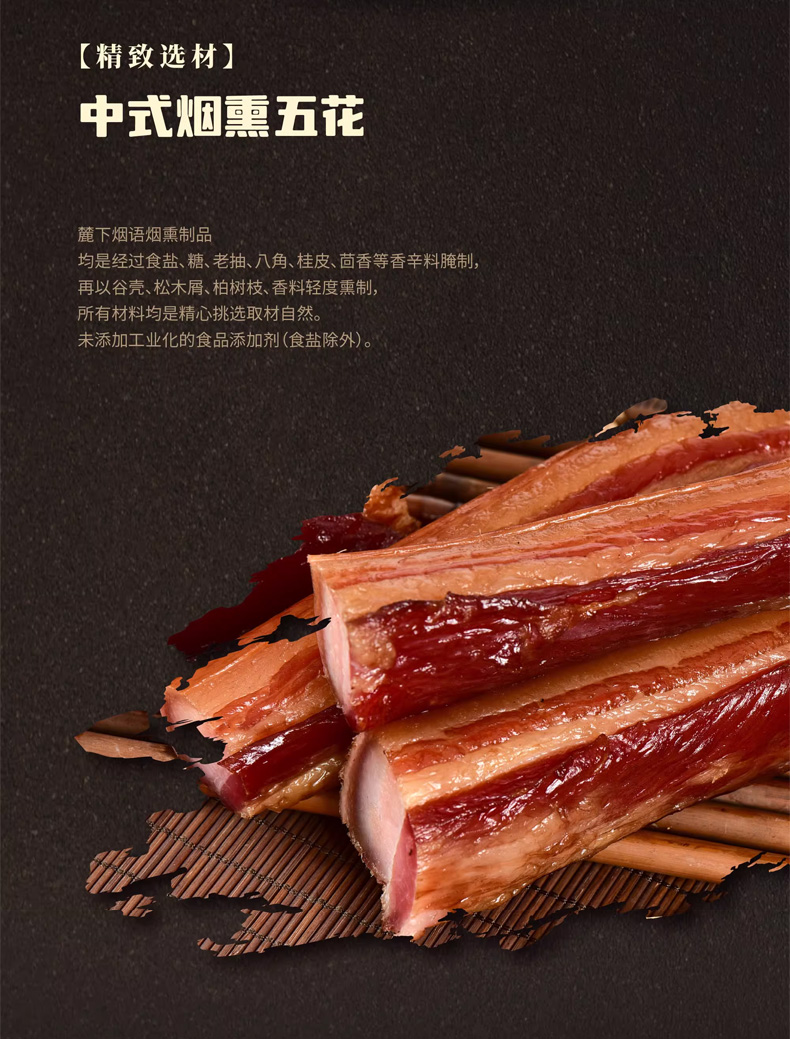 【周三会员日限时折扣】麓下烟语水晶香肠160g/烟熏五花250g/烟熏牛肉200g
