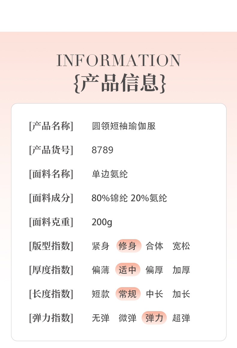 跃牌【健舞健美】系列显瘦修身运动户外健身服上衣短袖T恤8789
