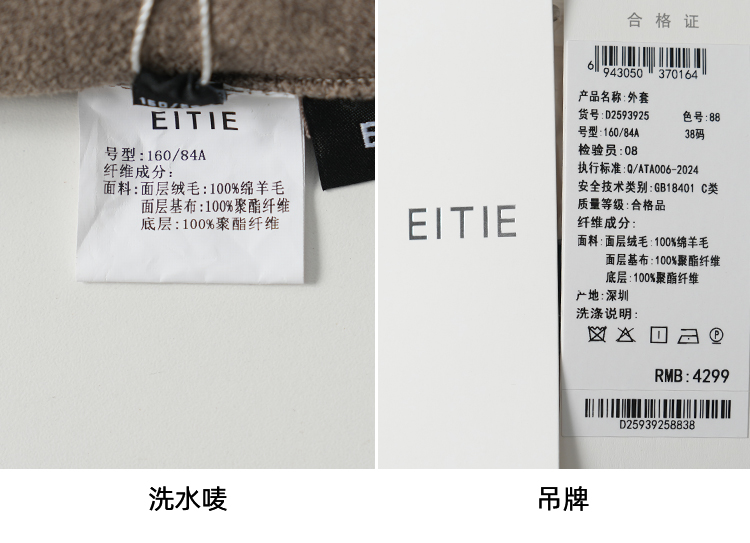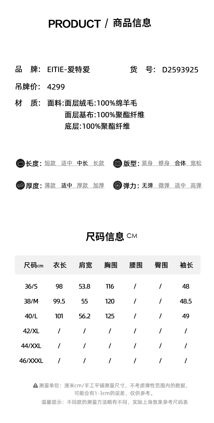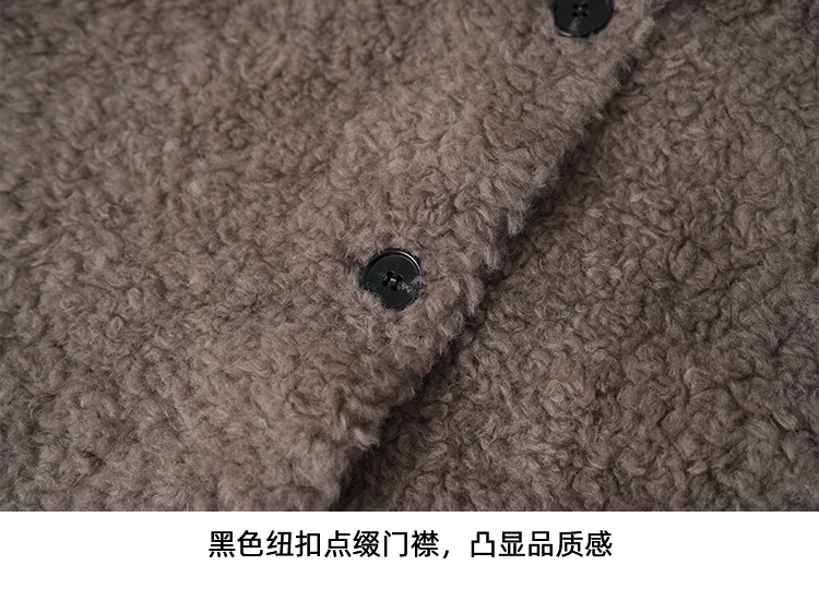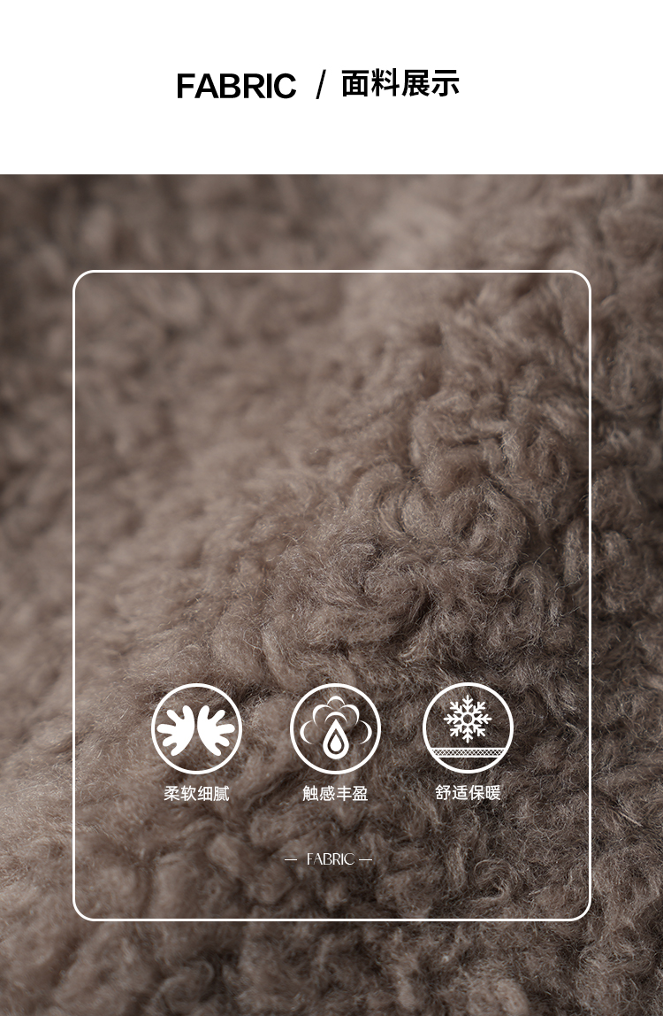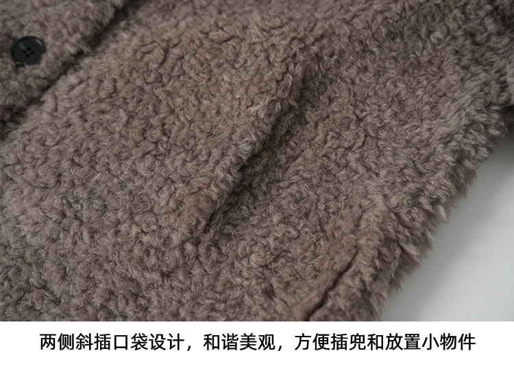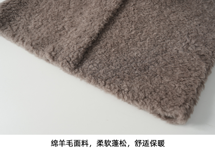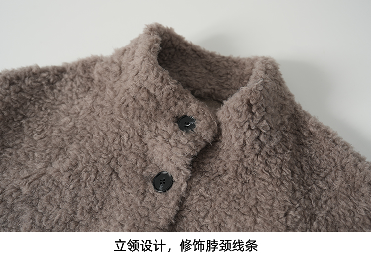 EITIE爱特爱气质立领咖色长款颗粒绒羊剪毛大衣外套冬季新款皮衣D2593925