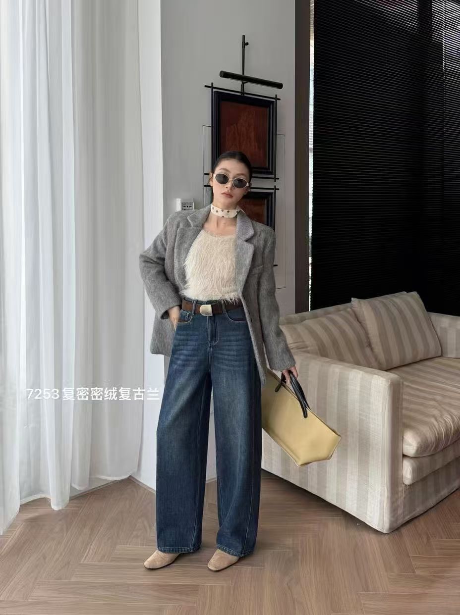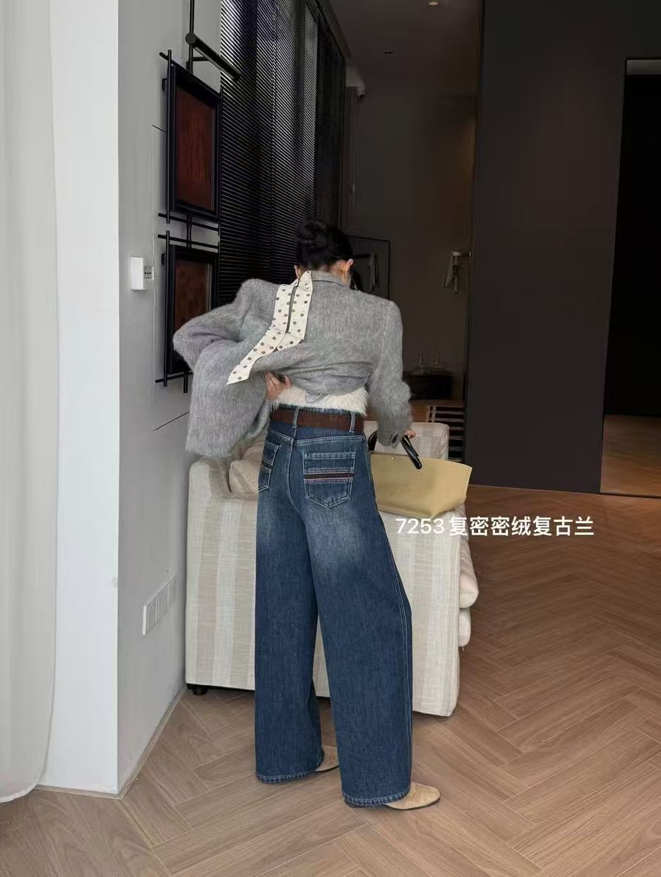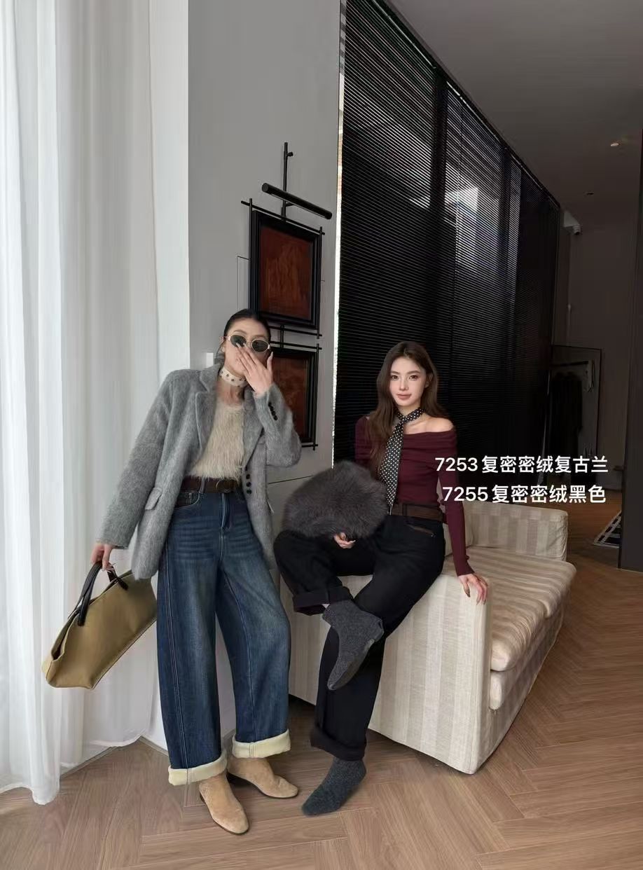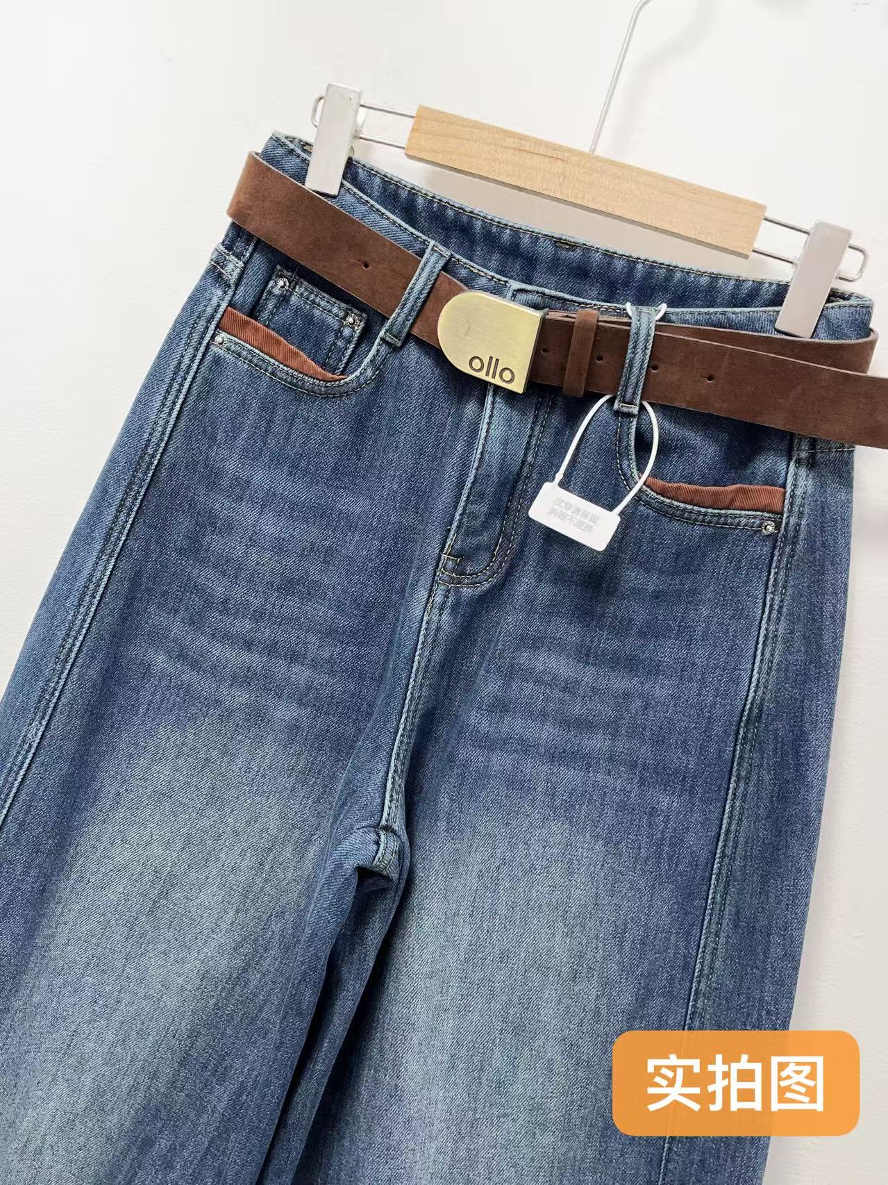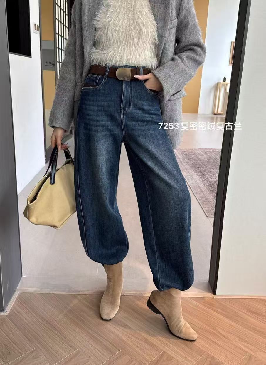 抢购价-不支持退【自营】加绒🔥🔥🔥【爆款牛仔裤】密密绒撞色美拉德~超显瘦7253冬季密密绒弯刀牛仔裤-喜出