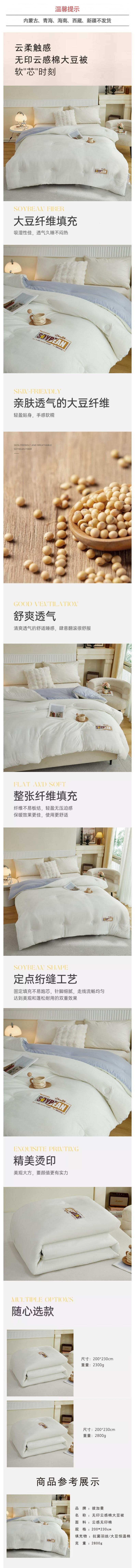 彼加曼 无印云感棉大豆被200*230cm BGM-B2556