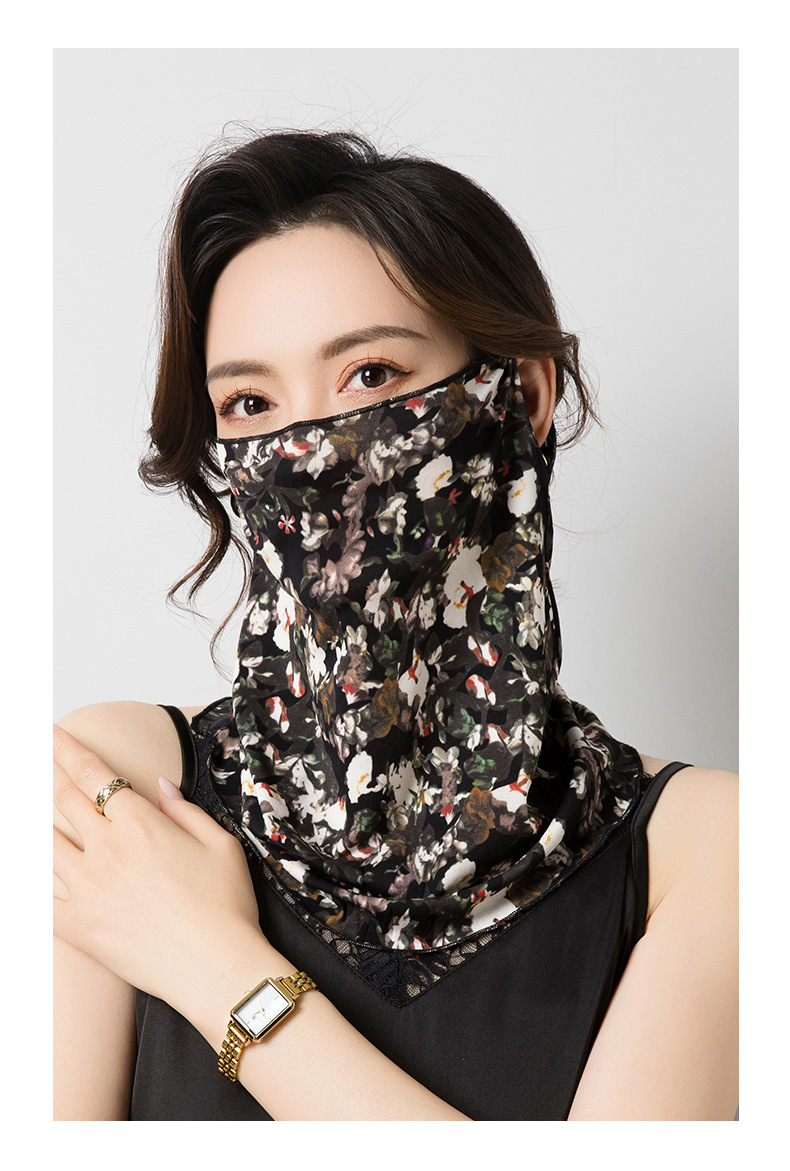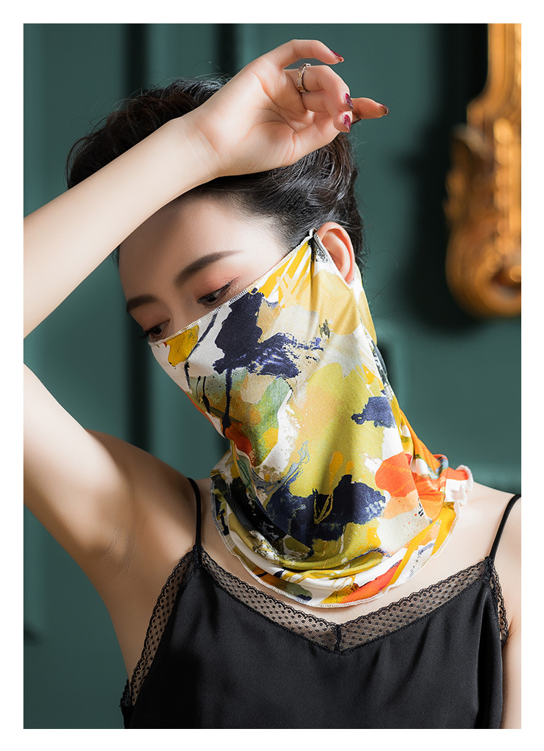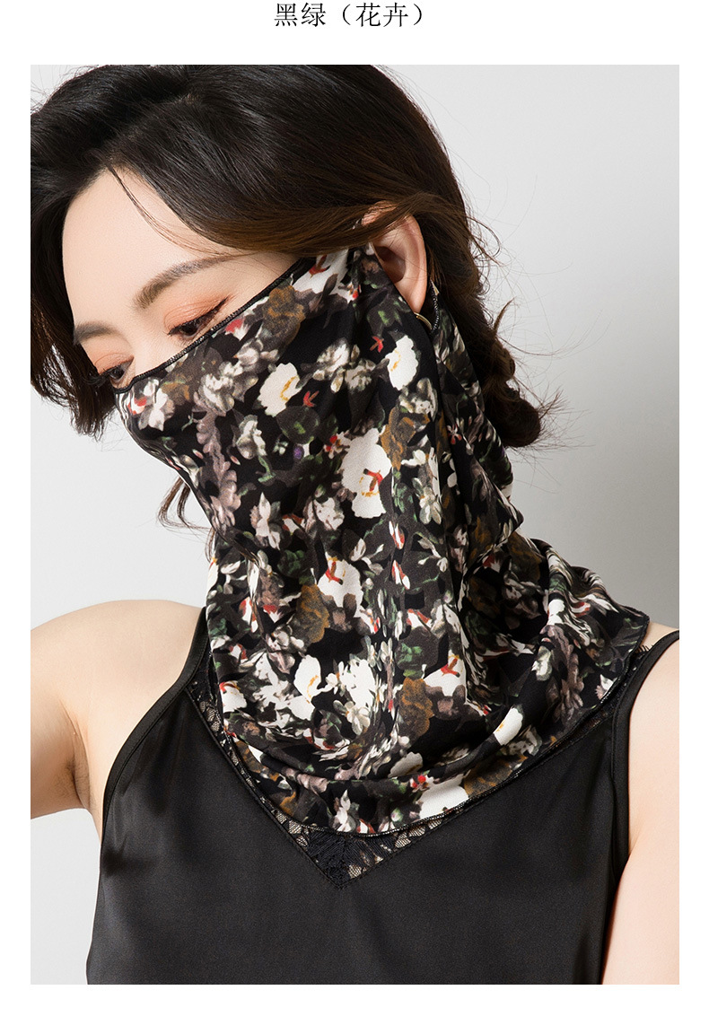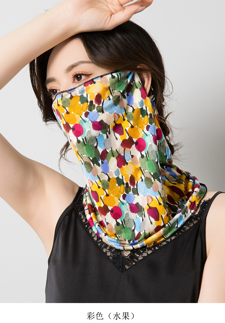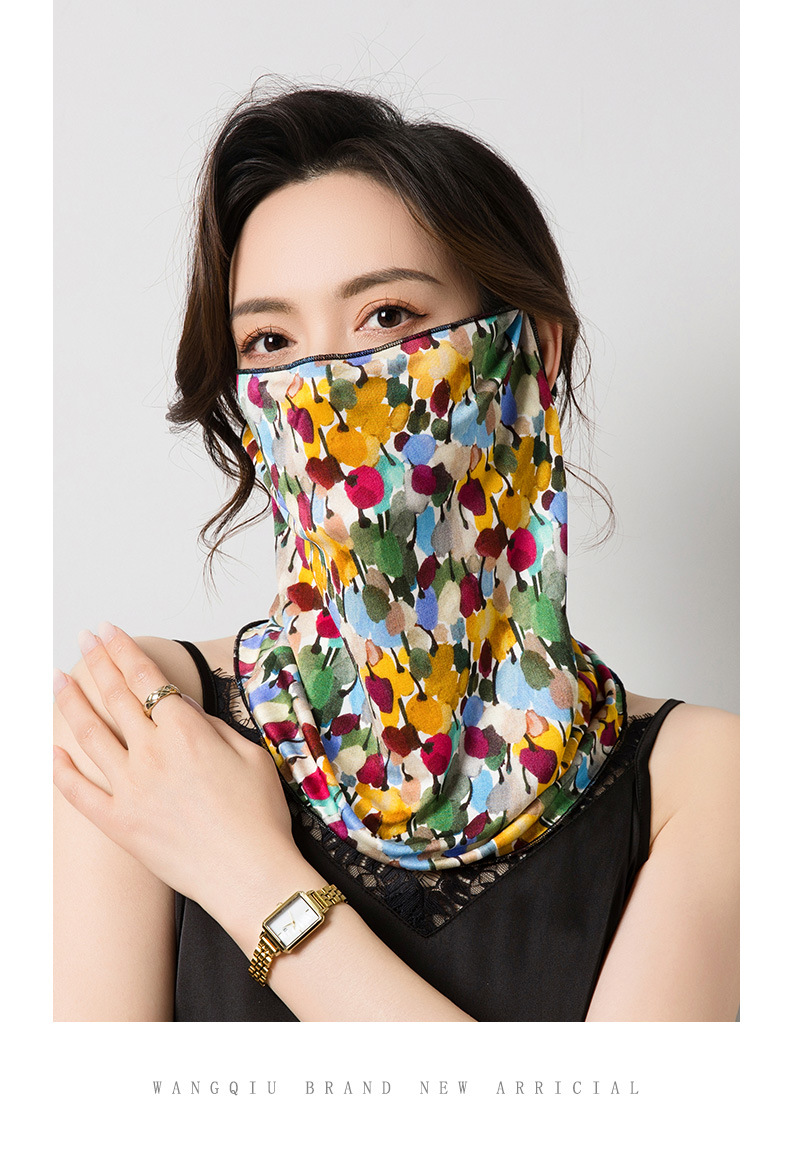 丁摩 真丝蒙面巾女薄印花100桑蚕丝针织挂耳丝巾1021A
