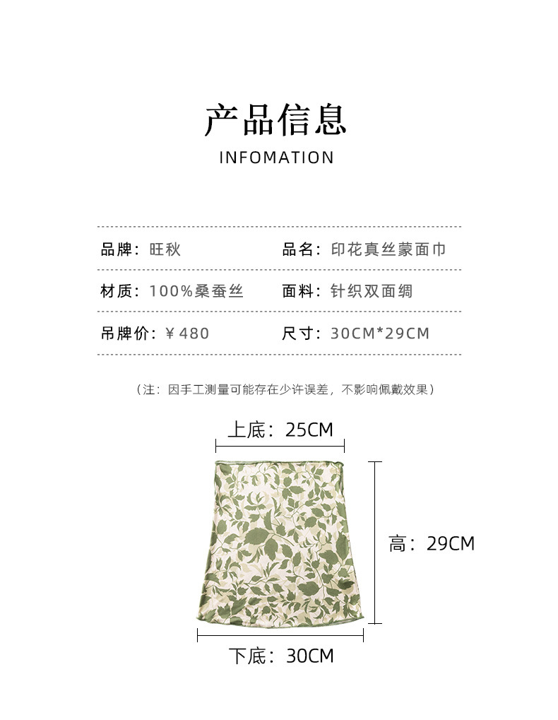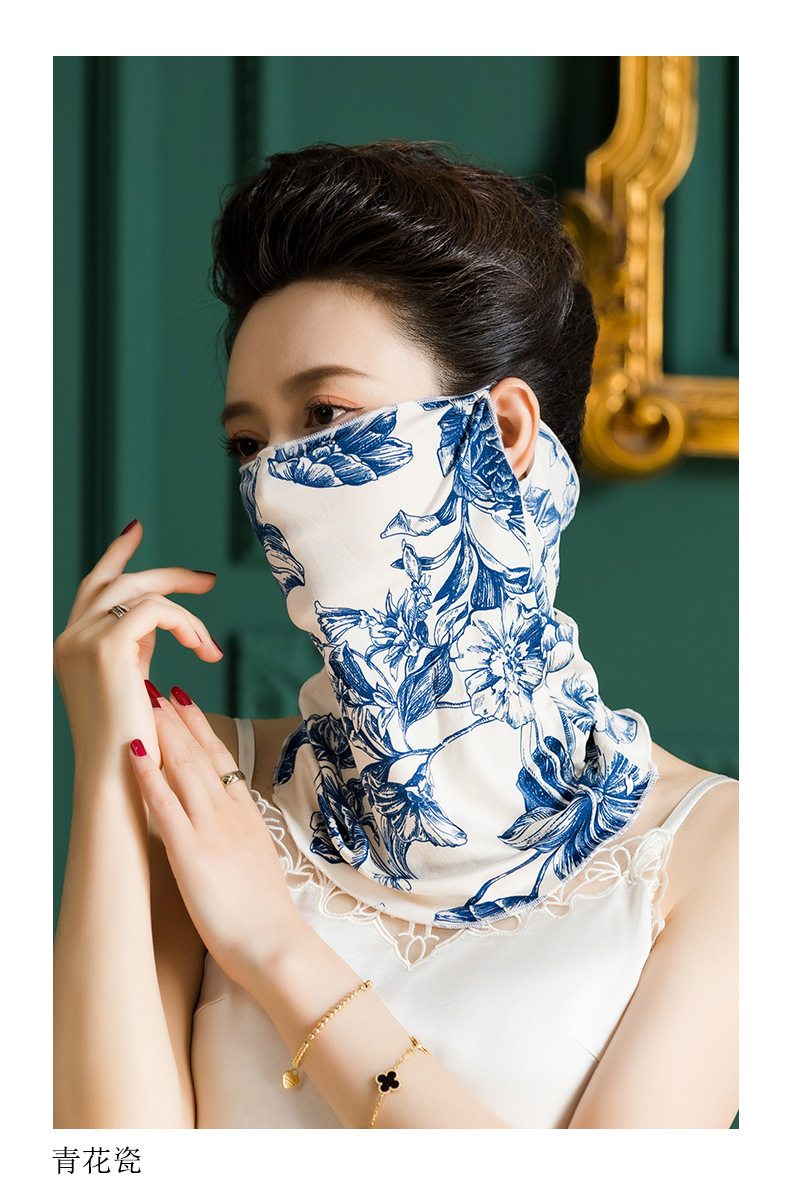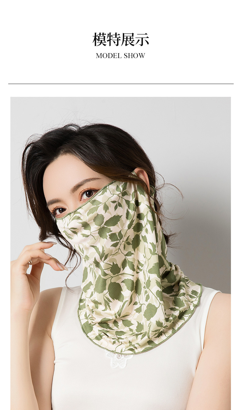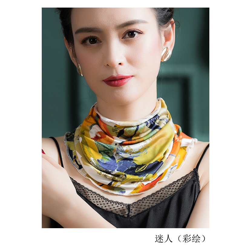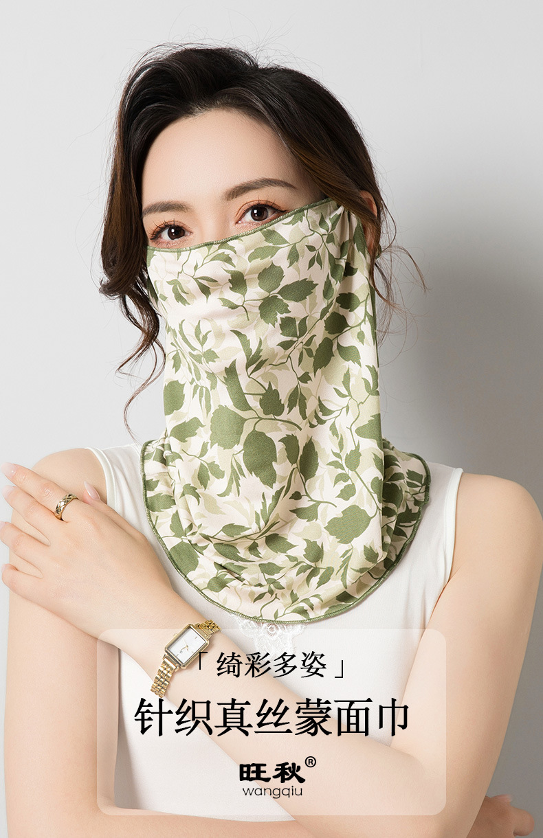 丁摩 真丝蒙面巾女薄印花100桑蚕丝针织挂耳丝巾1021A