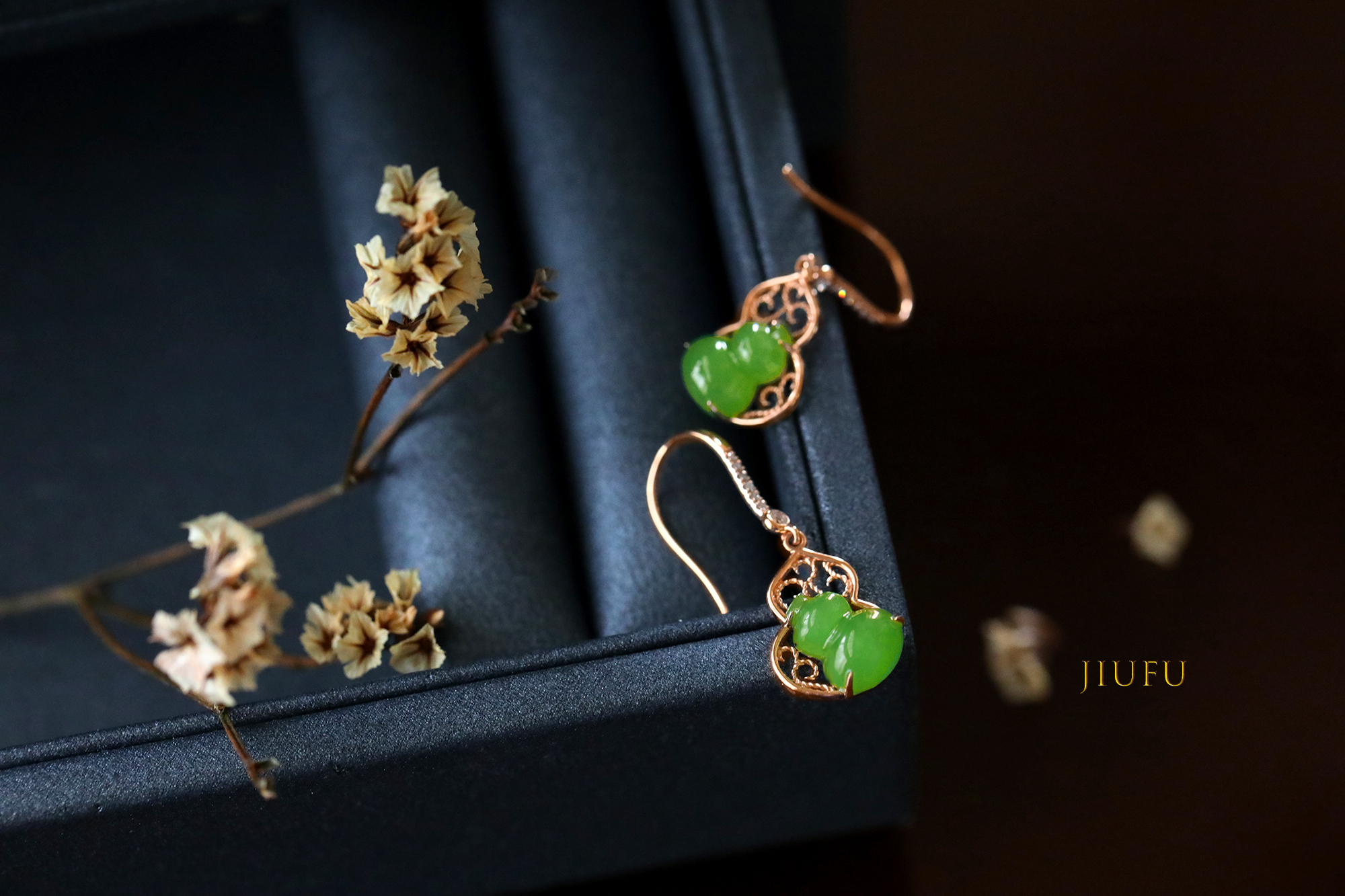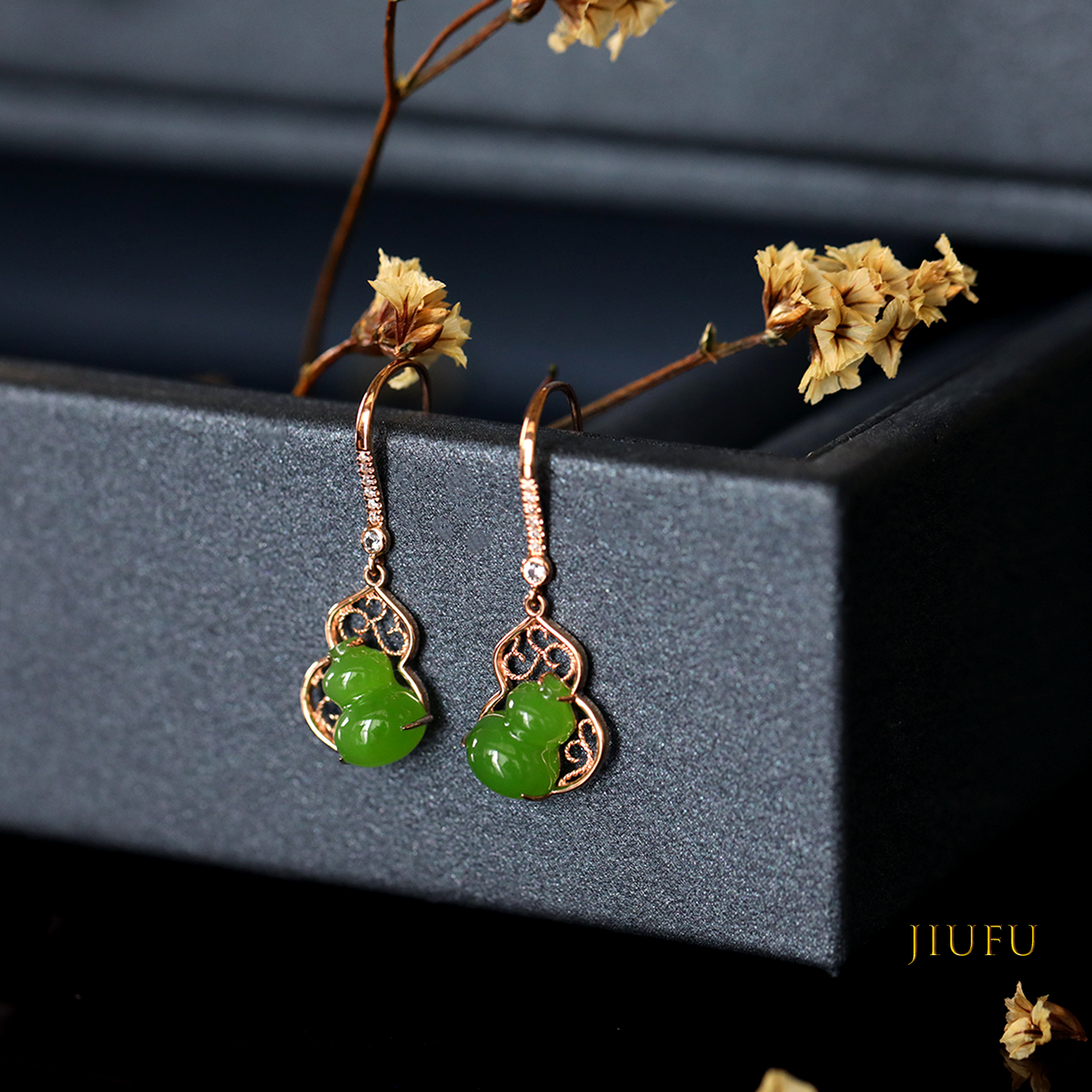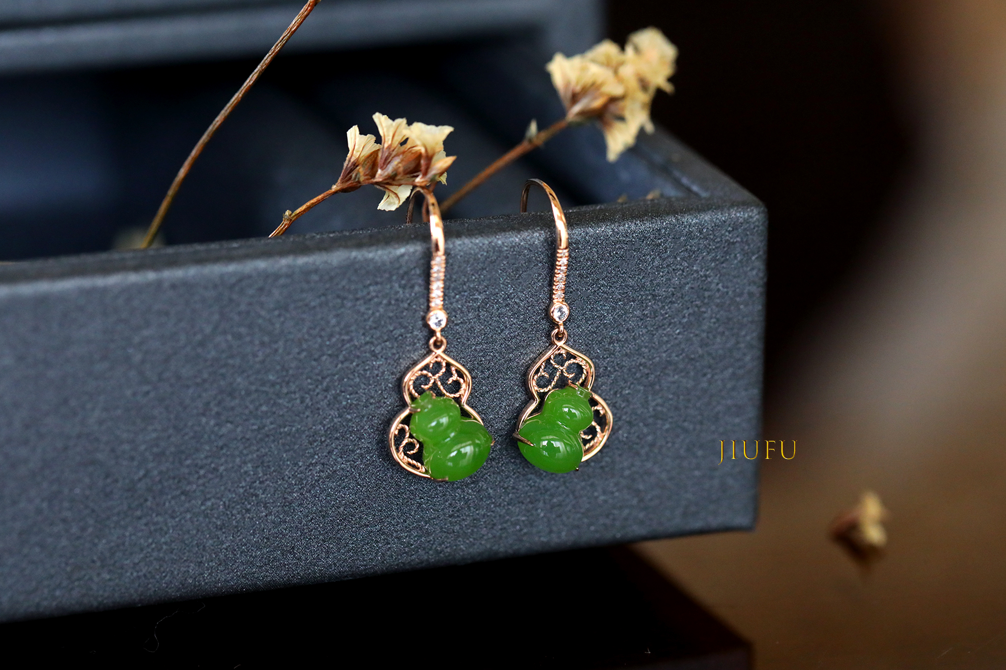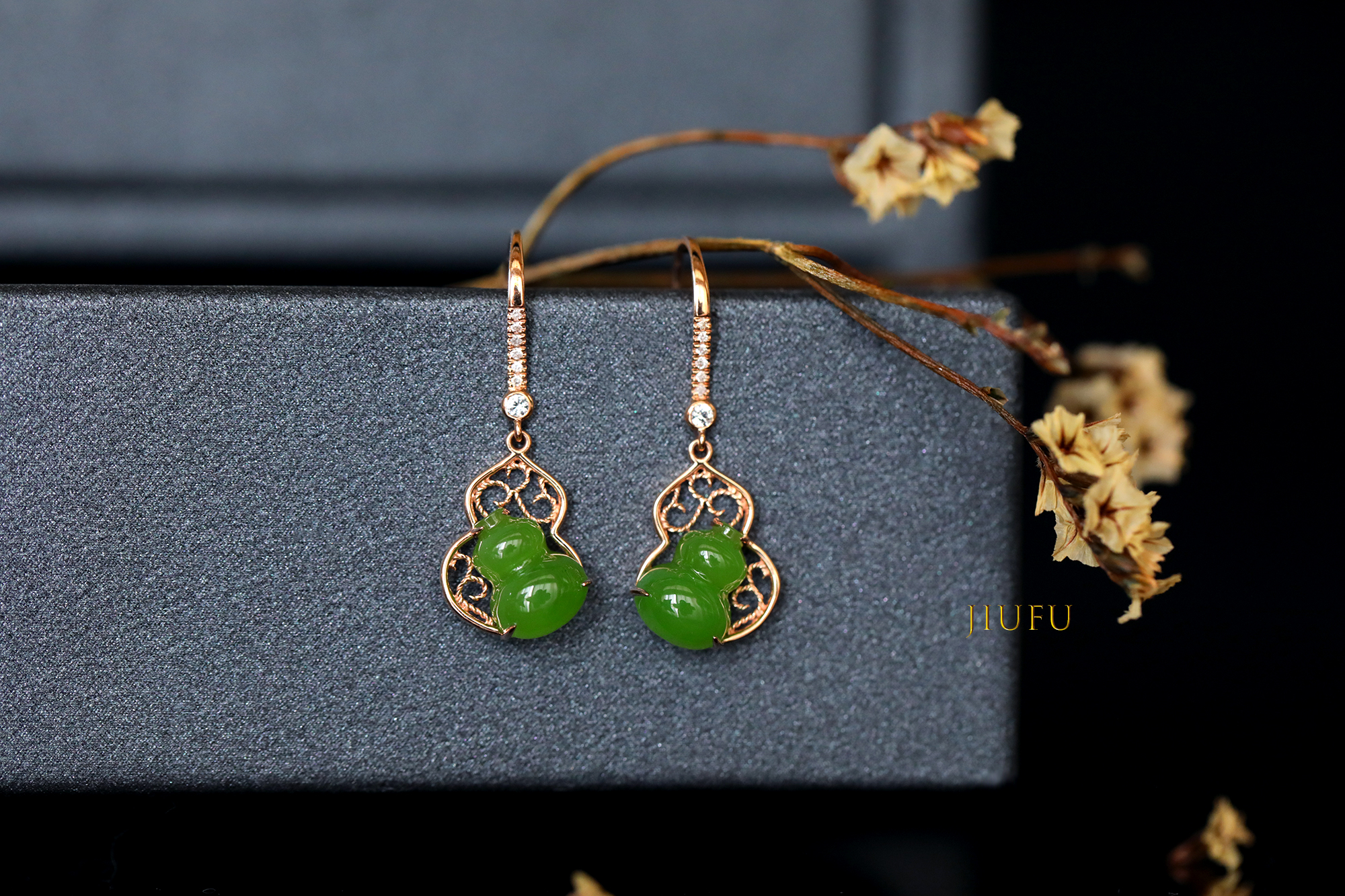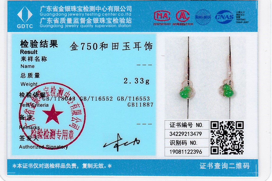 18K玫瑰金和田玉(碧玉)耳饰