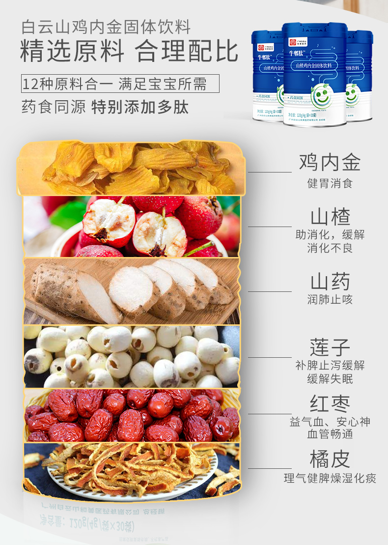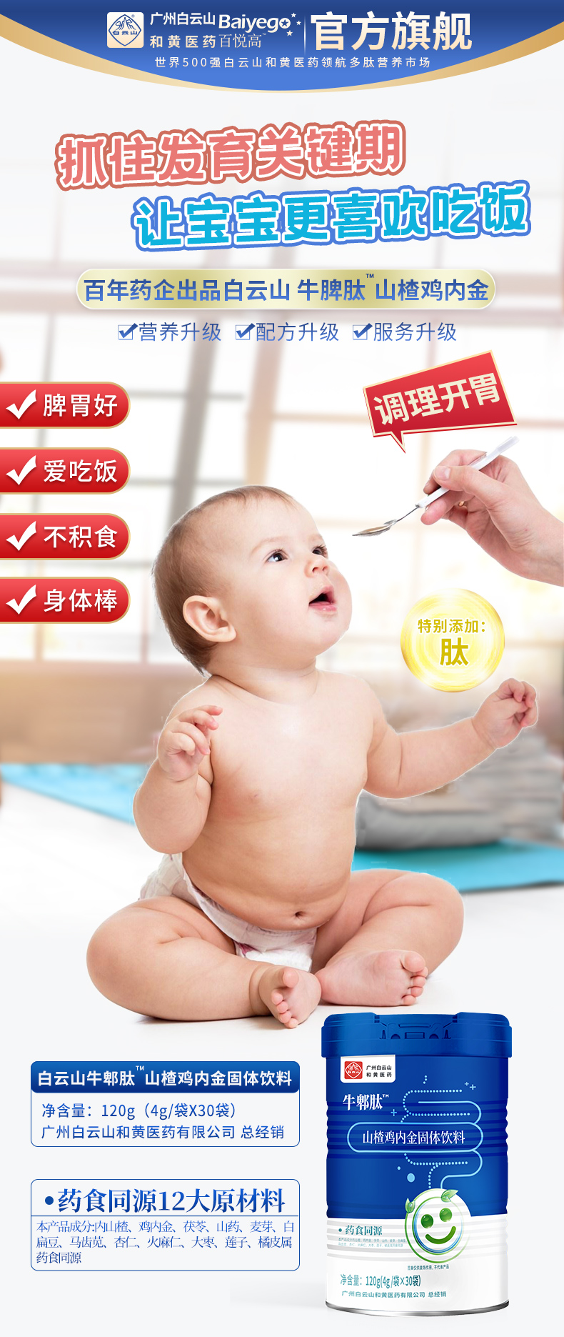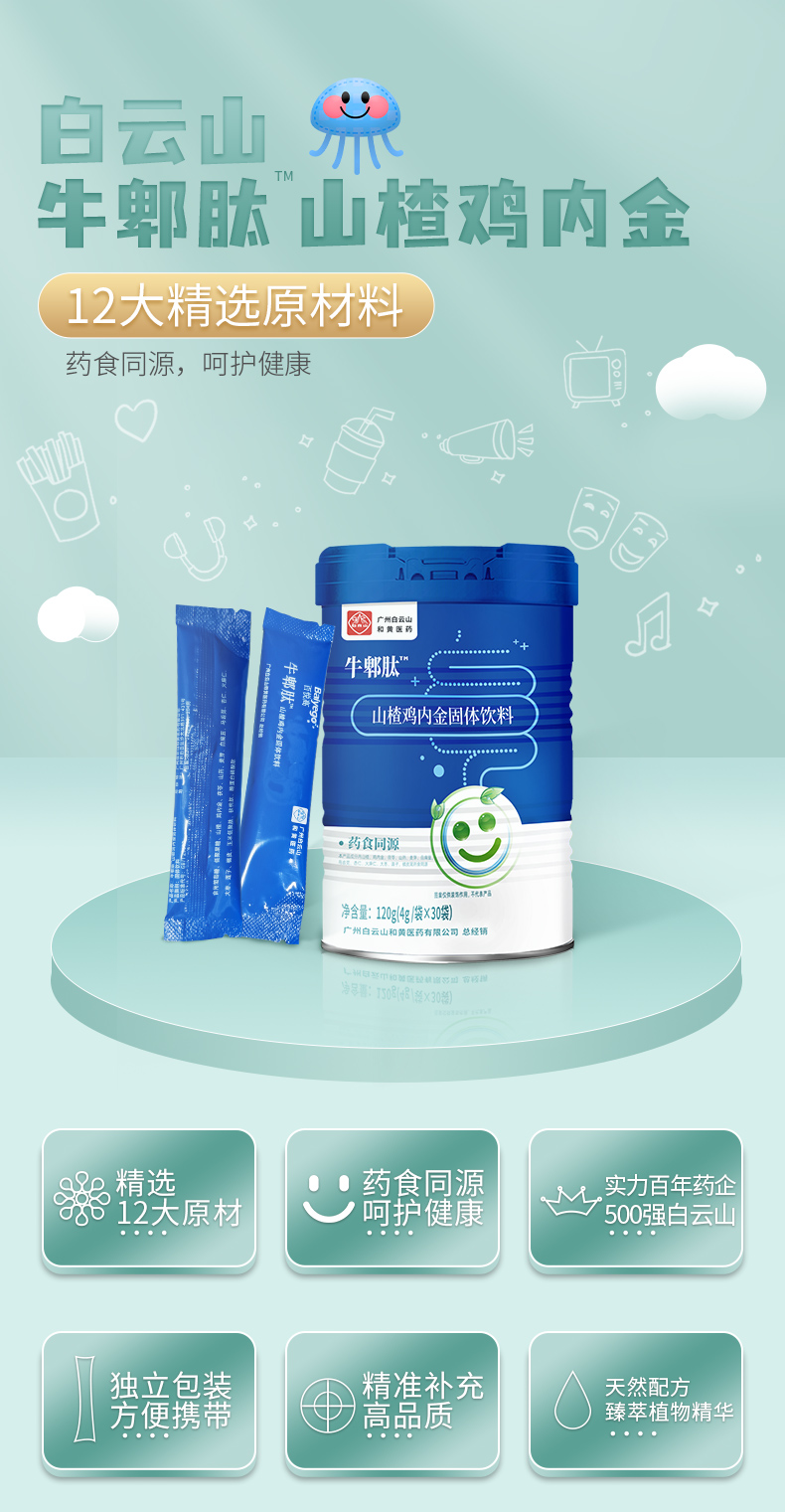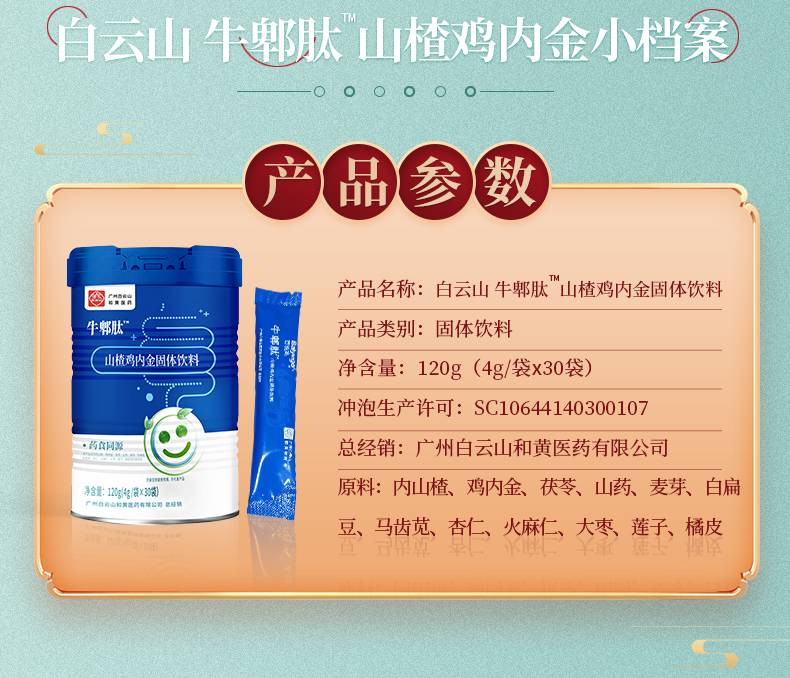 白云山 百悦高多肽牛郫肽 120g(4g*30条) 山楂鸡内金固体饮料