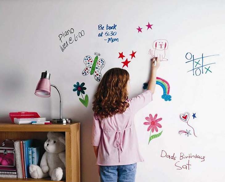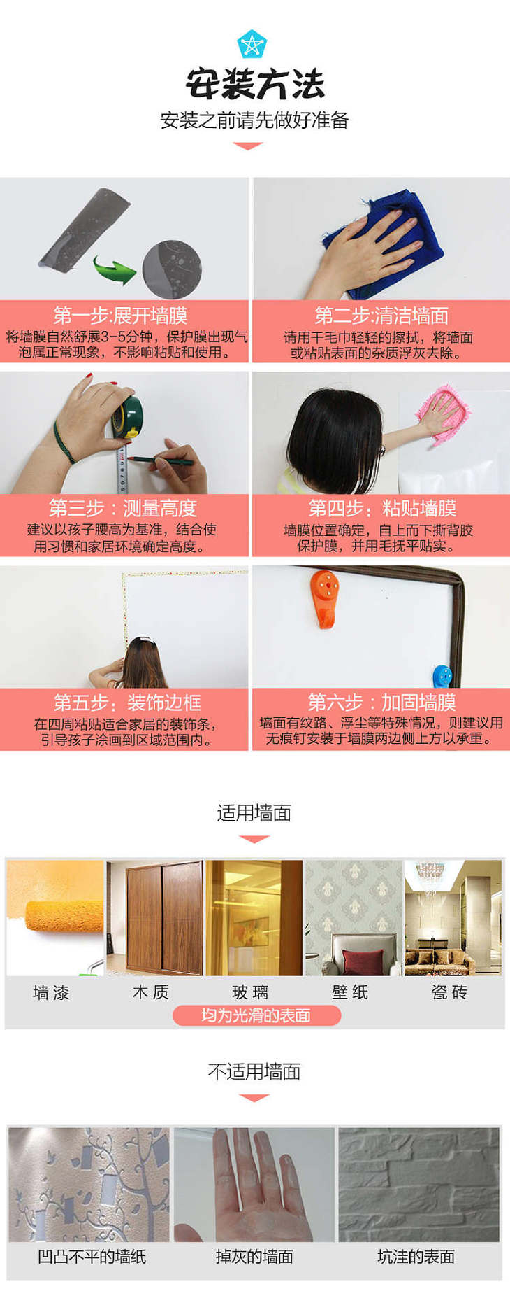 贴上后能画画、能涂鸦。比起白纸,它可以擦、能重复使用;比起黑板,它更清晰,无粉尘。