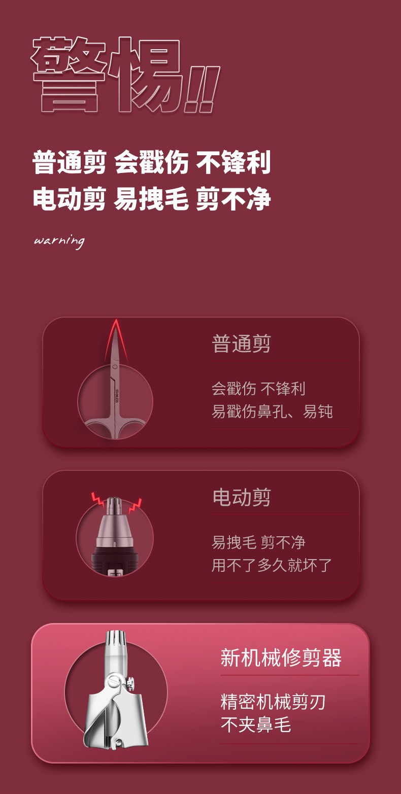 不锈钢手动鼻毛修剪器男鼻子毛剃毛清理器鼻毛器汗毛剪水洗去毛器