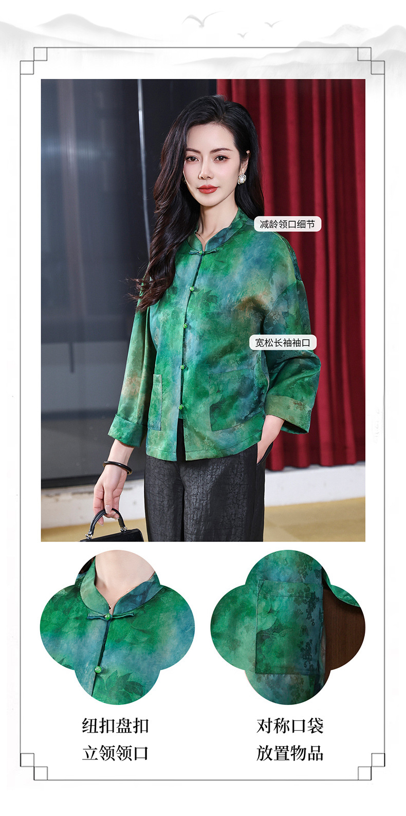 TC 221902真丝国风立领扎染印花香云纱桑蚕丝盘扣上衣两件套装 商品图2
