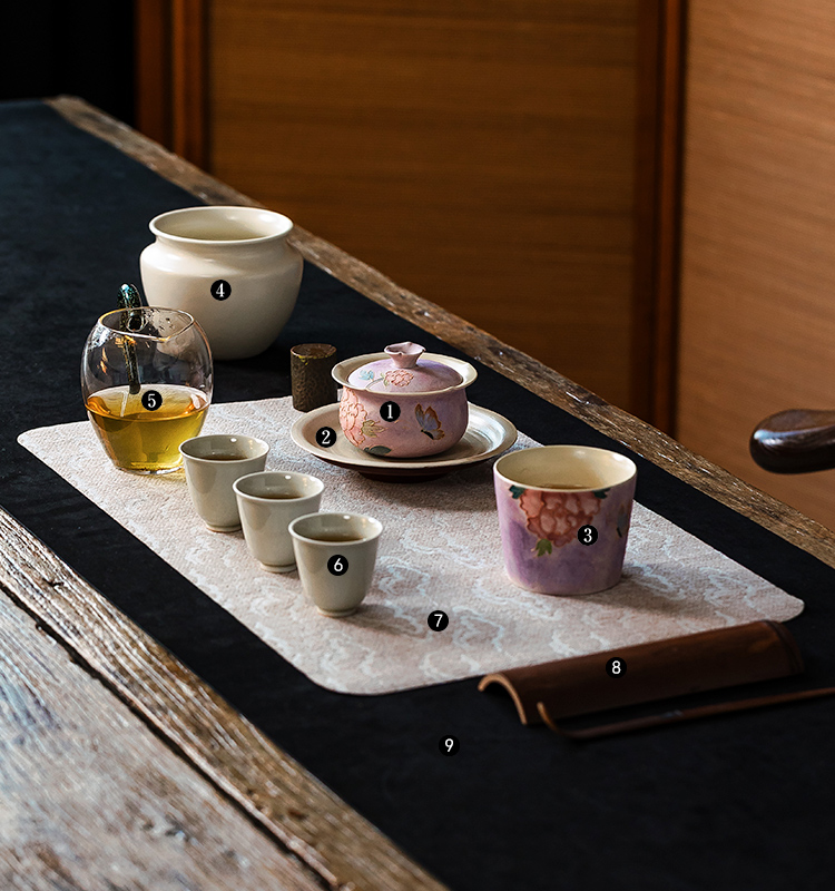 茶香记手绘紫烟牡丹花-盖碗150ml德化陶瓷泡茶碗茶室淡雅茶具主泡器