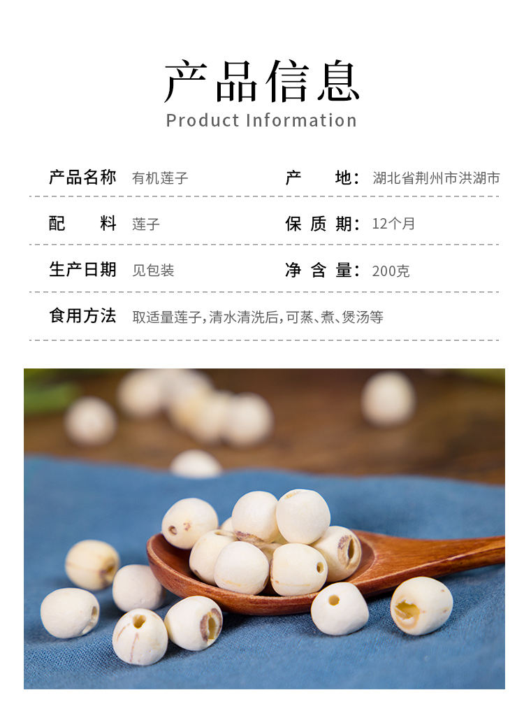 有机莲子 湖水供养自然生长 无需浸泡 清香甜润 易煮香糯