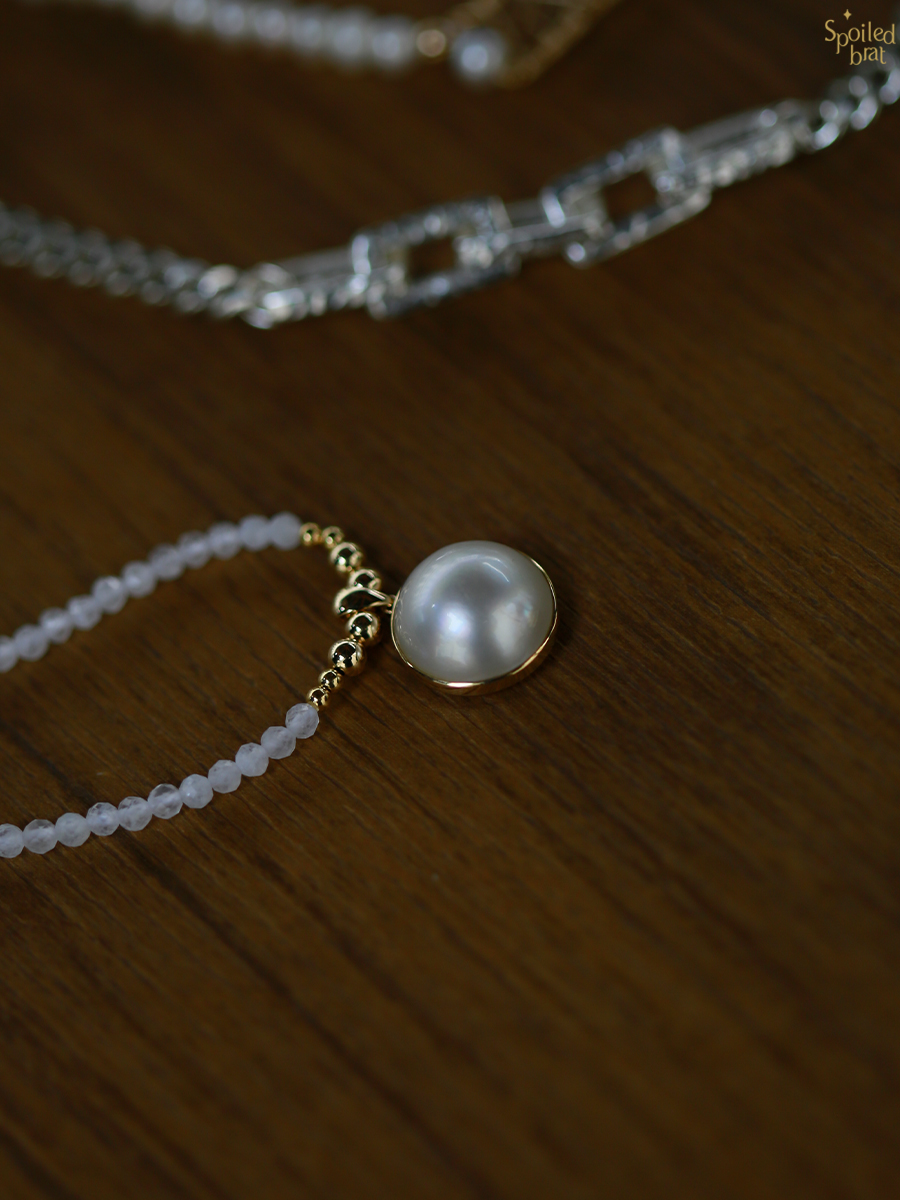 材质:18K金、马贝珍珠、月光石
