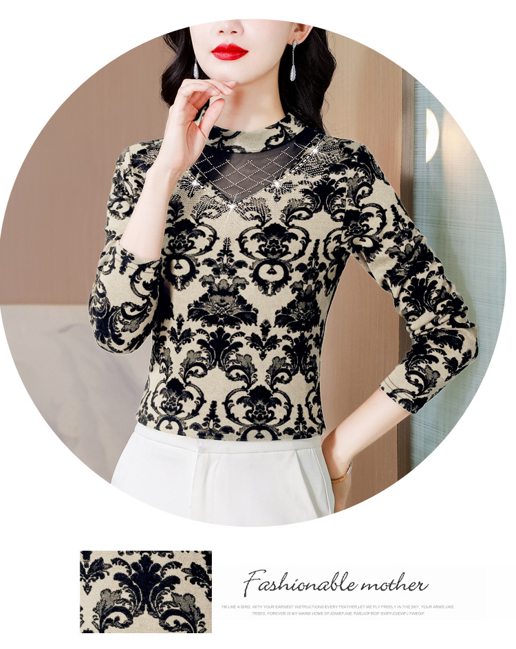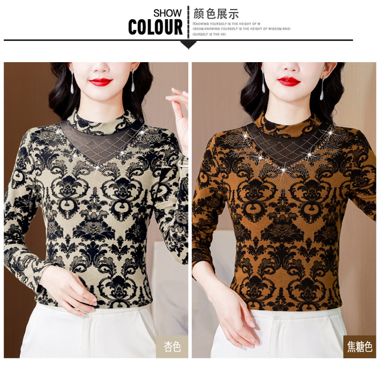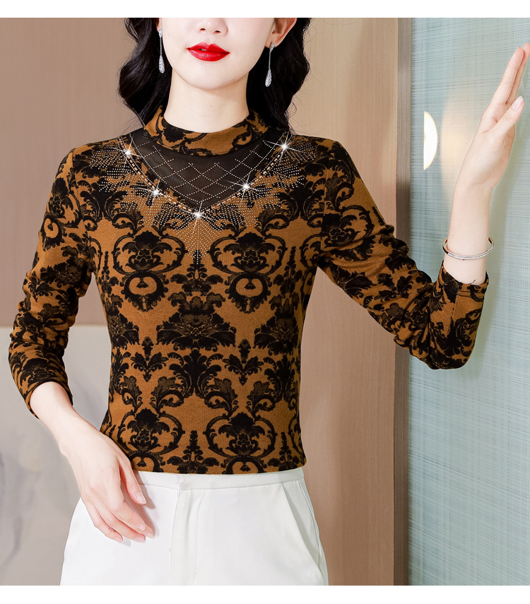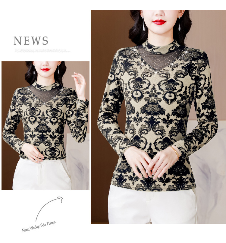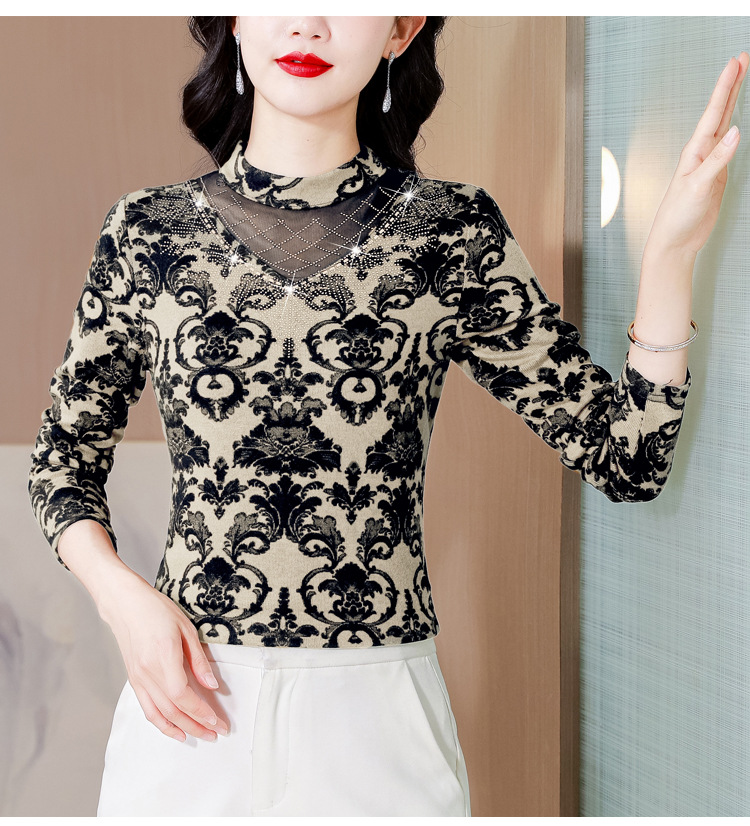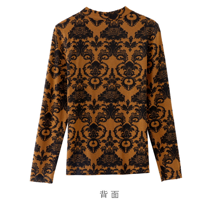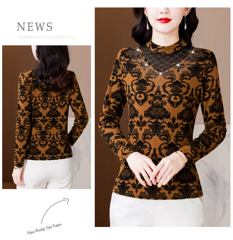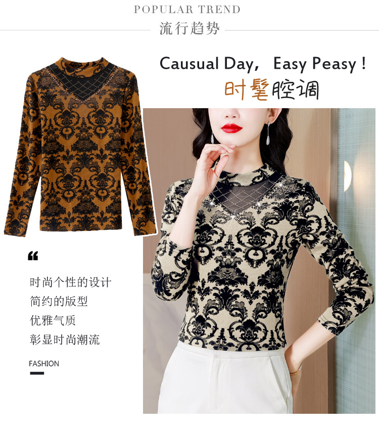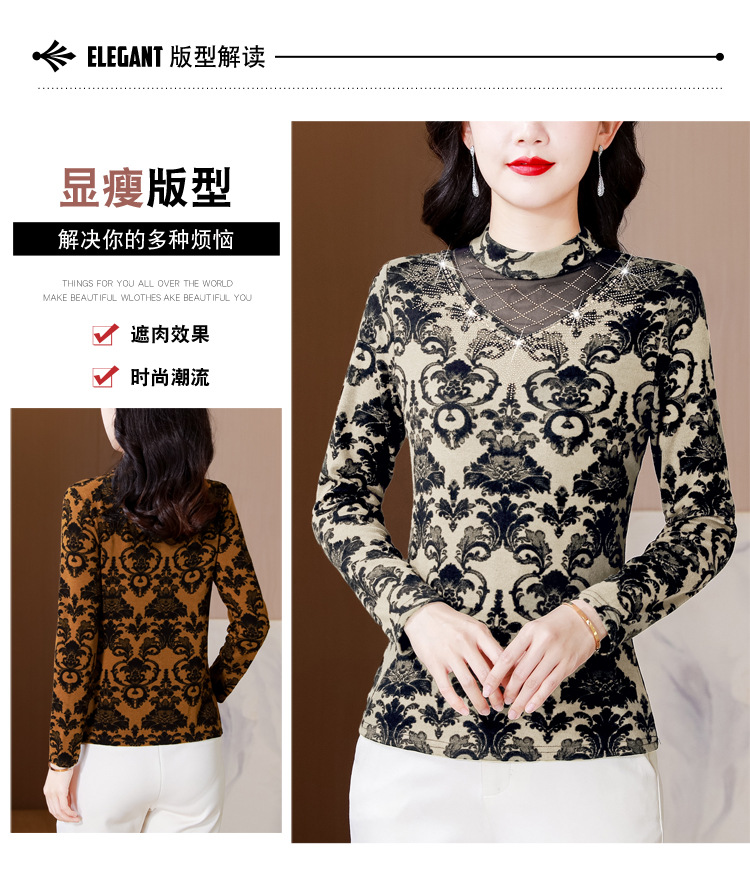 SMZ30647 2024秋季新款半高领印花打底衫名媛风气质妈妈修身百搭长袖T恤女