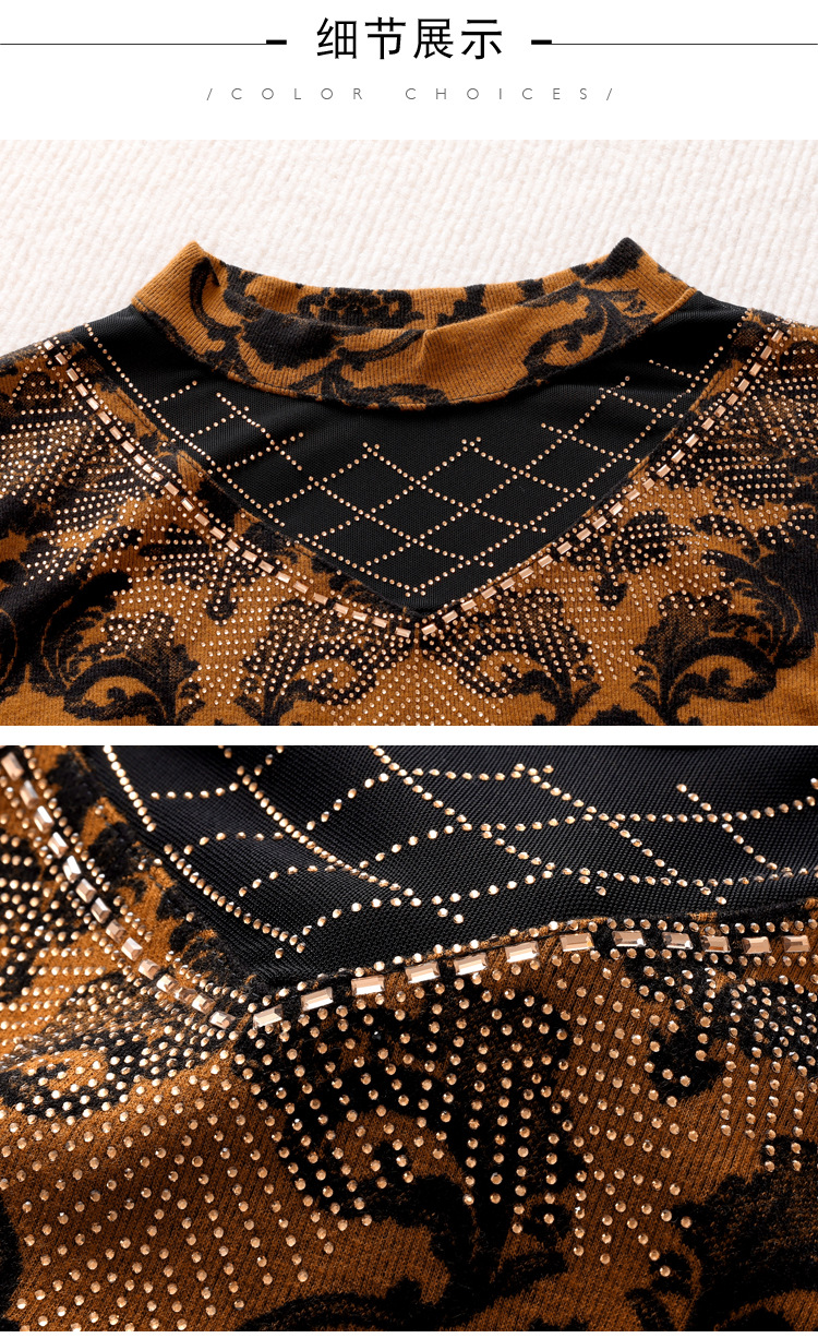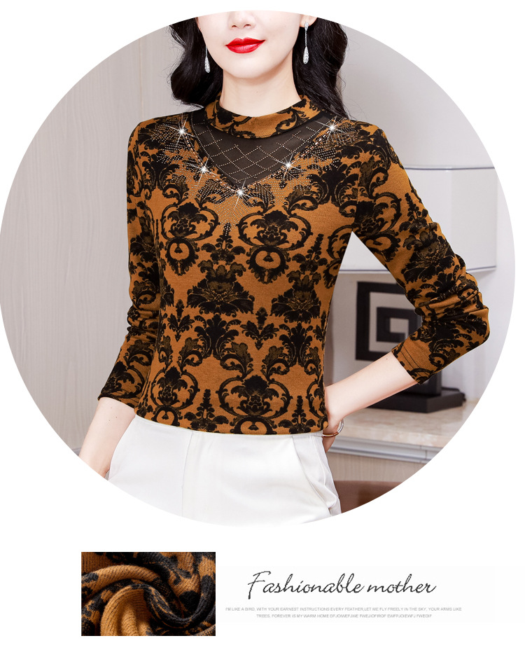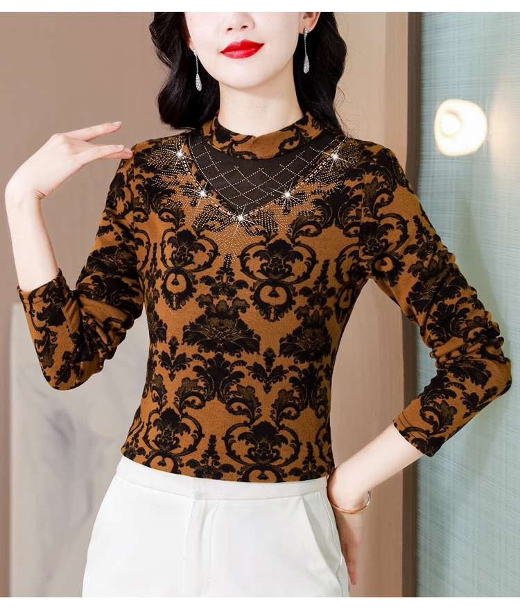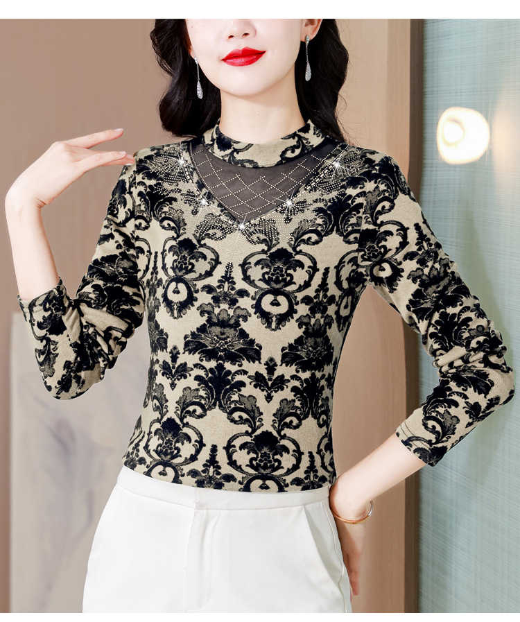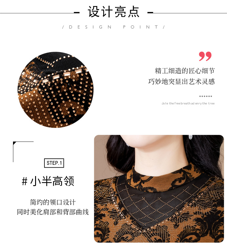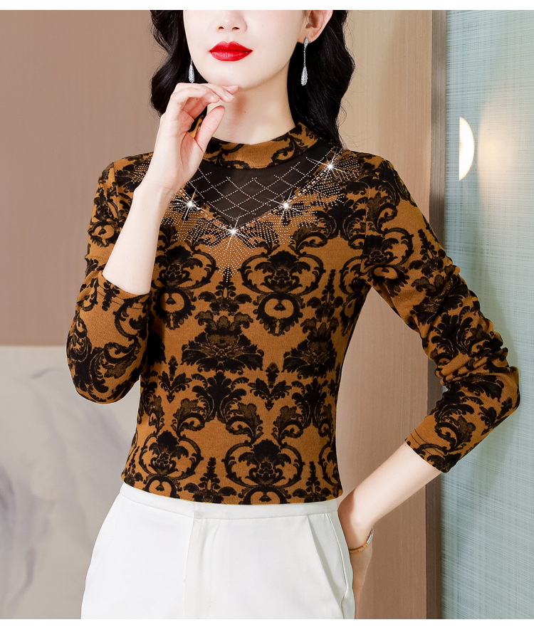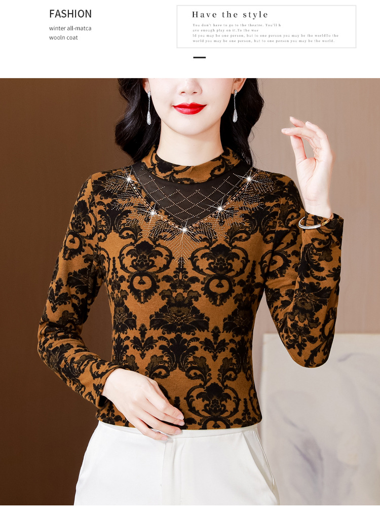 SMZ30647 2024秋季新款半高领印花打底衫名媛风气质妈妈修身百搭长袖T恤女