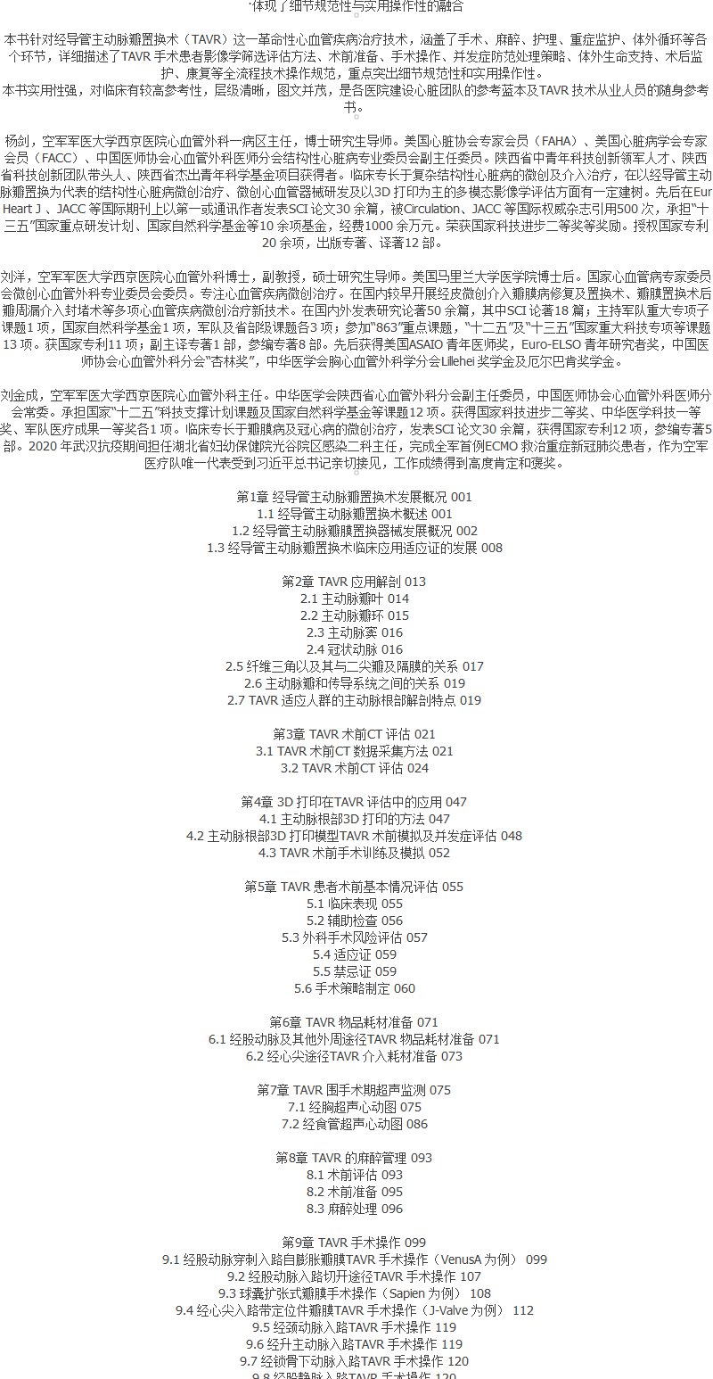 医学精萃系列 经导管主动脉瓣置换操作指南手册 国内经导管主动脉瓣置换操作规范书籍 TAVR全流程技术操作规范书籍 心血管疾病治疗 无 化学工业出版社 9787122397386