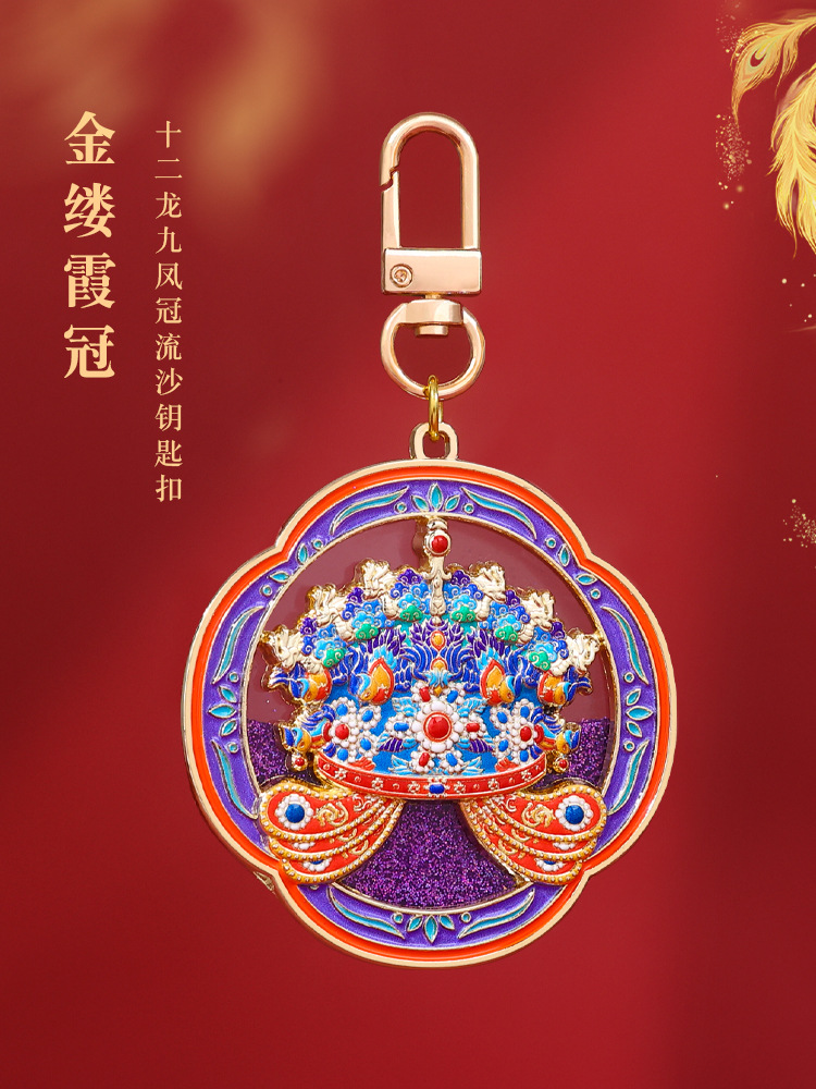【凤冠钥匙扣挂件】故宫神兽九龙九凤冠金属流沙钥匙扣挂饰古风文物钥匙博物创意文创