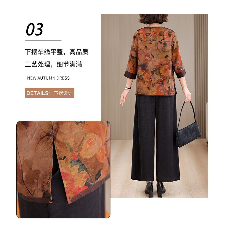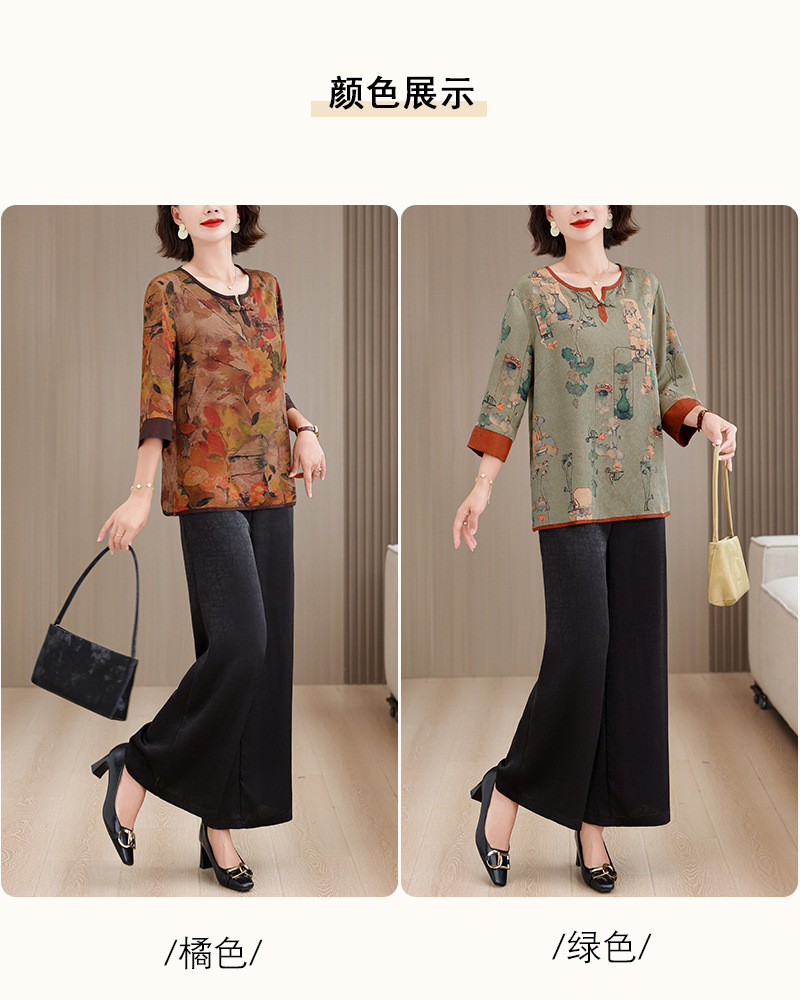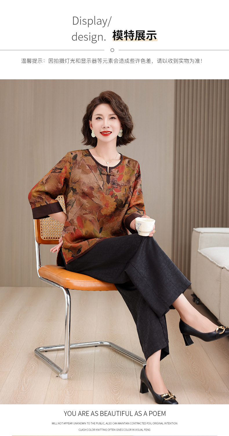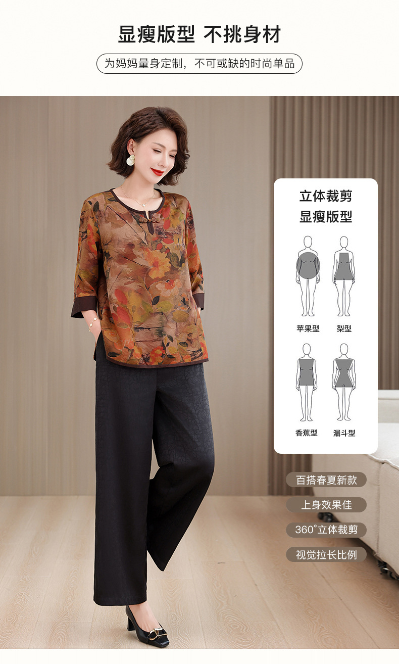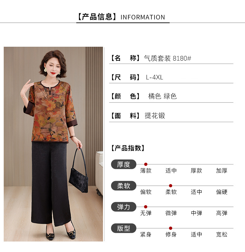A8180中老年人妈妈夏装套装2025新款七分袖上衣洋气大码休闲女装