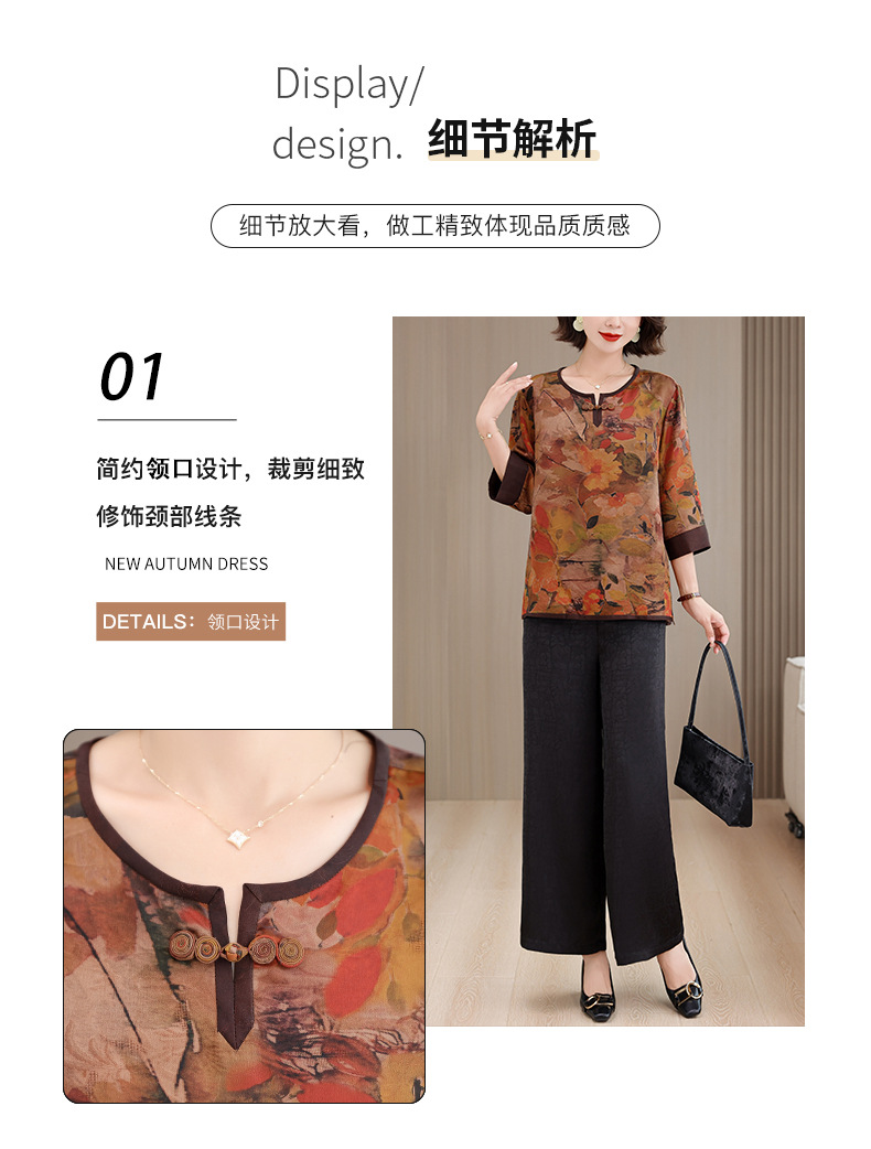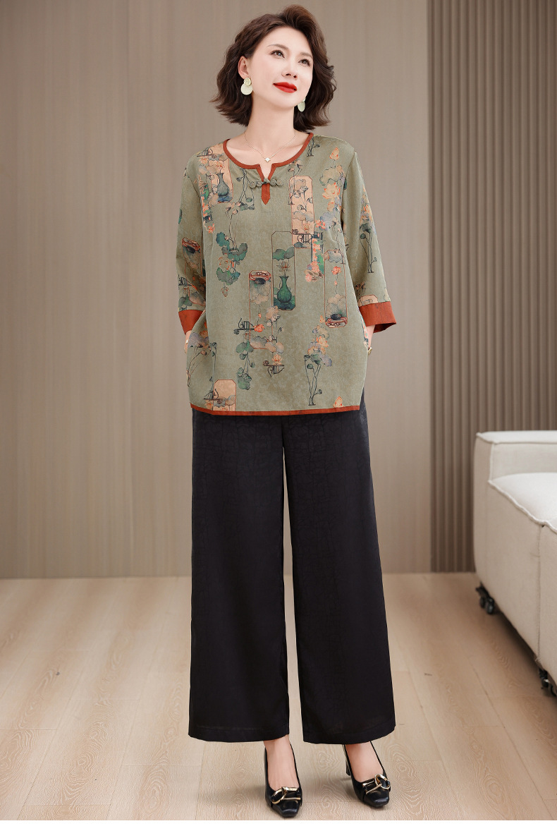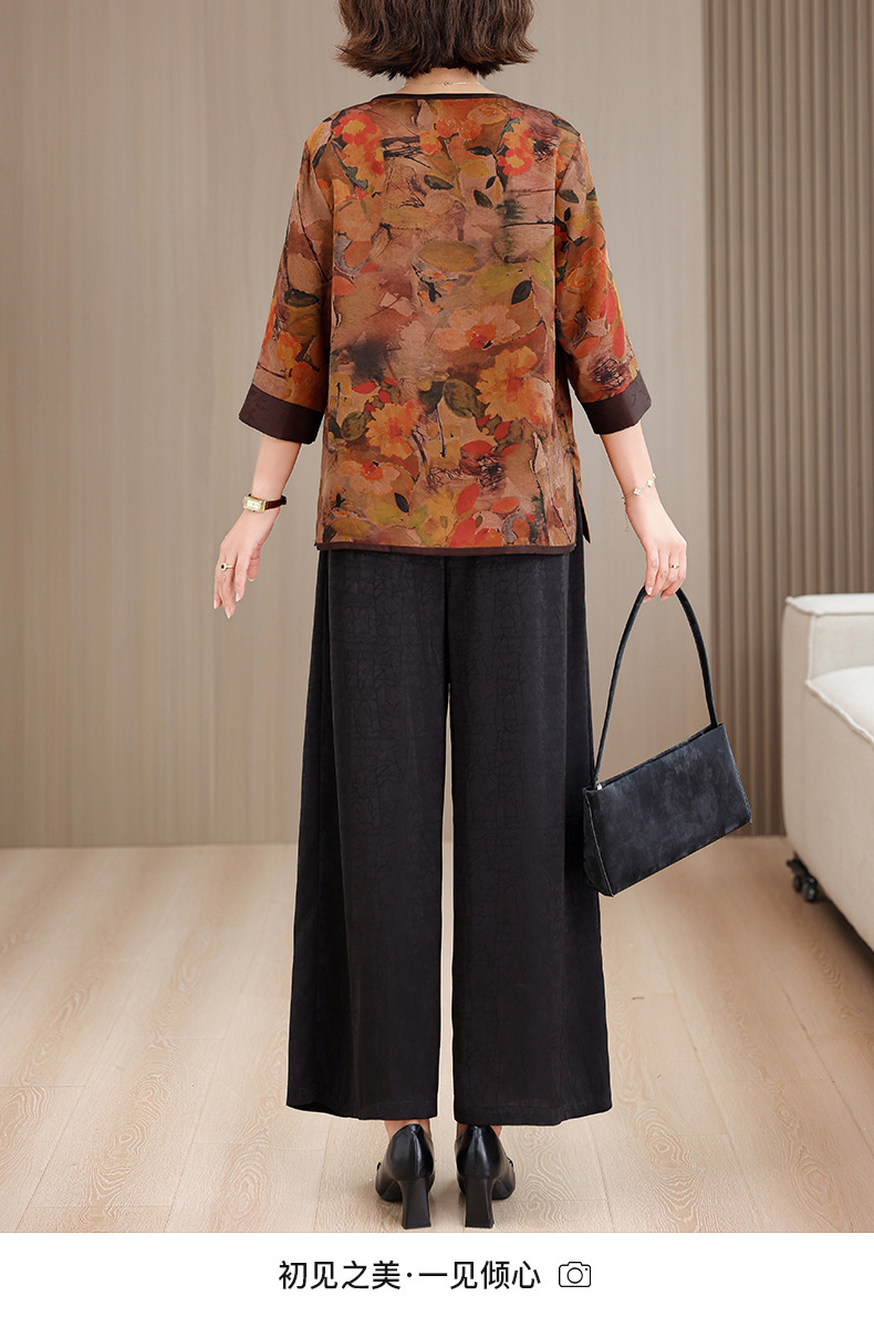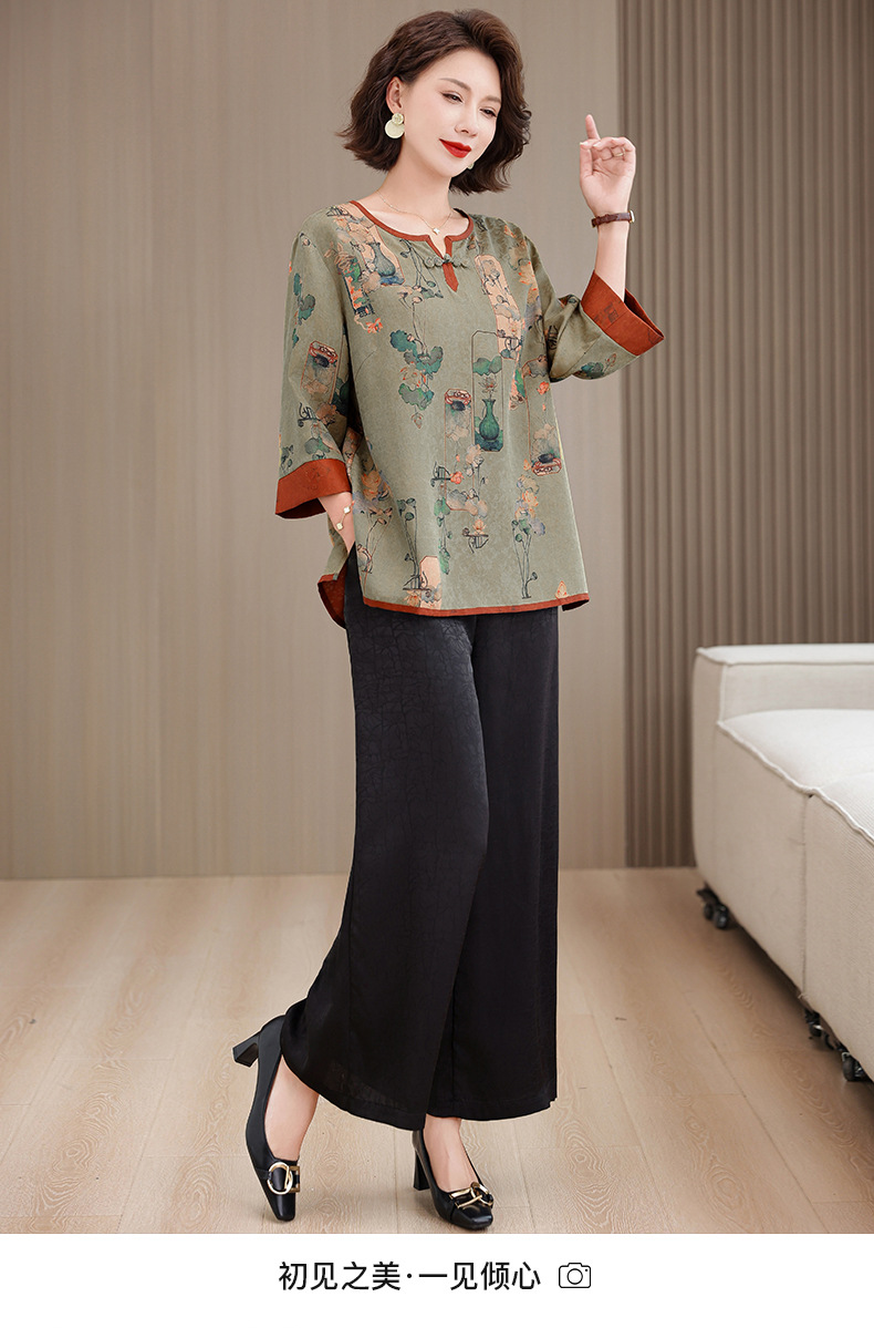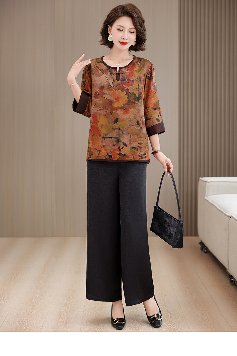 A8180中老年人妈妈夏装套装2025新款七分袖上衣洋气大码休闲女装