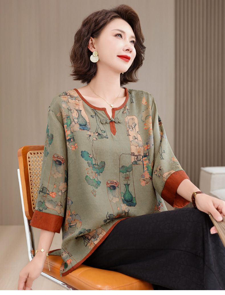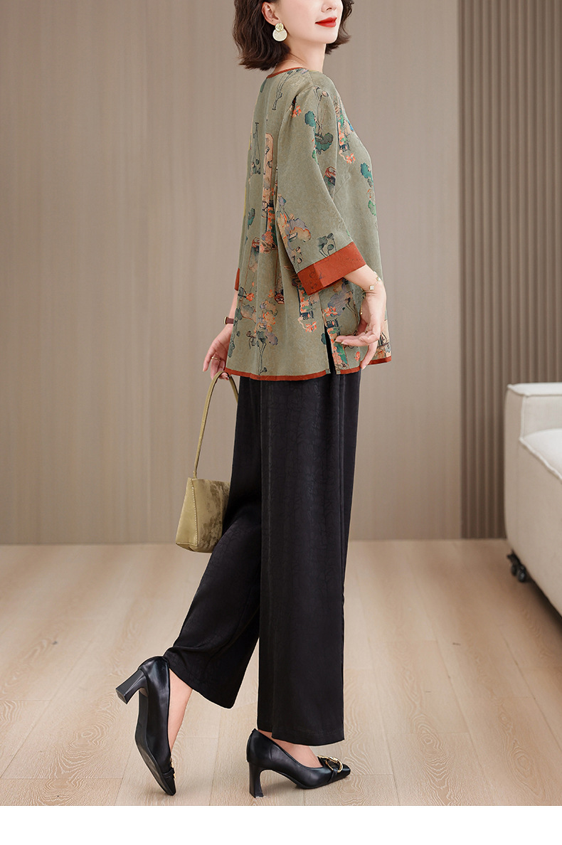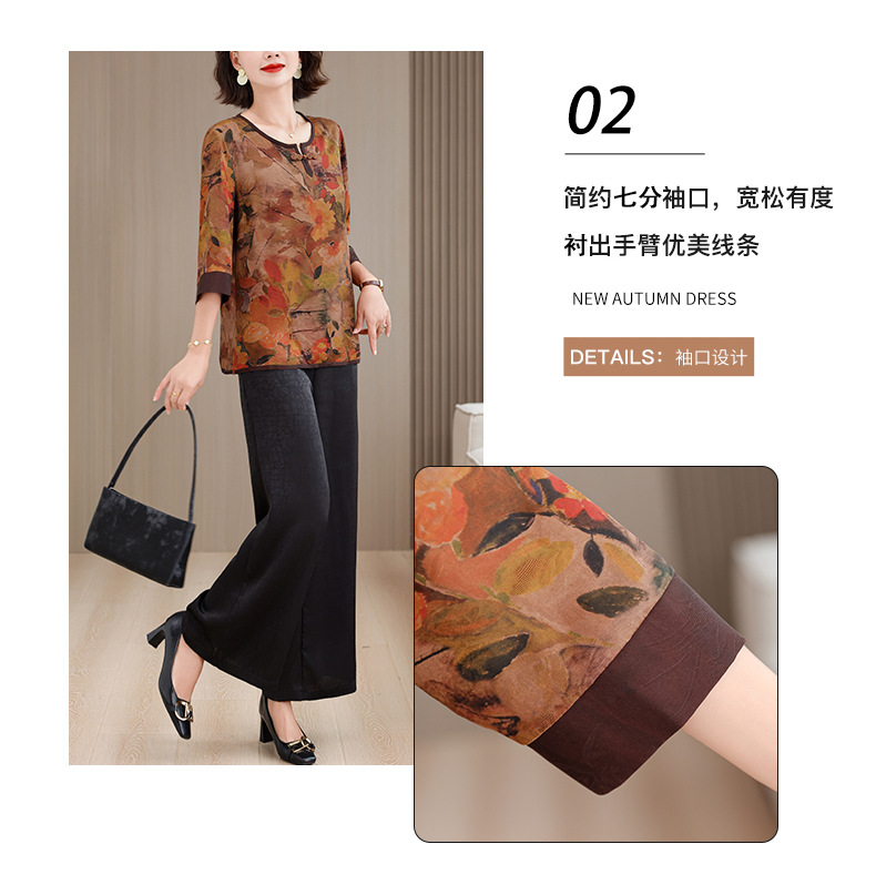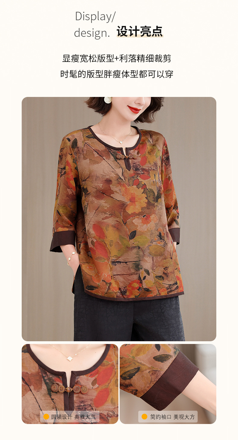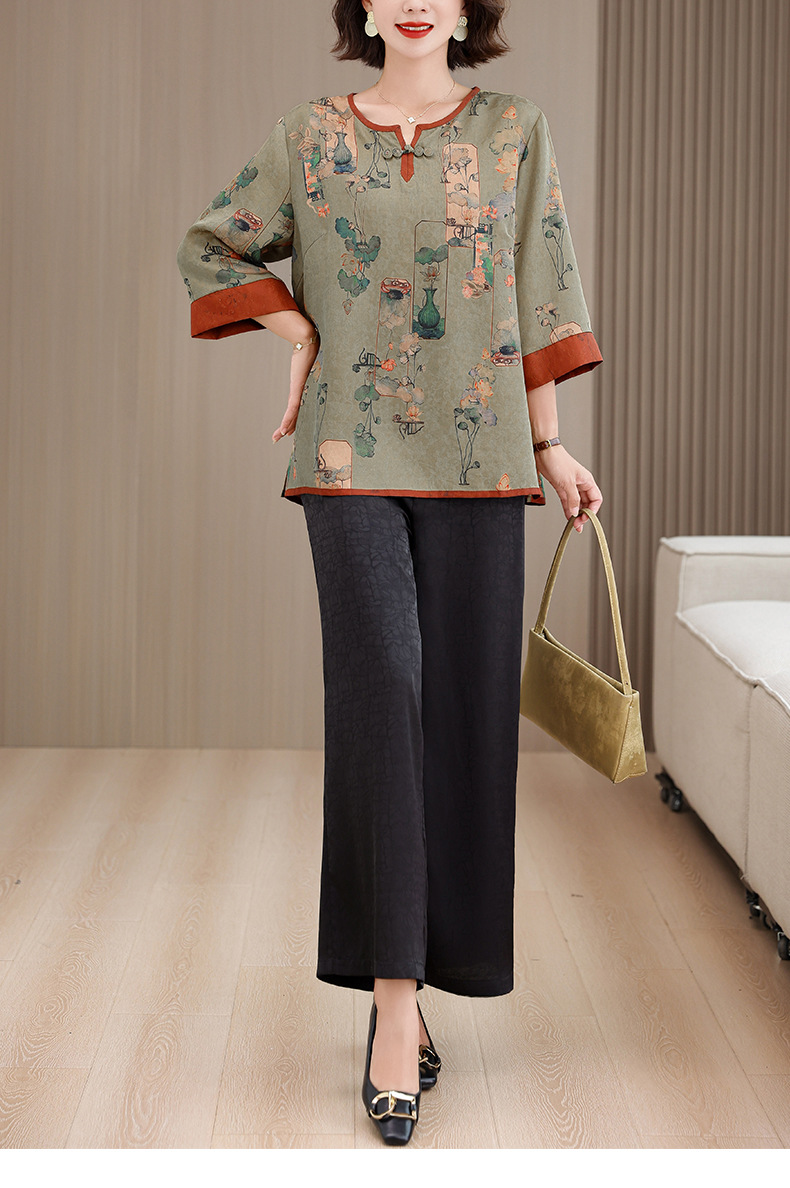 A8180中老年人妈妈夏装套装2025新款七分袖上衣洋气大码休闲女装