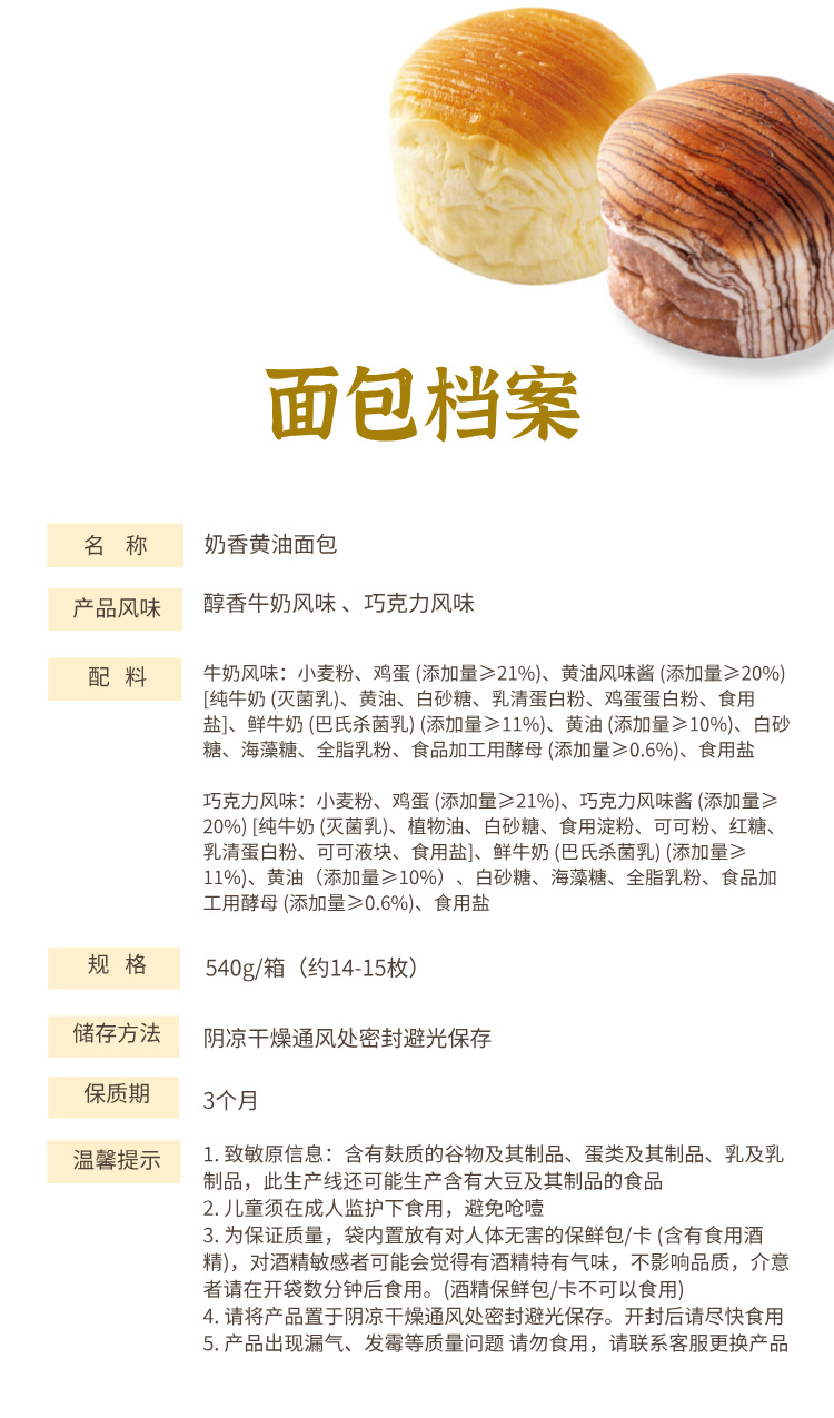 新麦潮奶香黄油面包 540g/箱 牛奶风味/巧克力风味 千层蓬松 松软可口 一箱15个