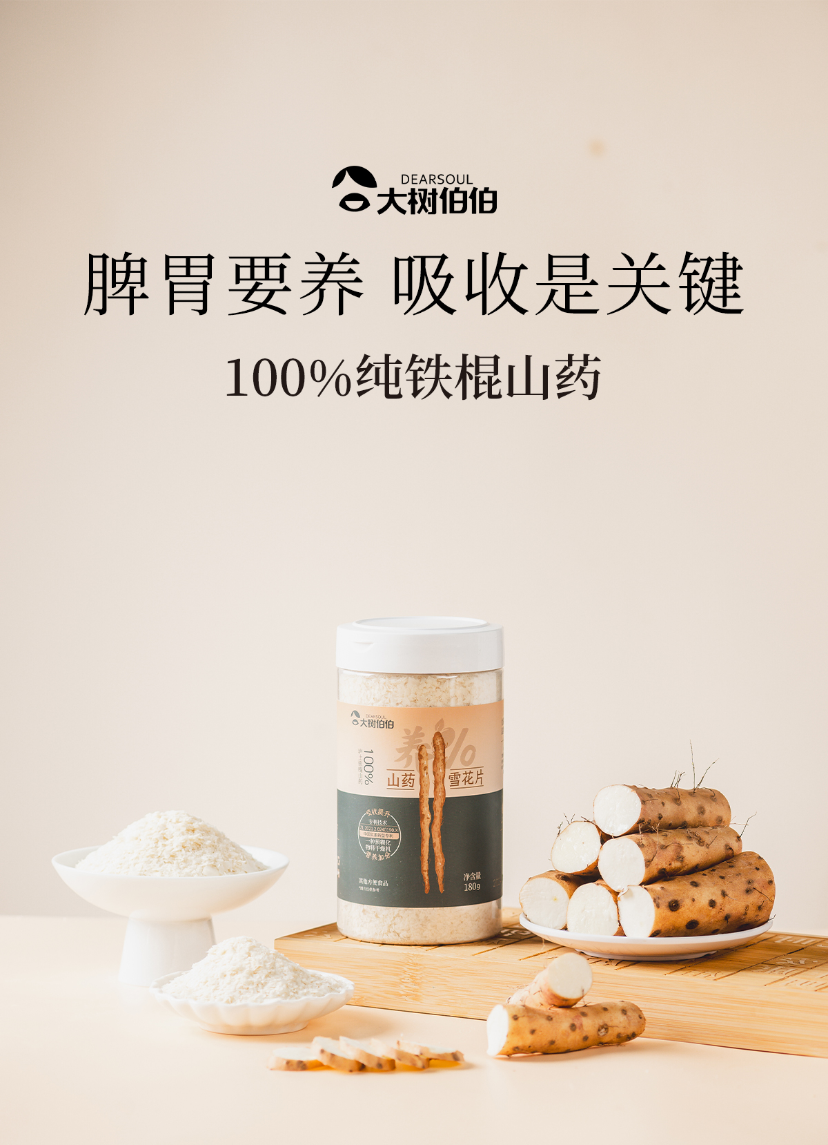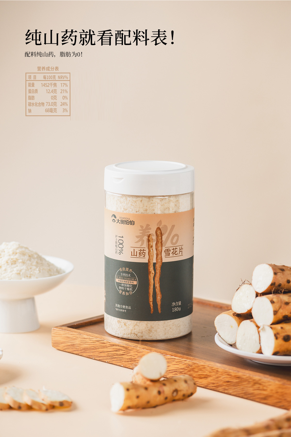 大树伯伯纯铁棍山药雪花片即食早餐冲饮代餐营养饱腹180g/罐