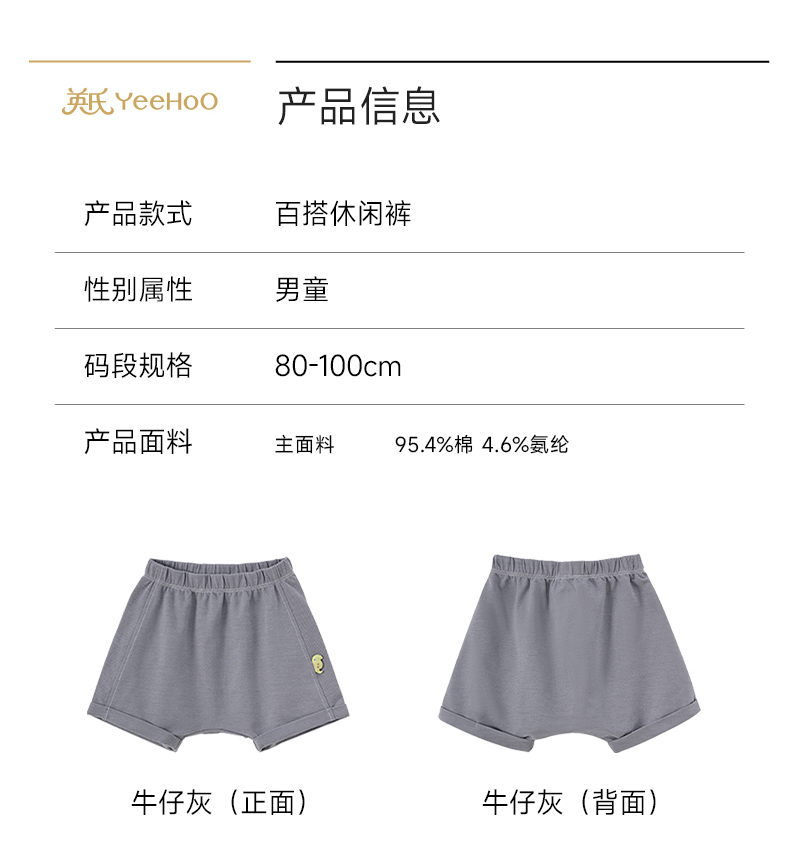【耐磨抗造】英氏PP裤儿童裤子男童夏季薄款灰色短裤休闲百搭2026新款