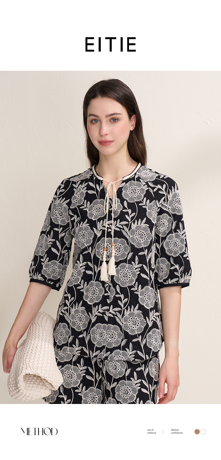 EITIE爱特爱宽松休闲印花显瘦衬衫上衣夏季新款8209910