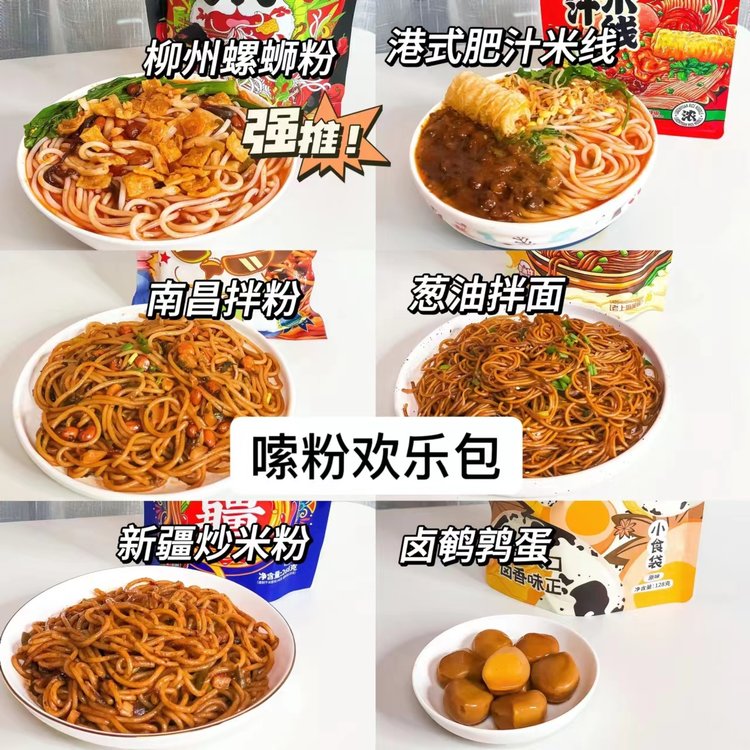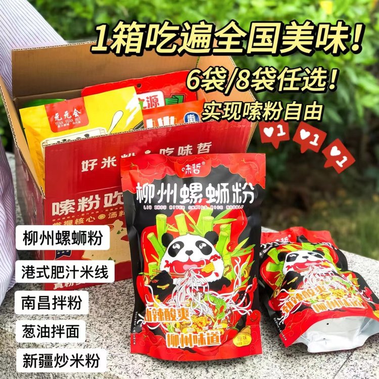 螺蛳粉、肥汁米线、新疆炒米粉、南昌拌粉、葱油拌面,每一种粉都超级美味!6袋装/8袋装双规格任选!8袋更有Q弹鹌鹑蛋,最佳嗦粉搭档!让你1箱吃过瘾,1周不重样!